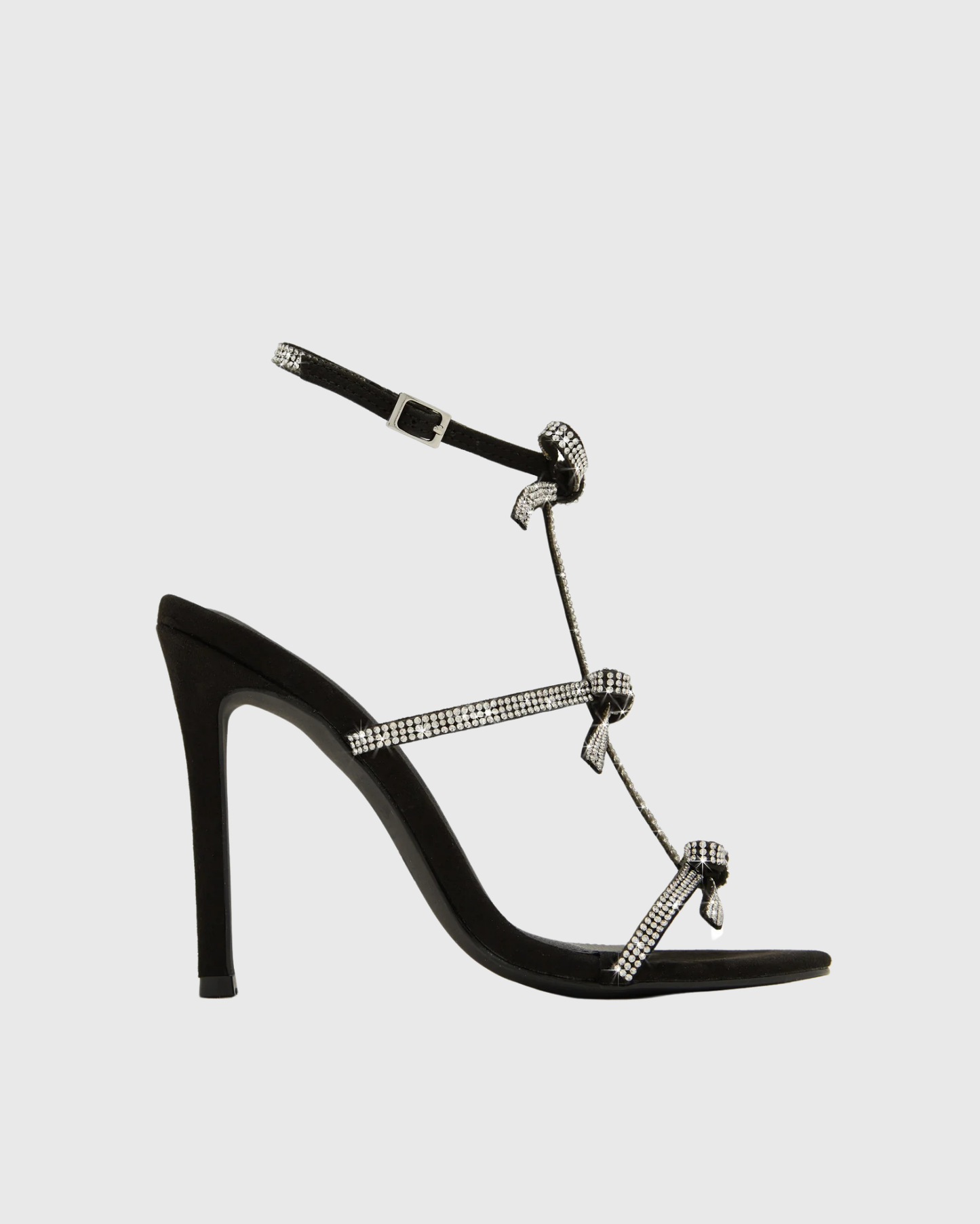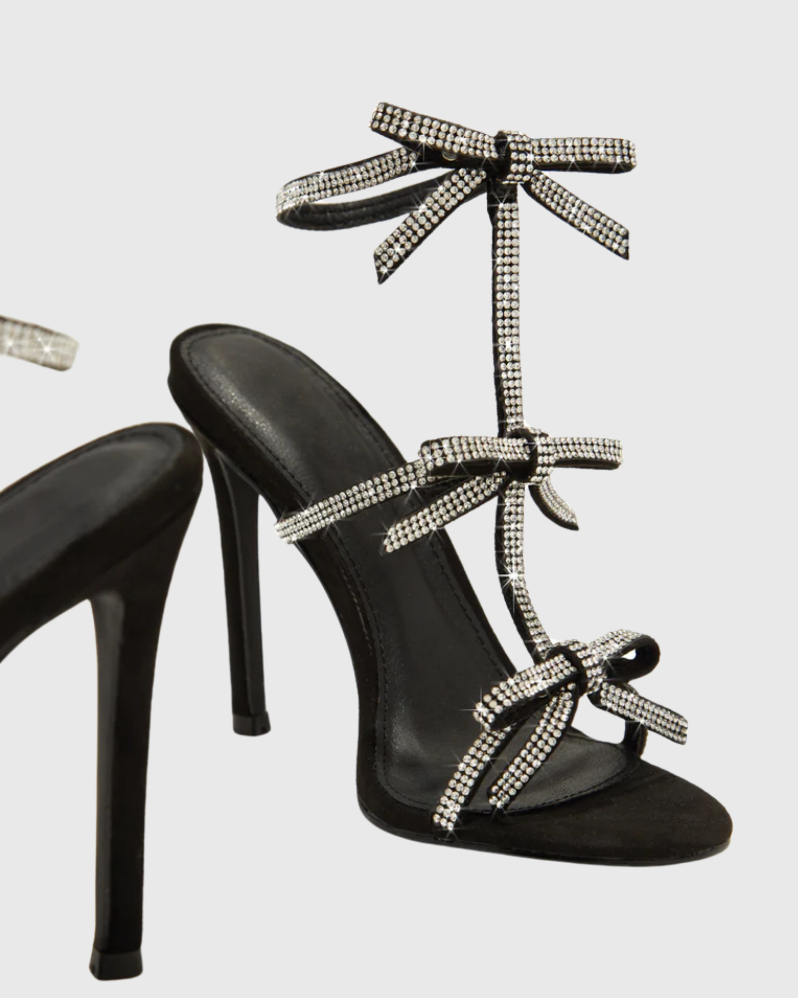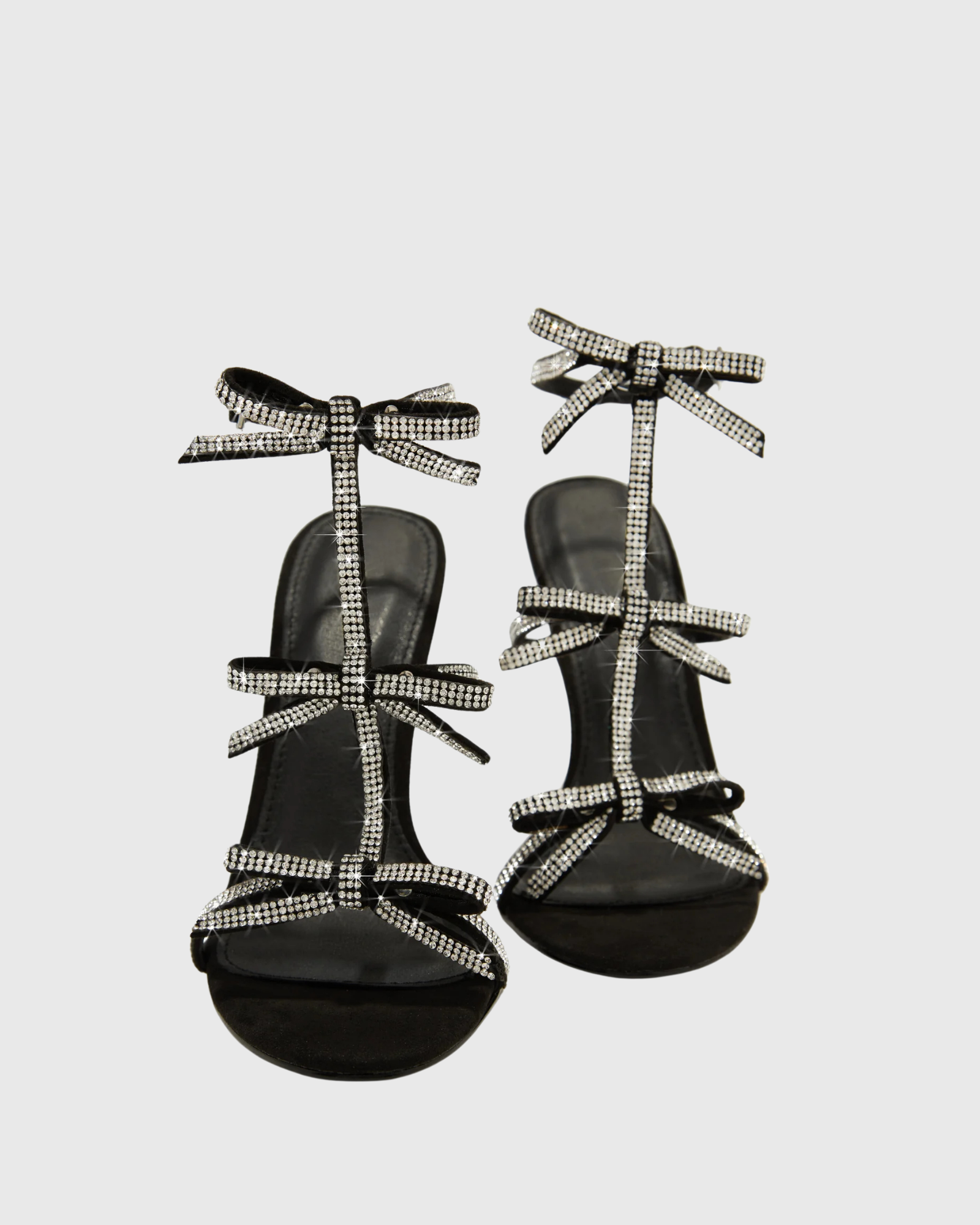 Ilaria Rhinestone Bow Strap Sandals In Black