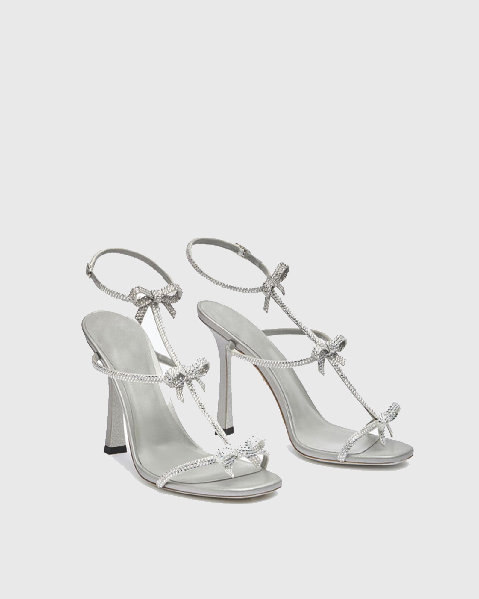 Ilaria Rhinestone Bow Strap Sandals In Silver