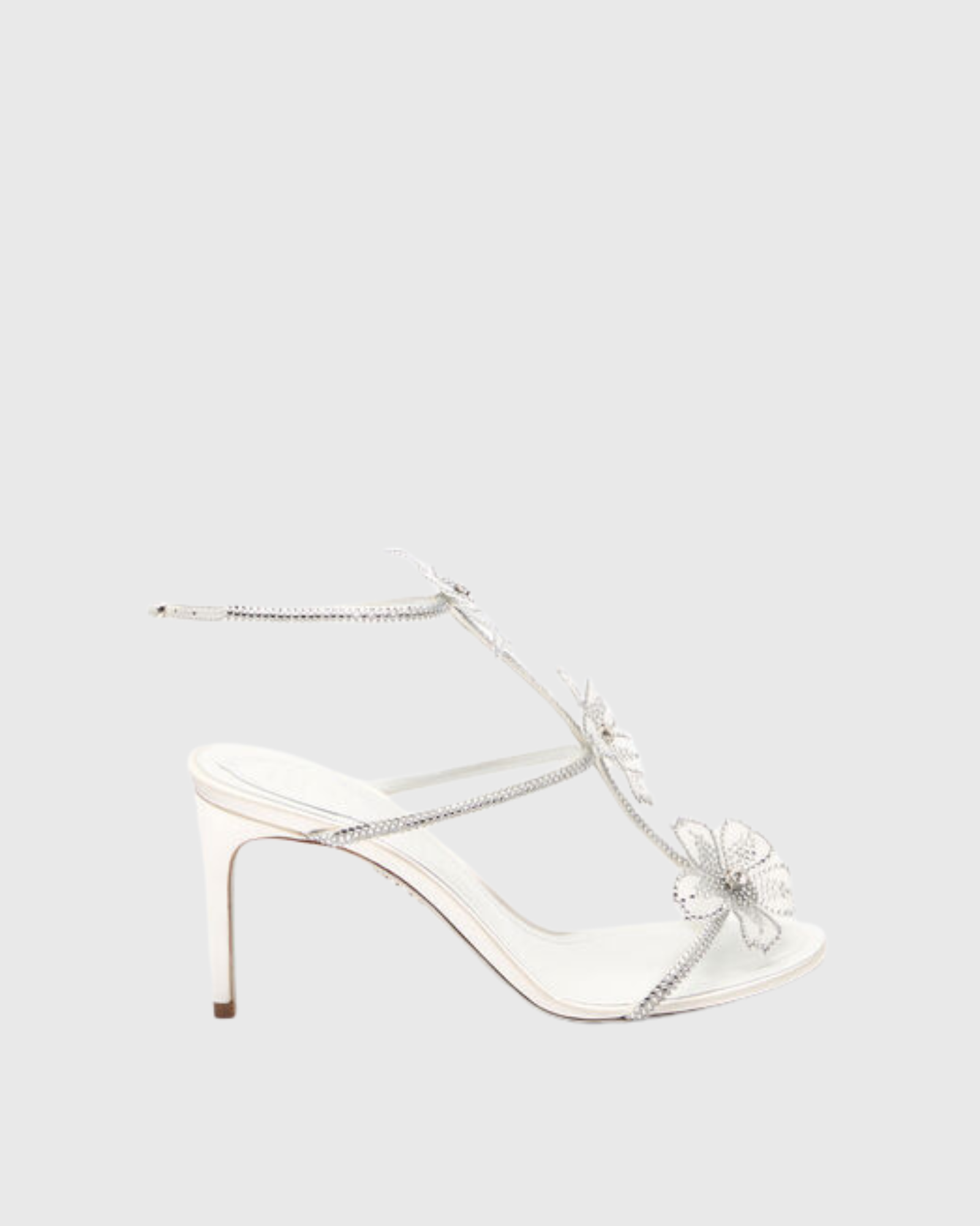 Step into elegance with the Ilaria Rhinestone Flower Strap Sandals in White. Featuring delicate rhinestone accents and charming floral straps, these sandals add a sparkling touch to any outfit. Perfect for special occasions or elevating your everyday look, they combine style and comfort effortlessly. Make a statement with every step you take.