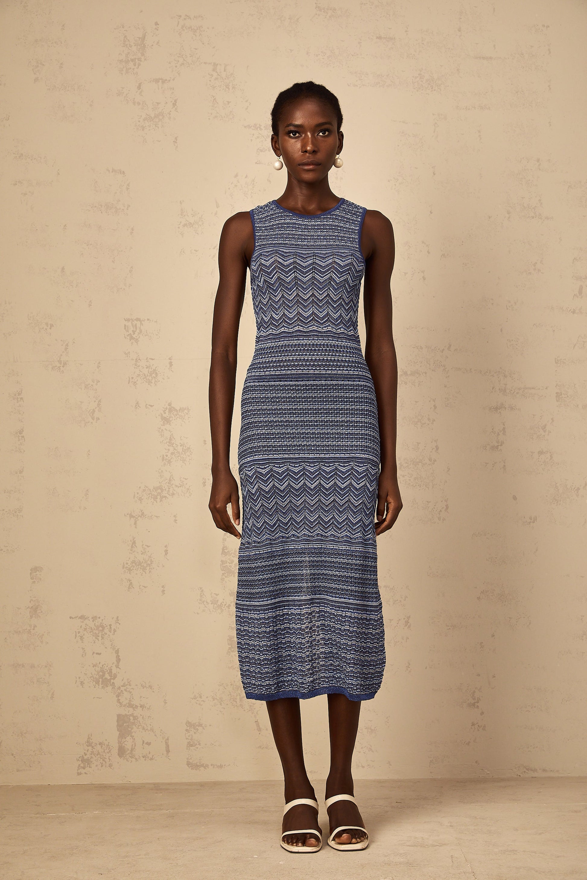 Ingrid Blue Wavy Crochet Knit Midi Dress