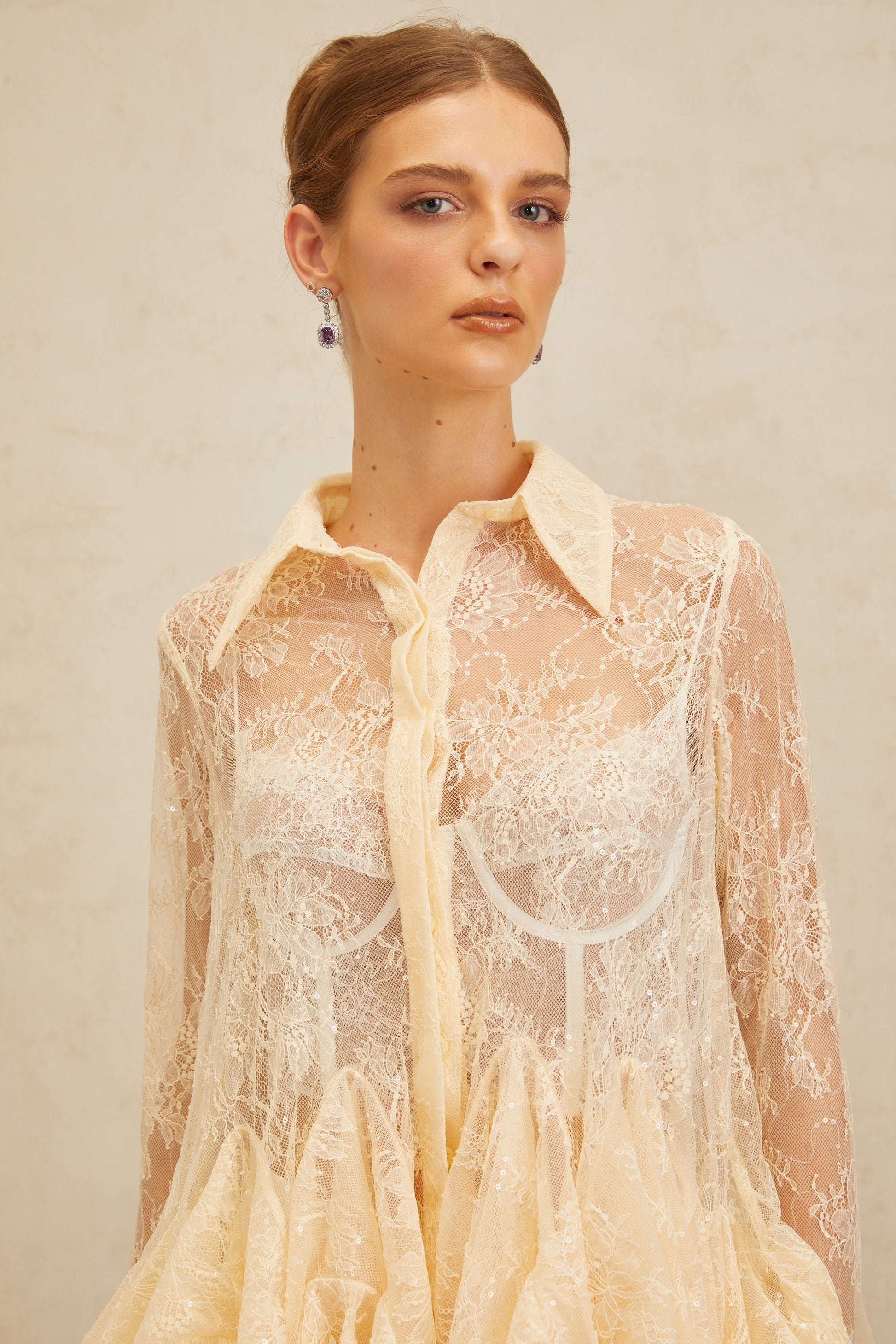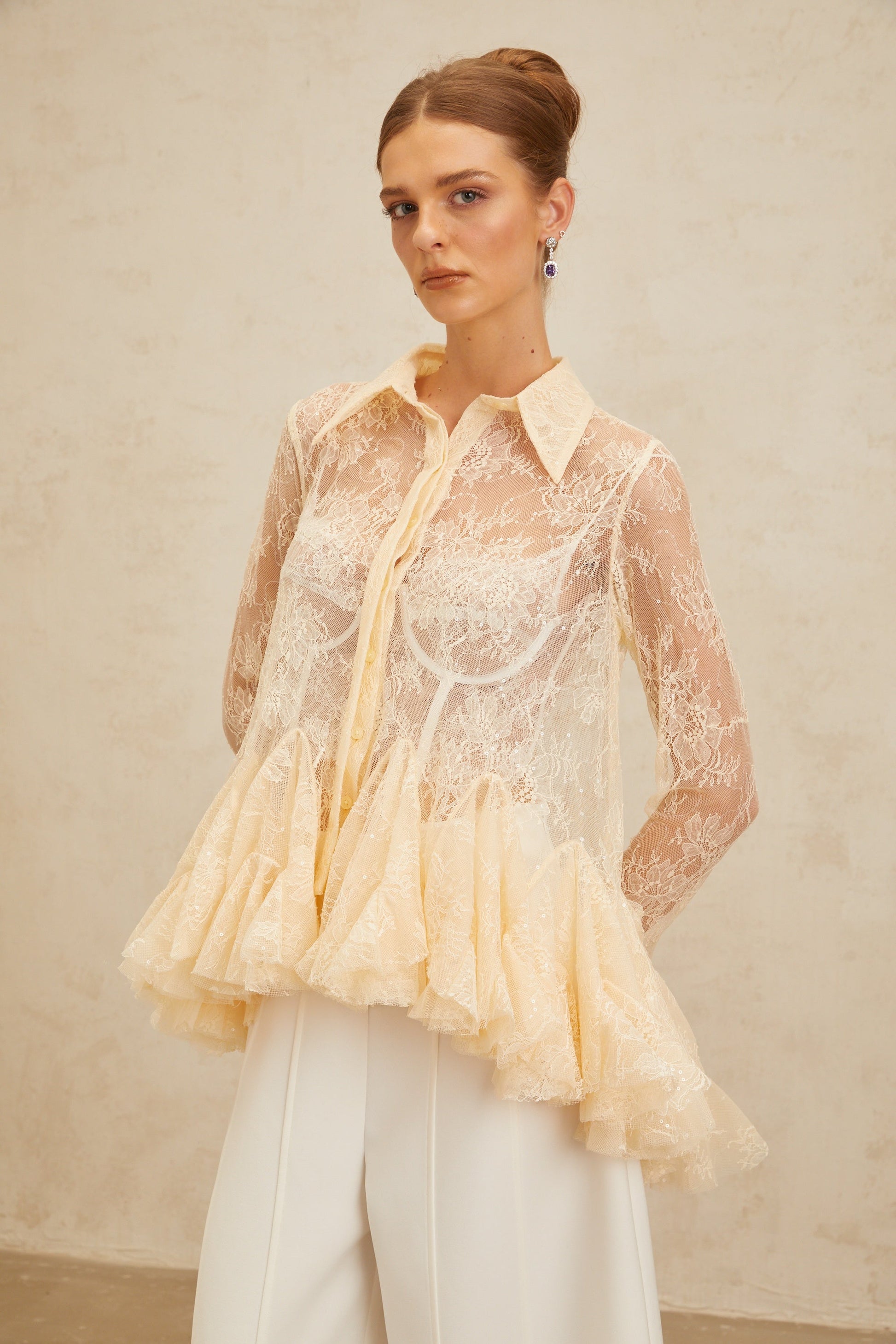 Ingrid Neutral Peplum Floral Lace Blouse