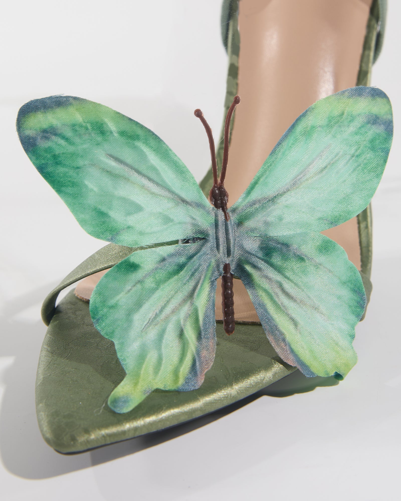 Step into enchanting style with our Io Butterfly Slingback Sandals in Green. These eye-catching sandals feature delicate butterfly details that transform ordinary steps into graceful movements. The comfortable slingback design ensures all-day wearability while the vibrant green hue adds a refreshing pop of color to any outfit. Perfect for making a statement whether paired with summer dresses or casual denim.