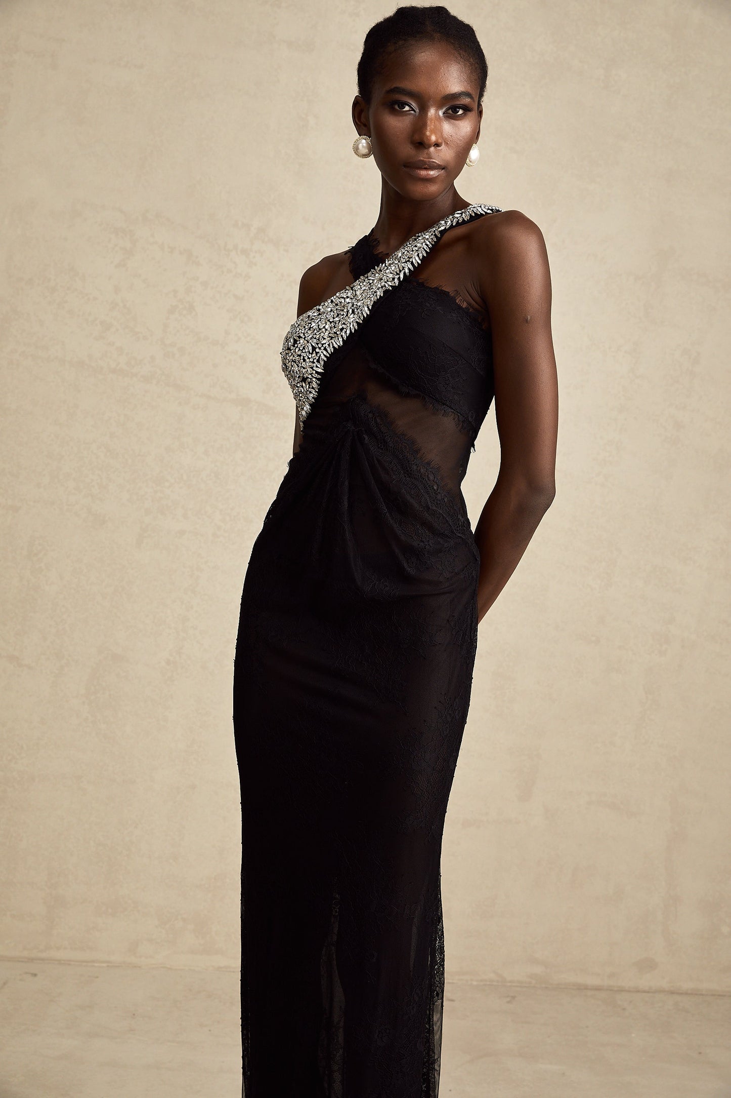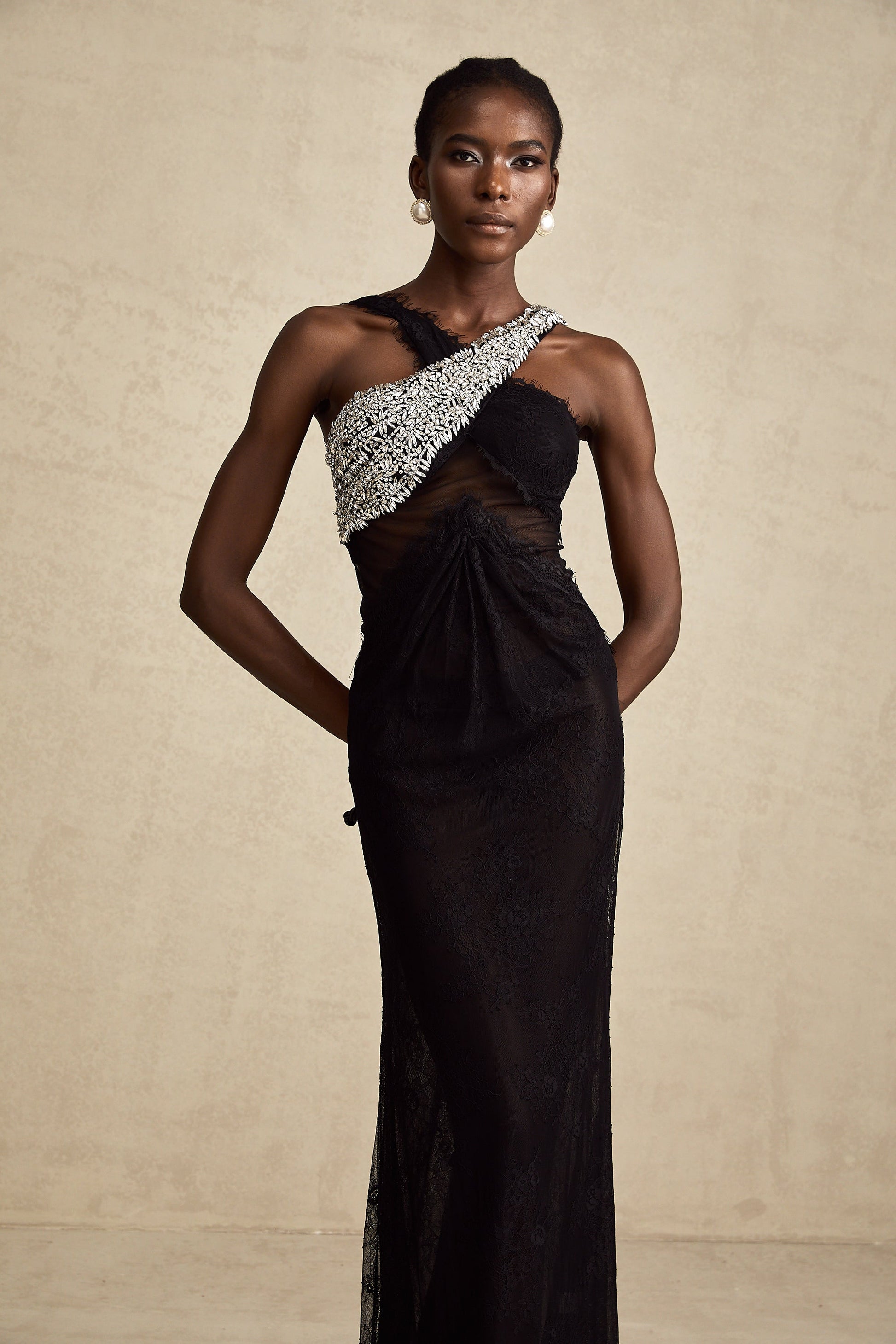 Irène black crossover crystal-embellished maxi dress