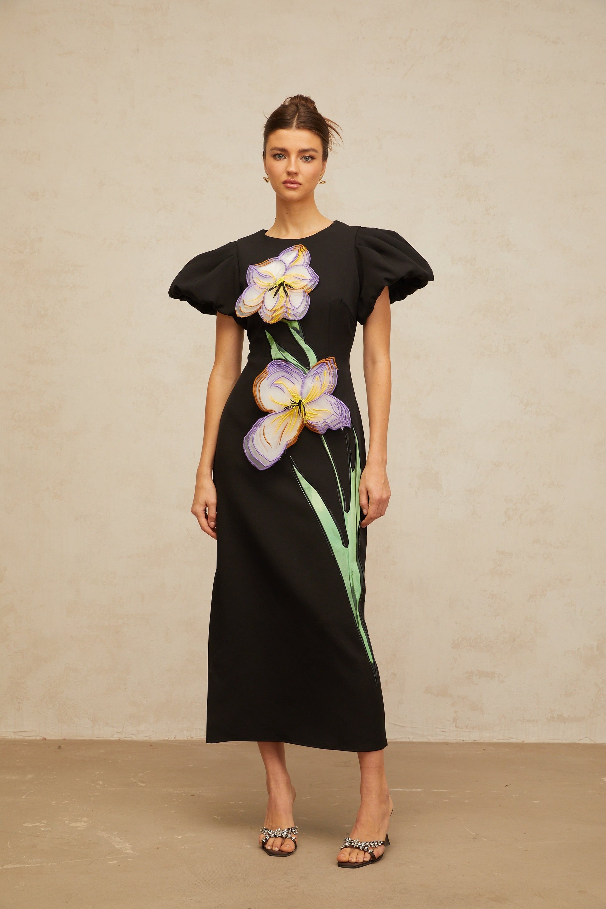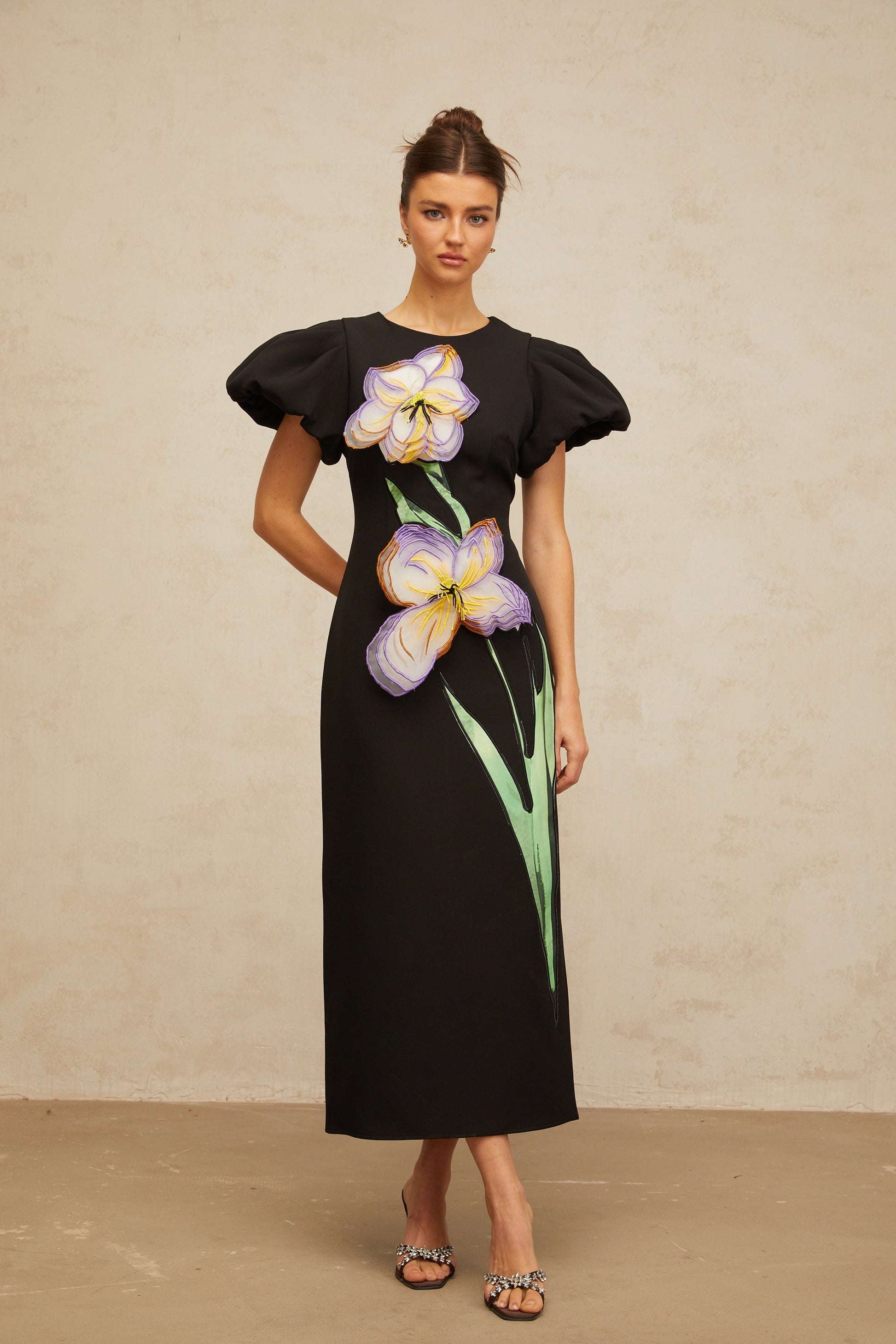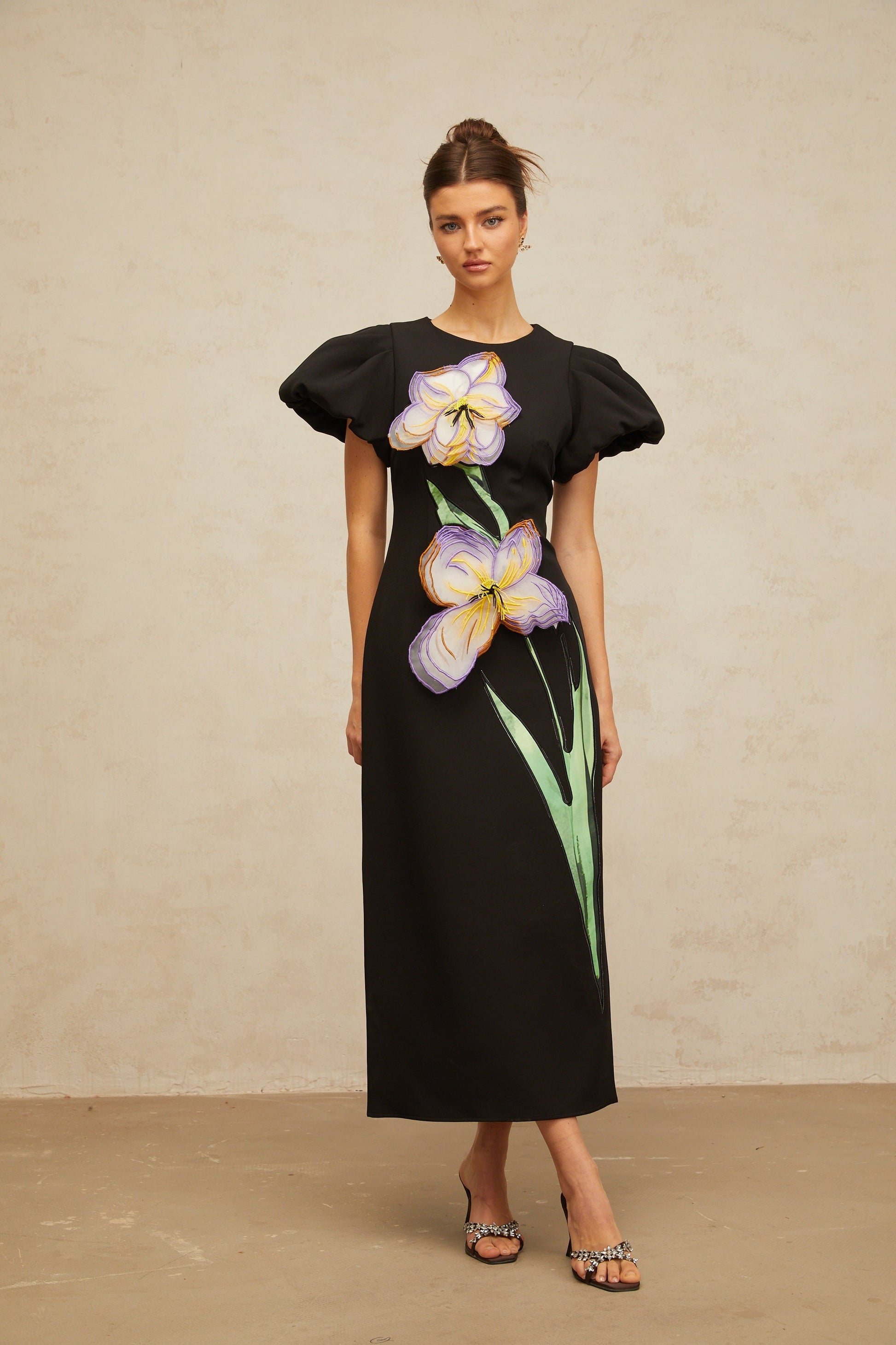 Irène sequined floral-embroidered midi dress in Black