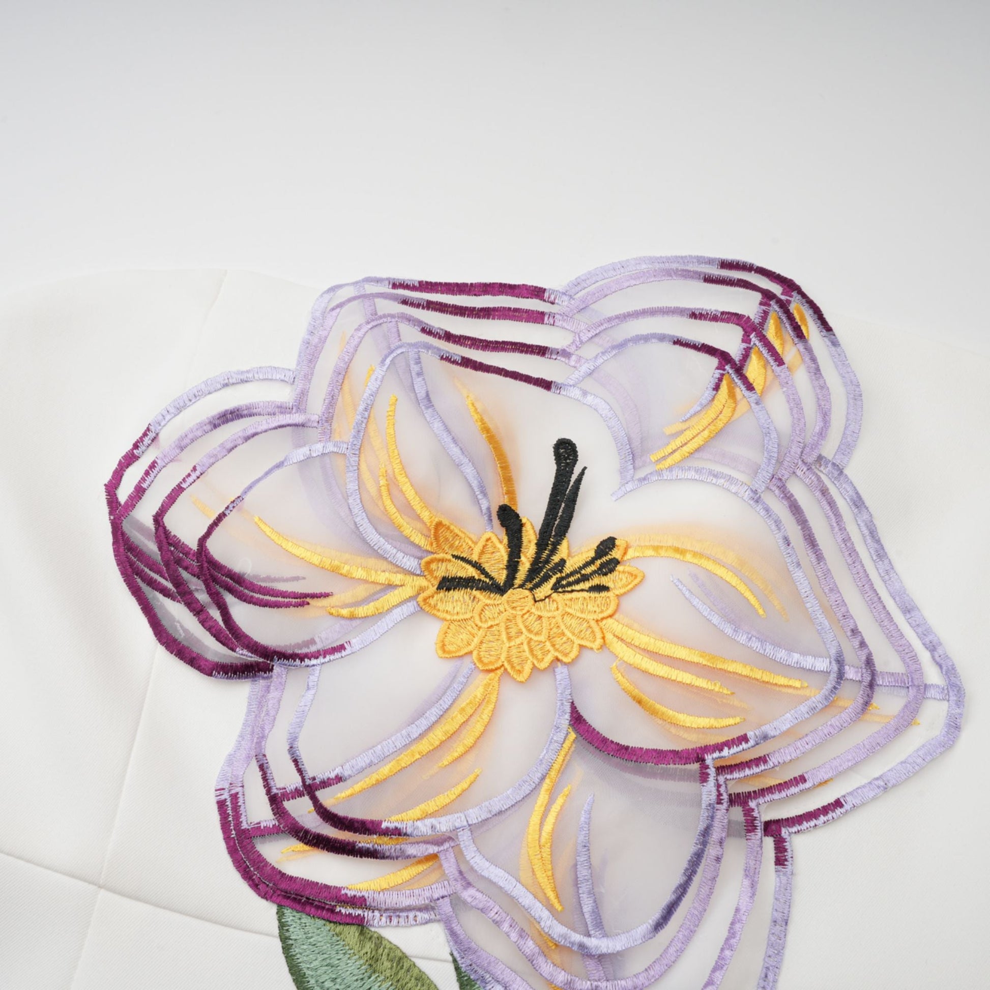 Irène White Off-Shoulder Sequin Floral Embroidered Mini Dress