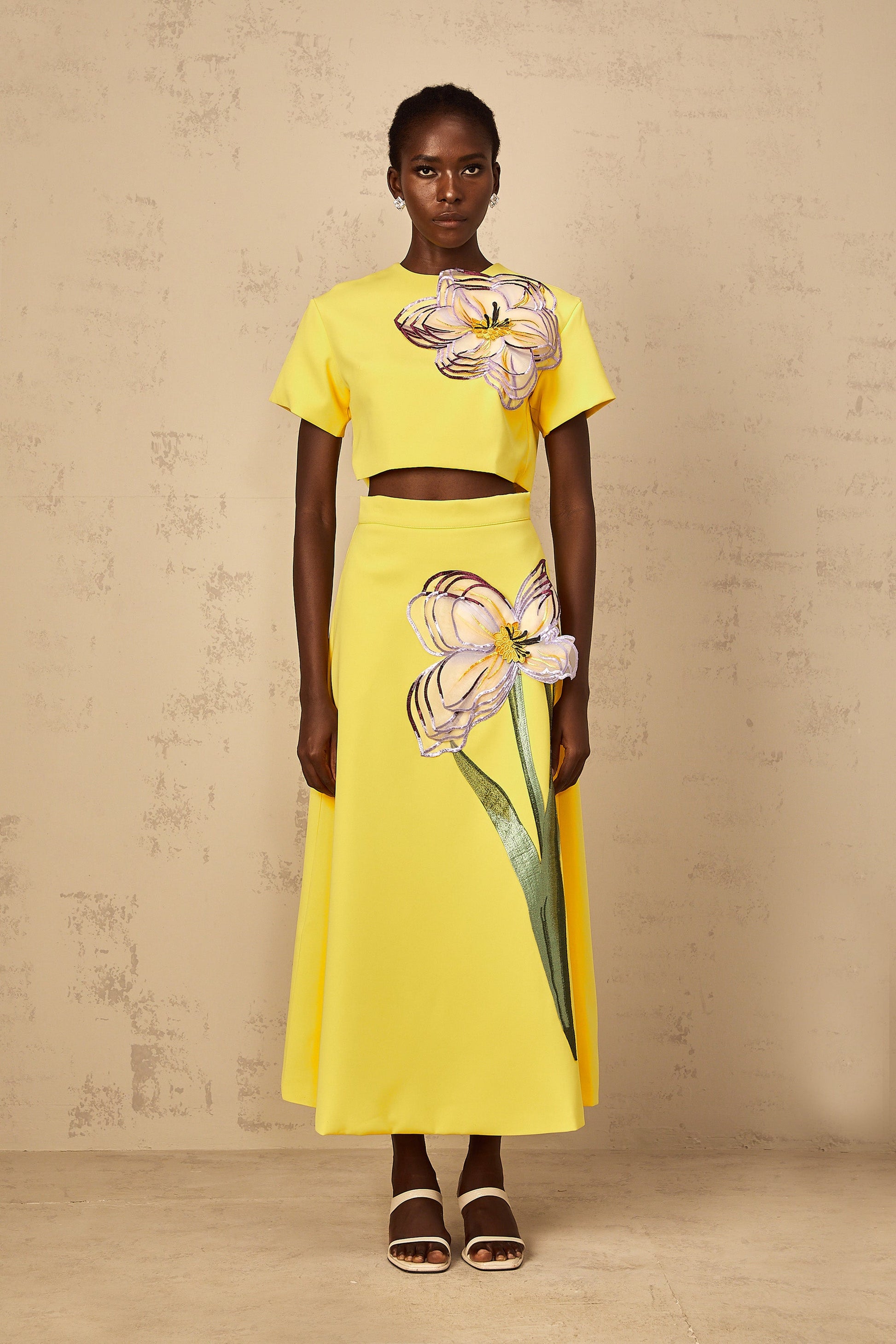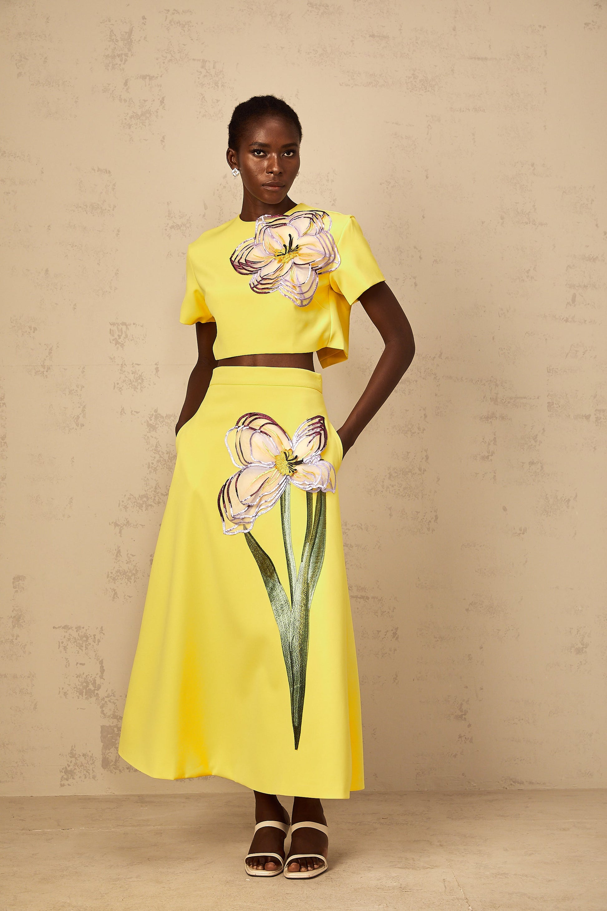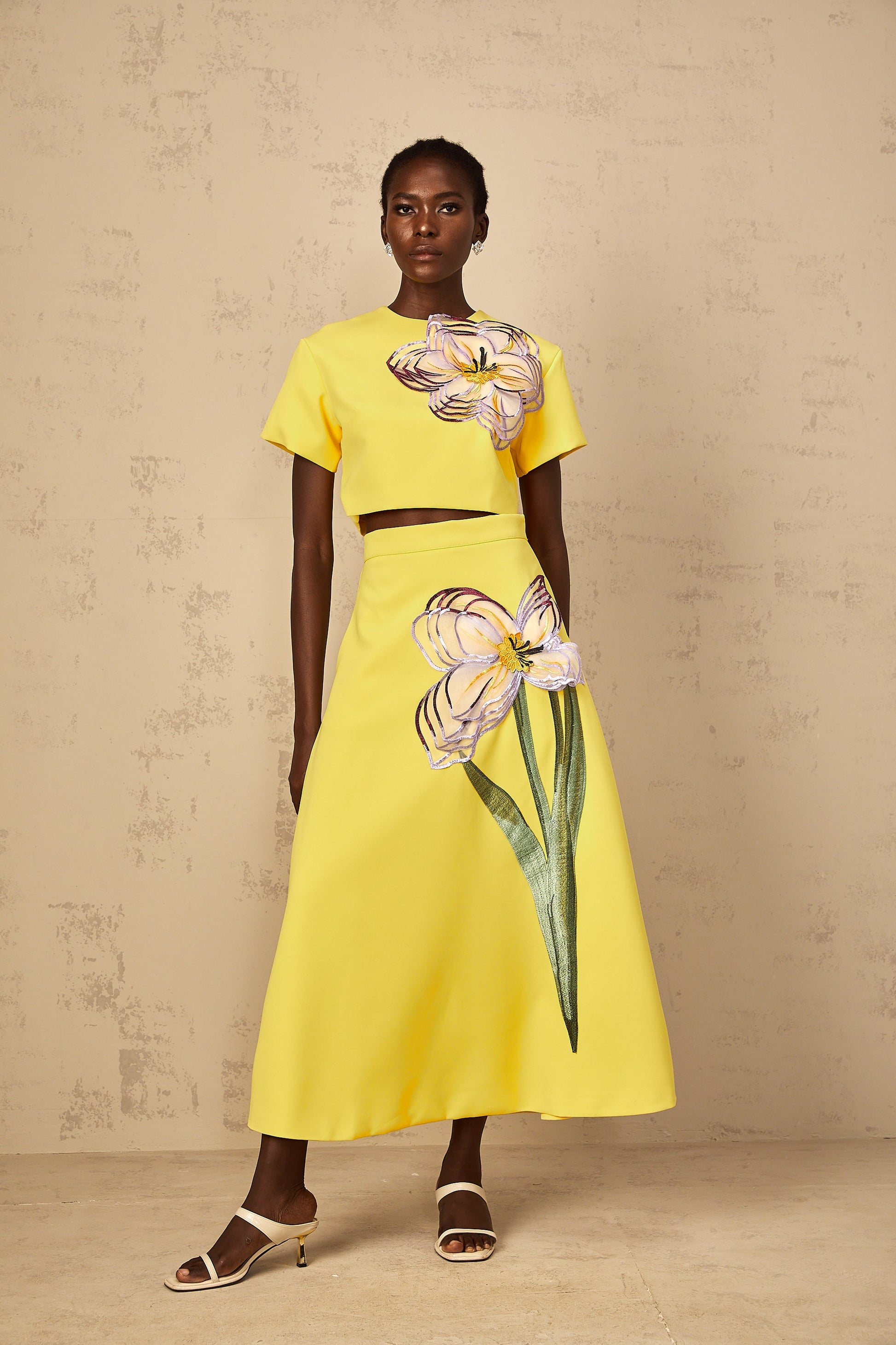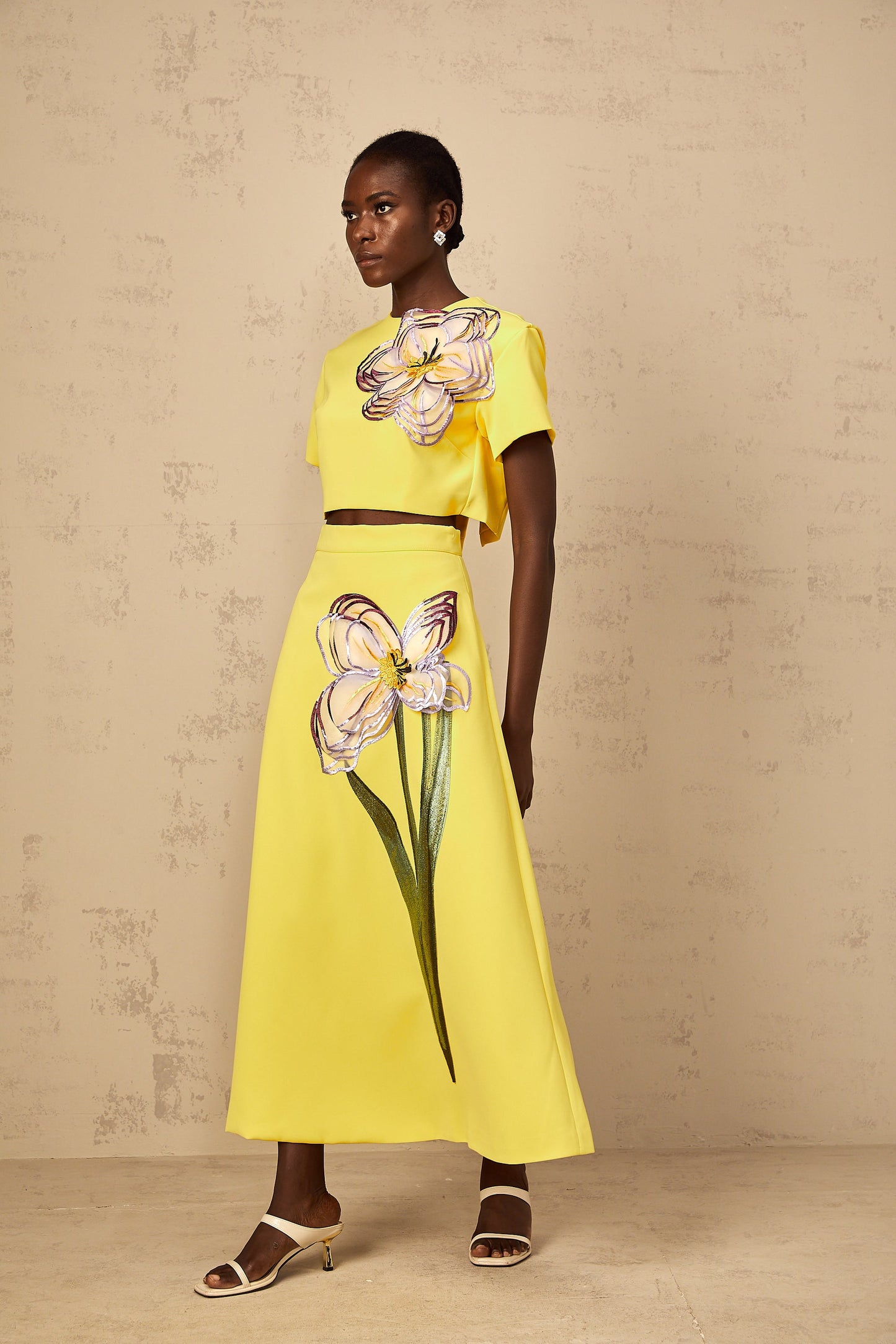 Irène Yellow Sequin Floral Embroidered Matching Set