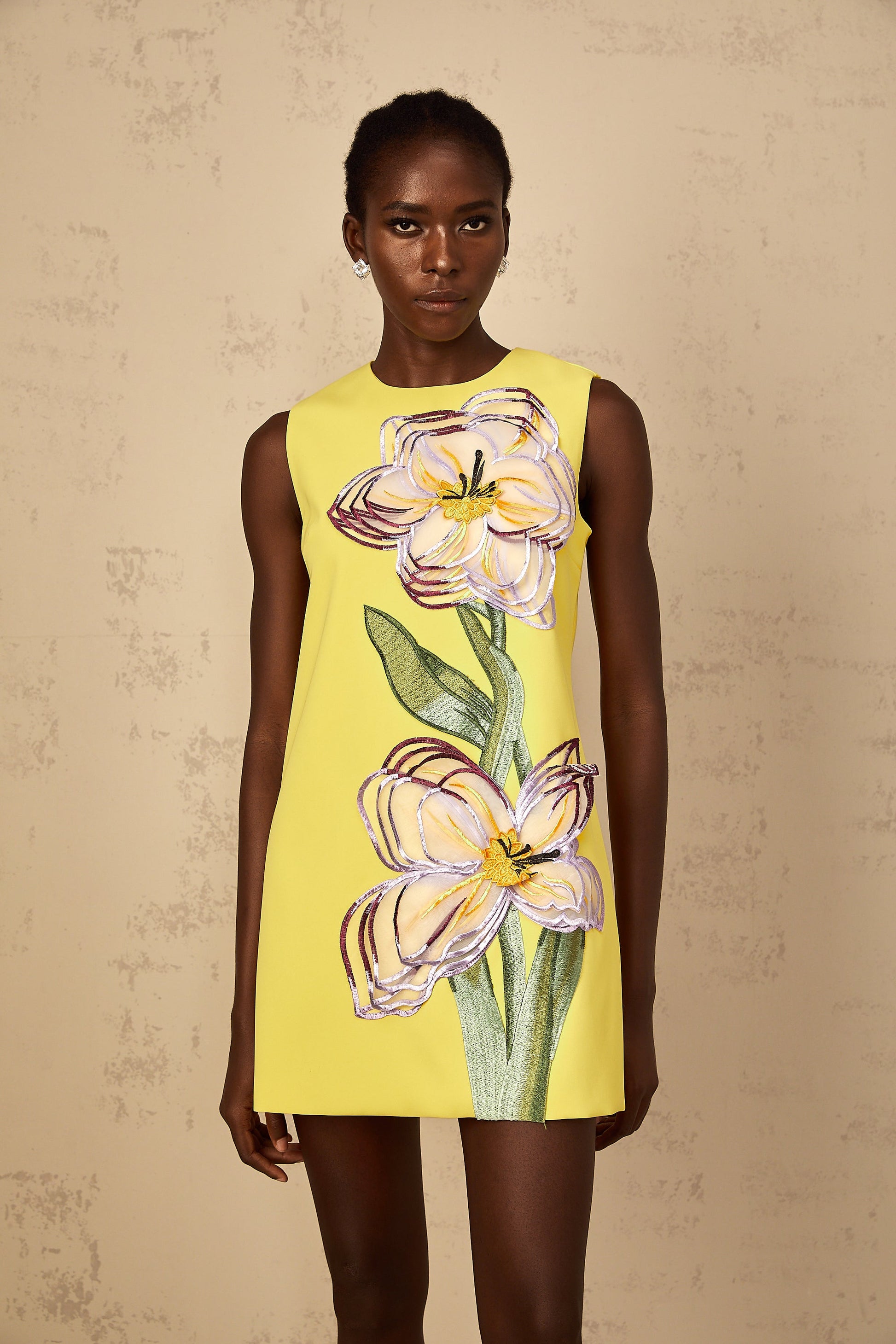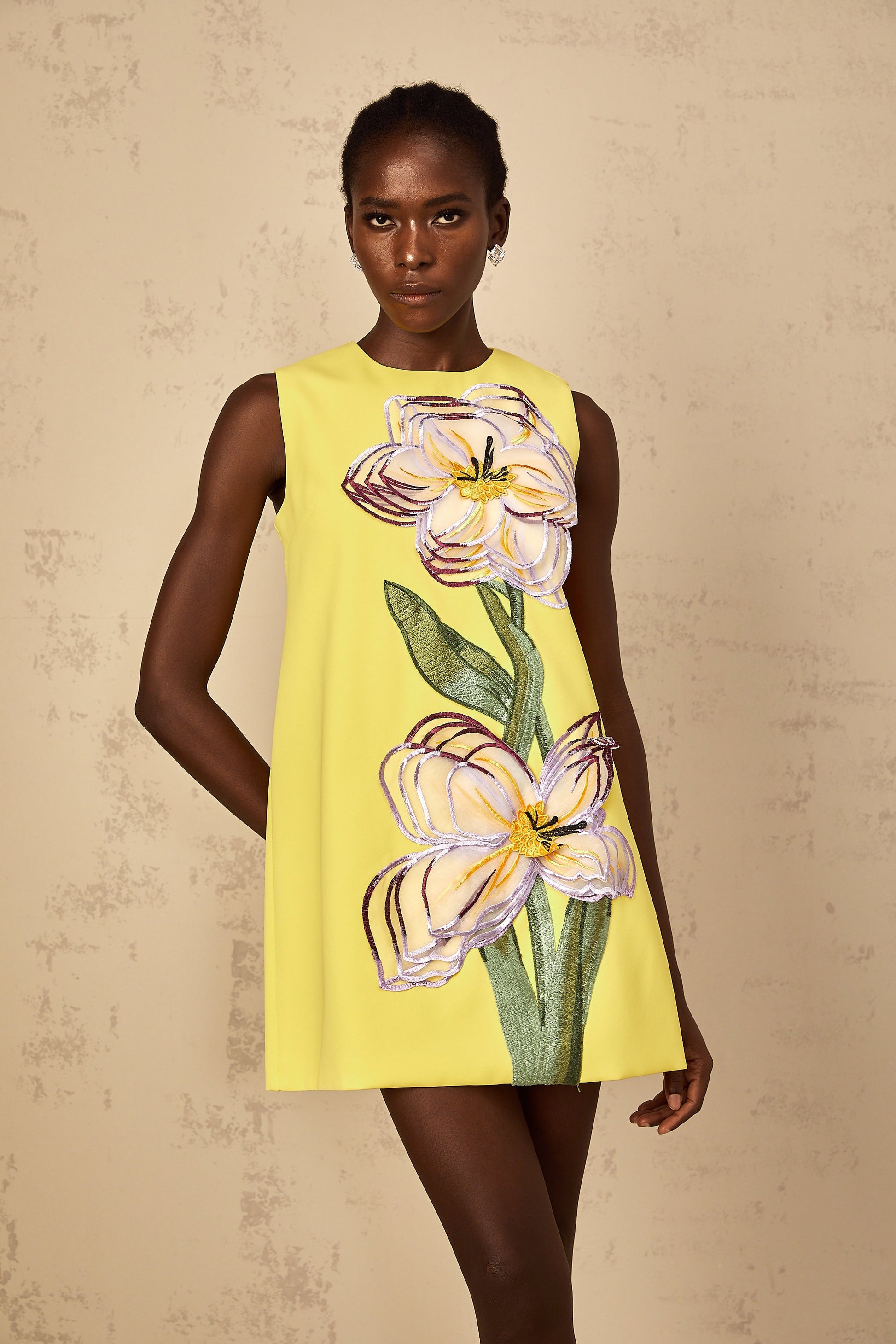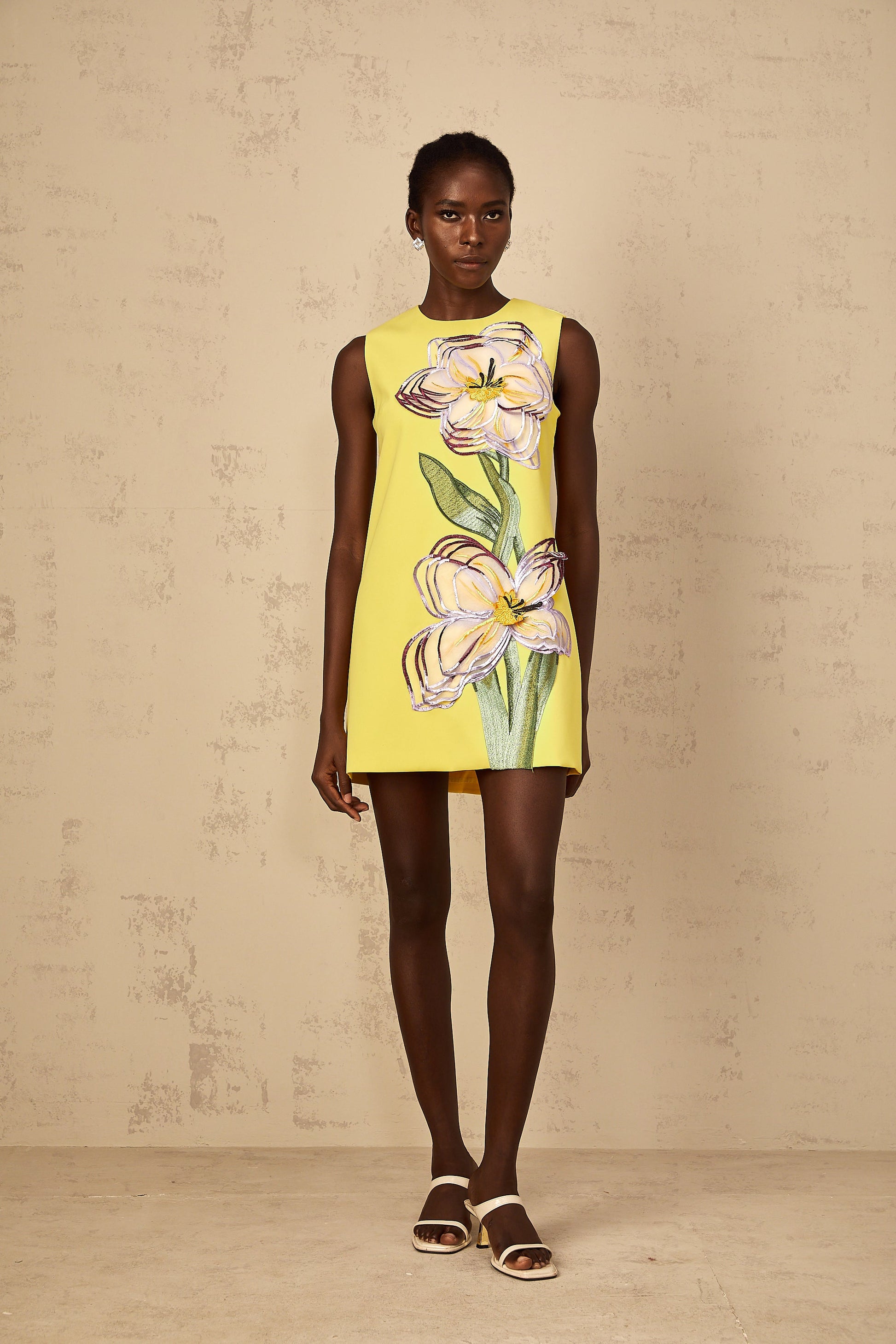 Irène Yellow Sequin Floral Embroidered Mini Dress