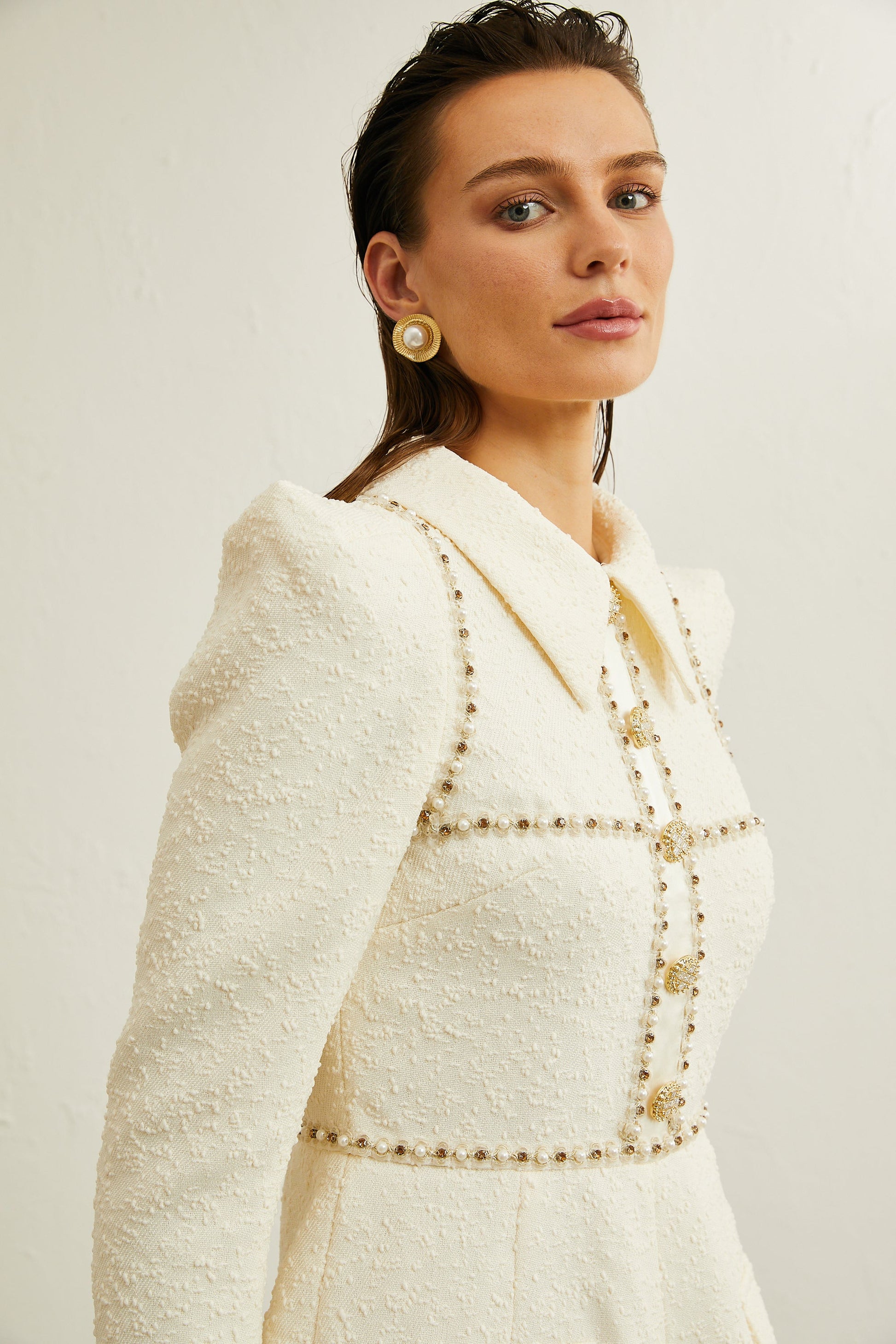 Irina faux-pearl tweed bodysuit