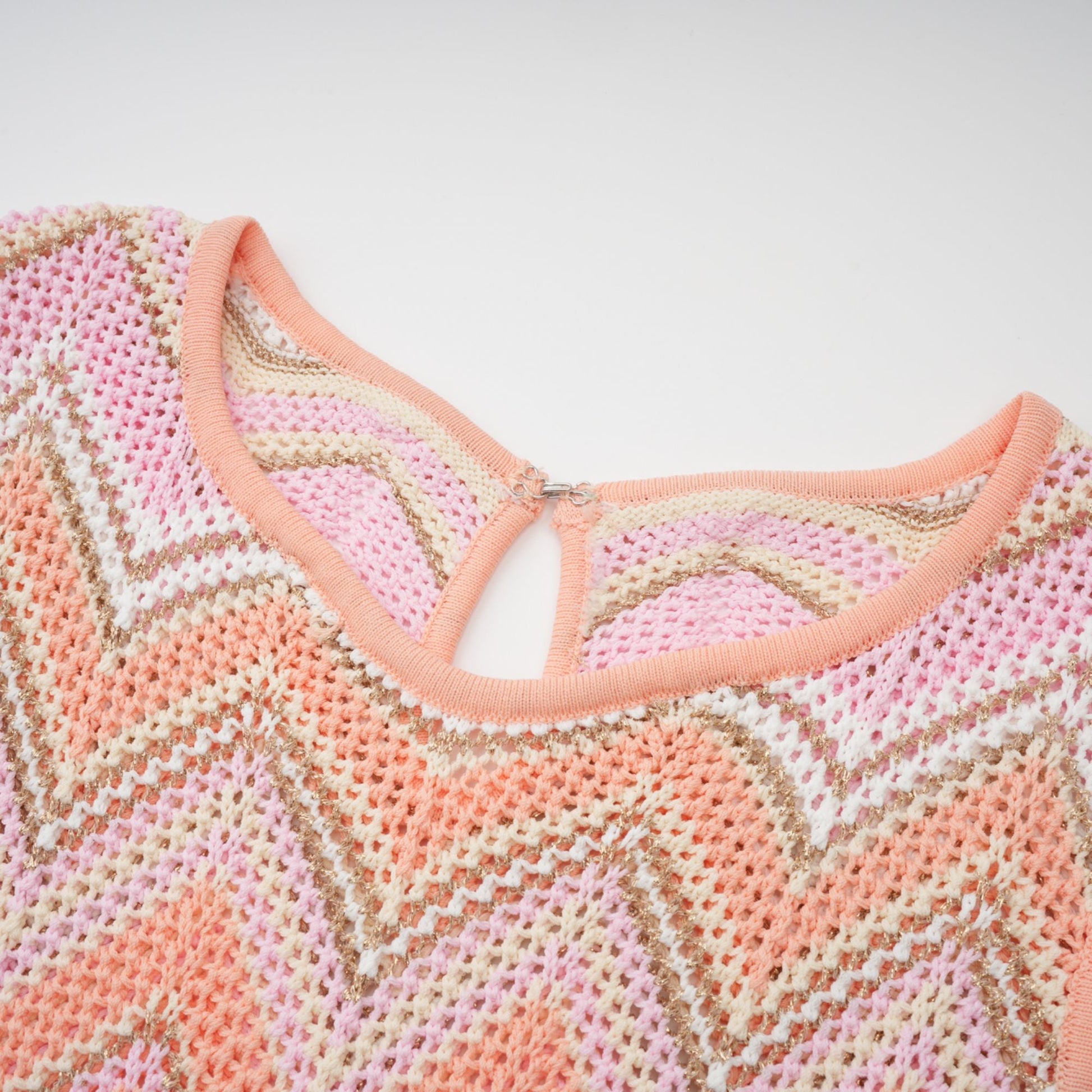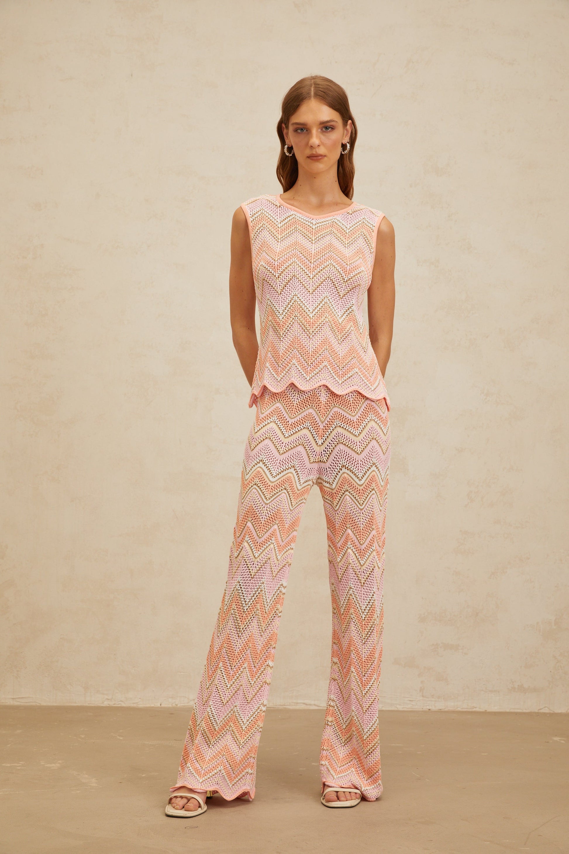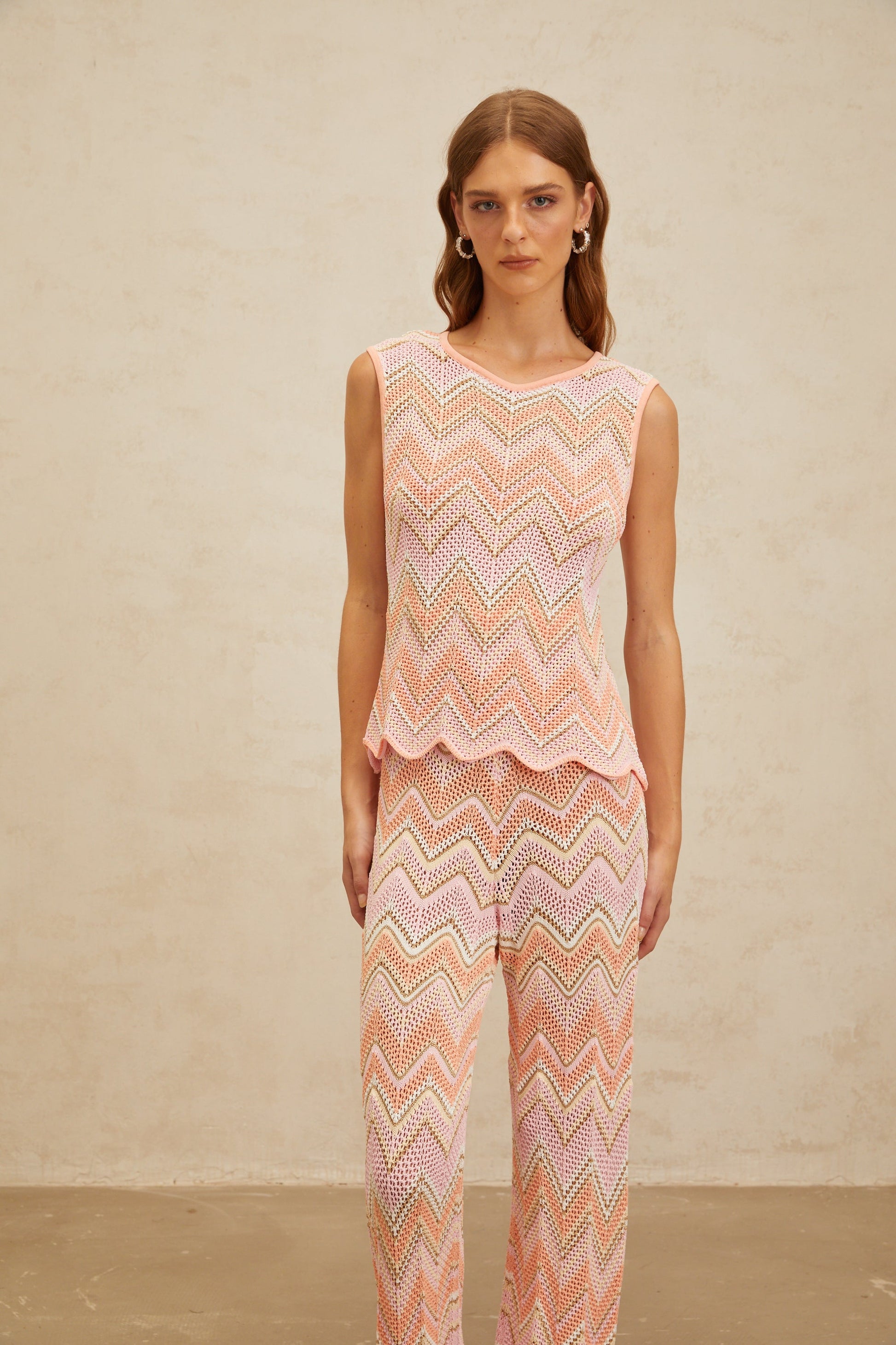 Irina Pink Zigzag Pointelle Knit Matching Set