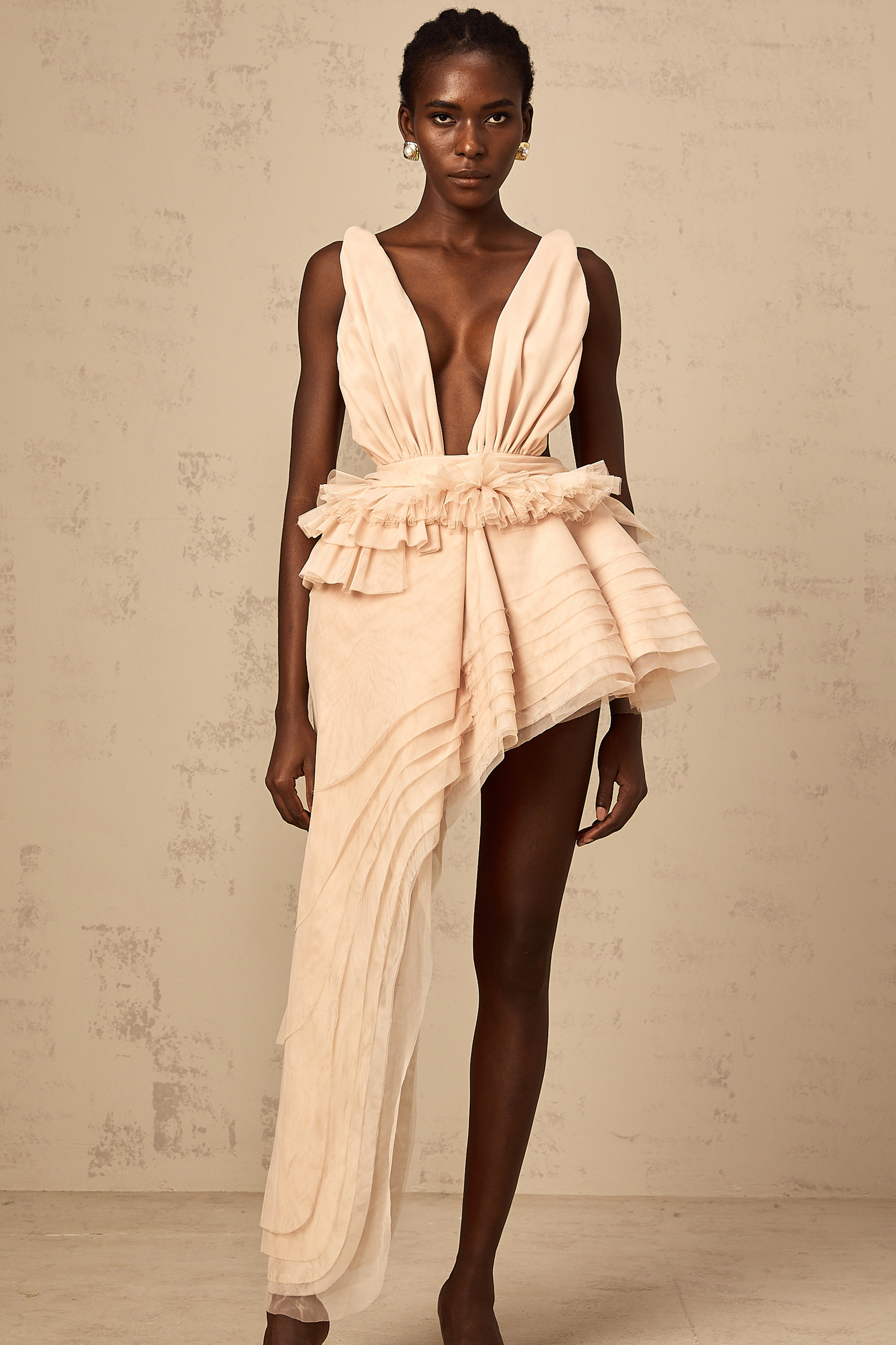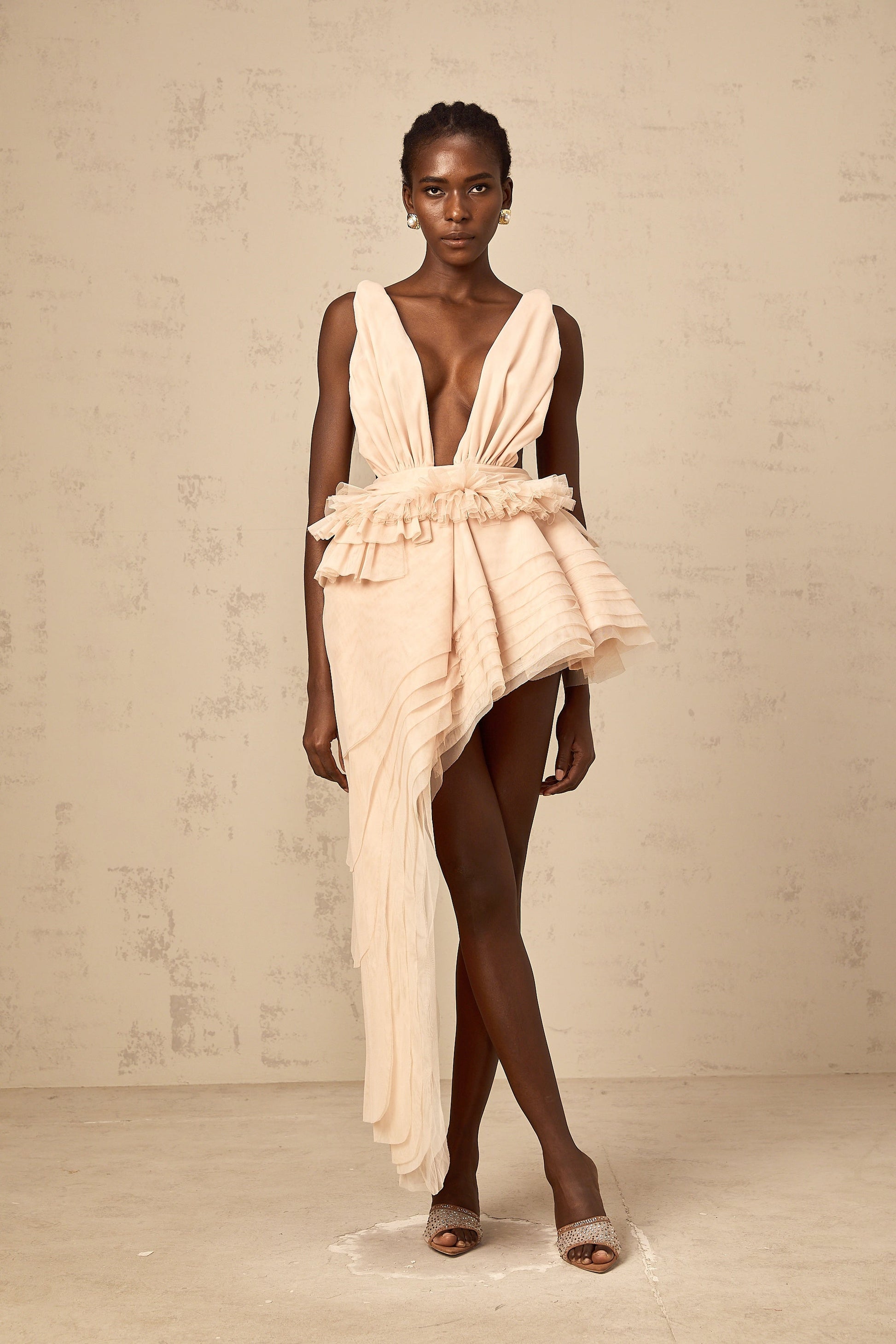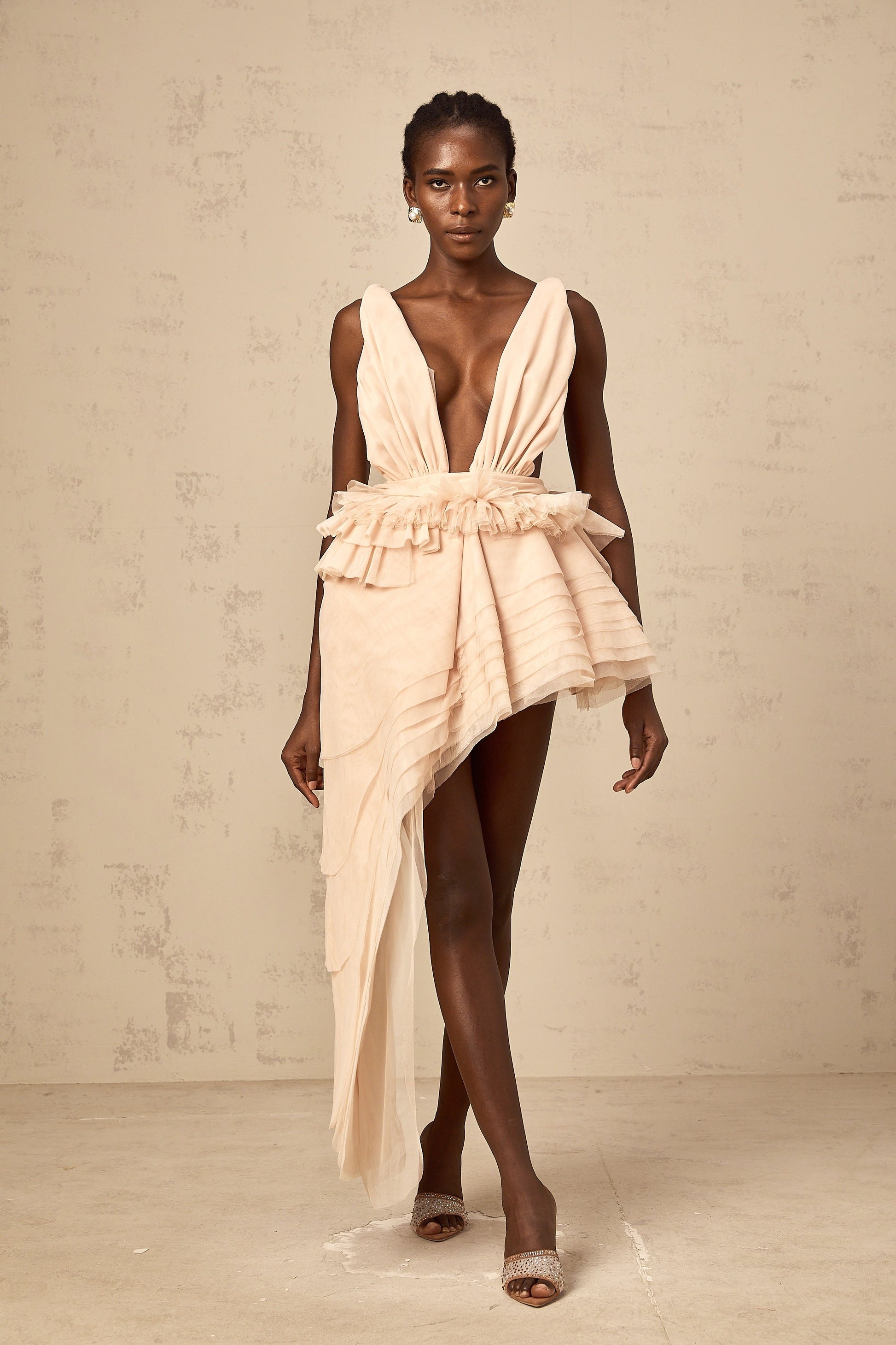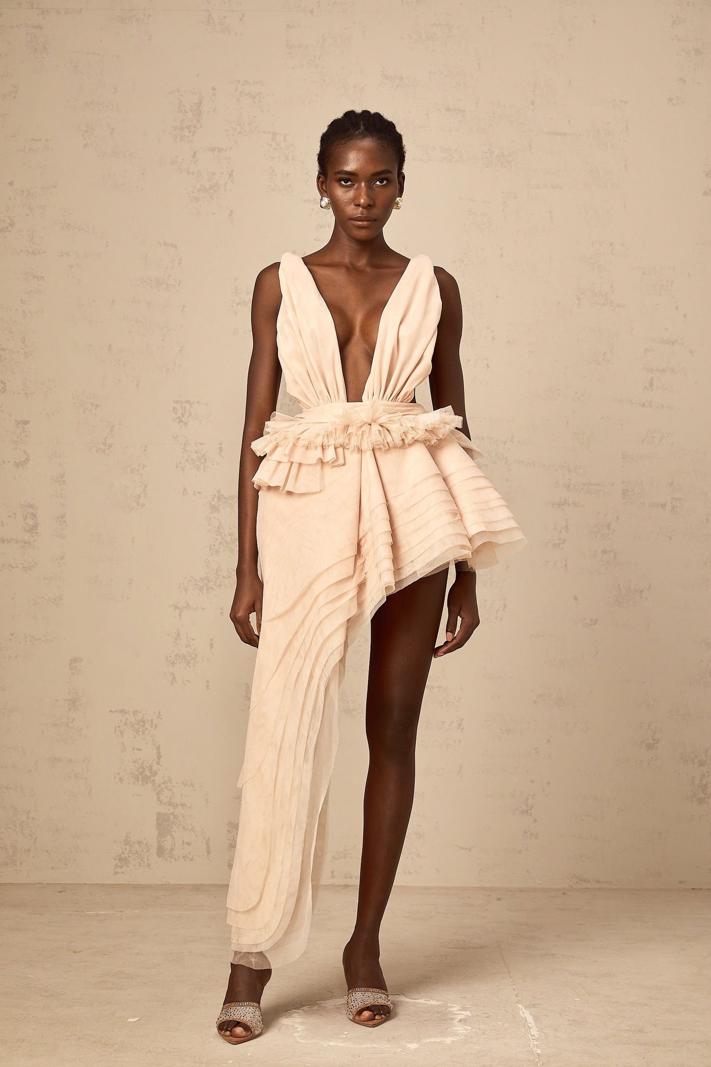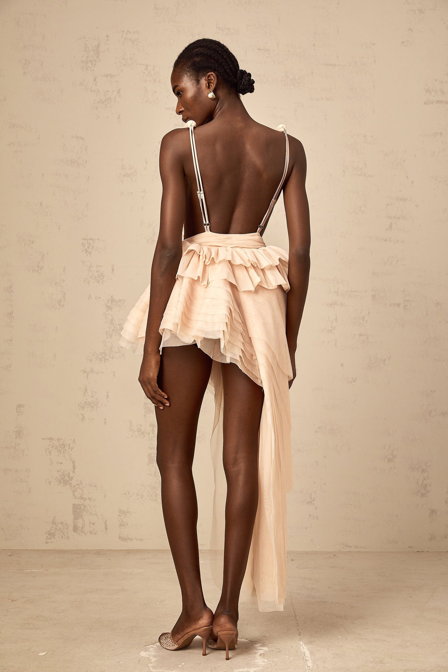 Isoline ribbon-design asymmetrical mini dress in Neutrals