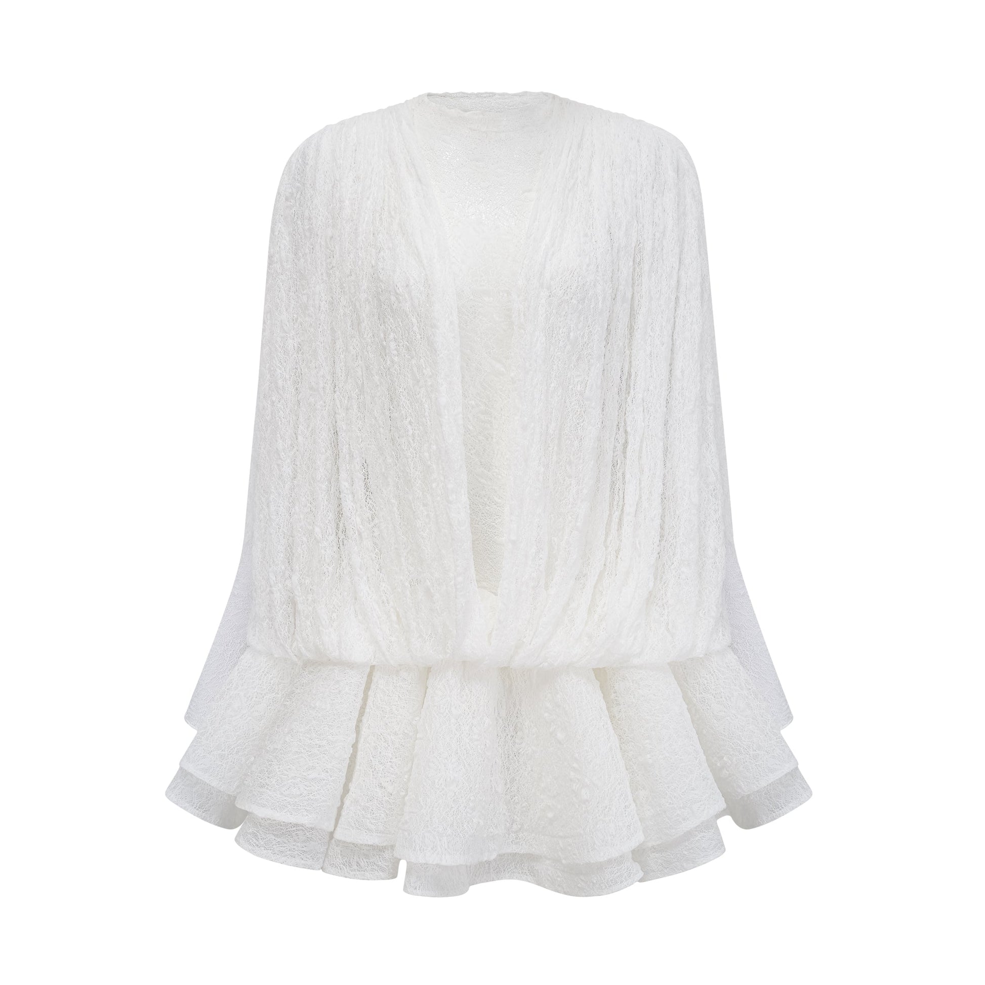 Isoline white semi-sheer lace top & shorts & dress matching set
