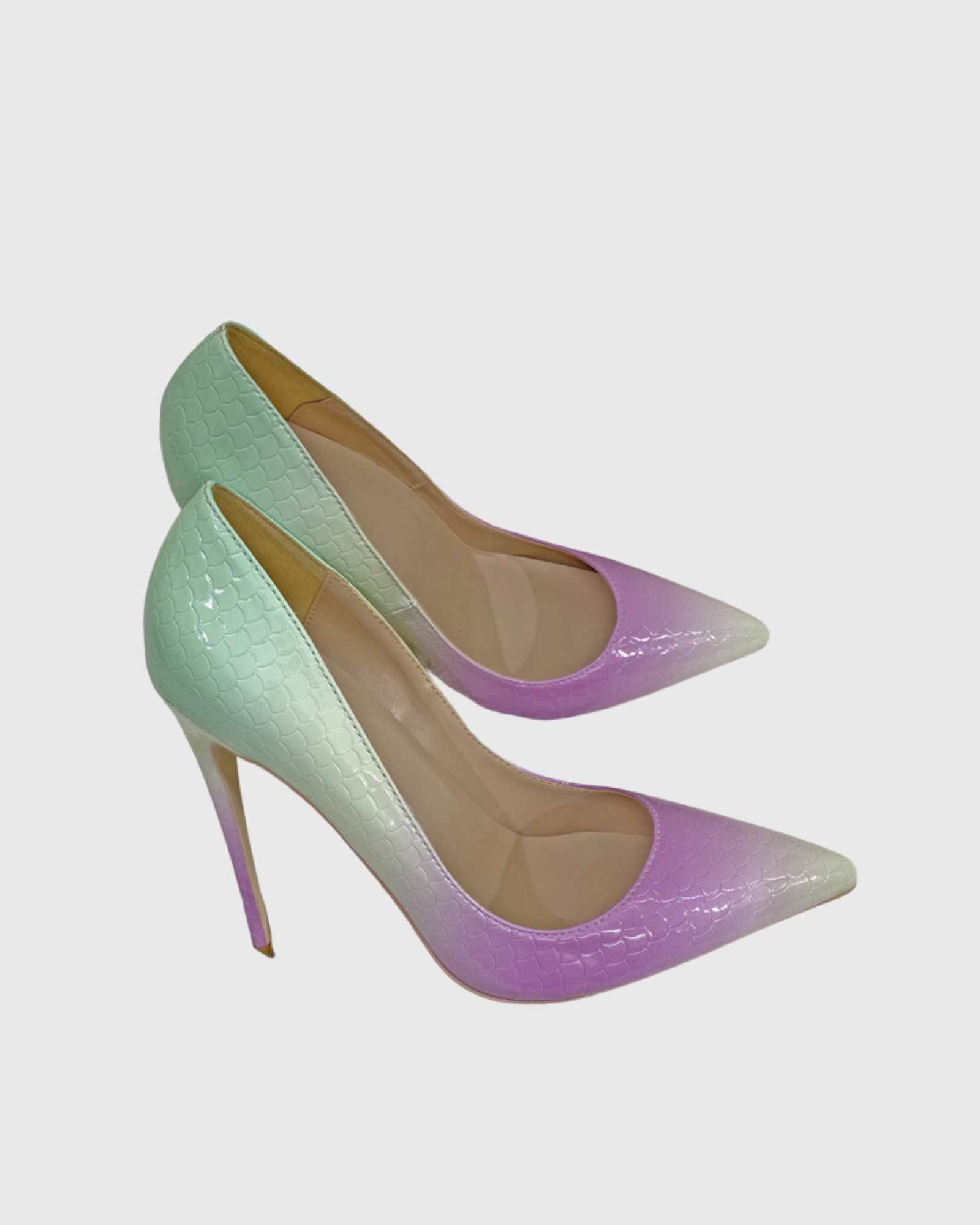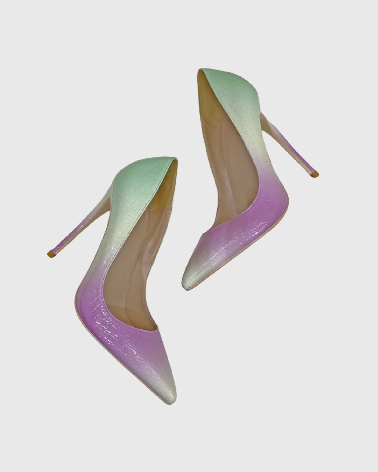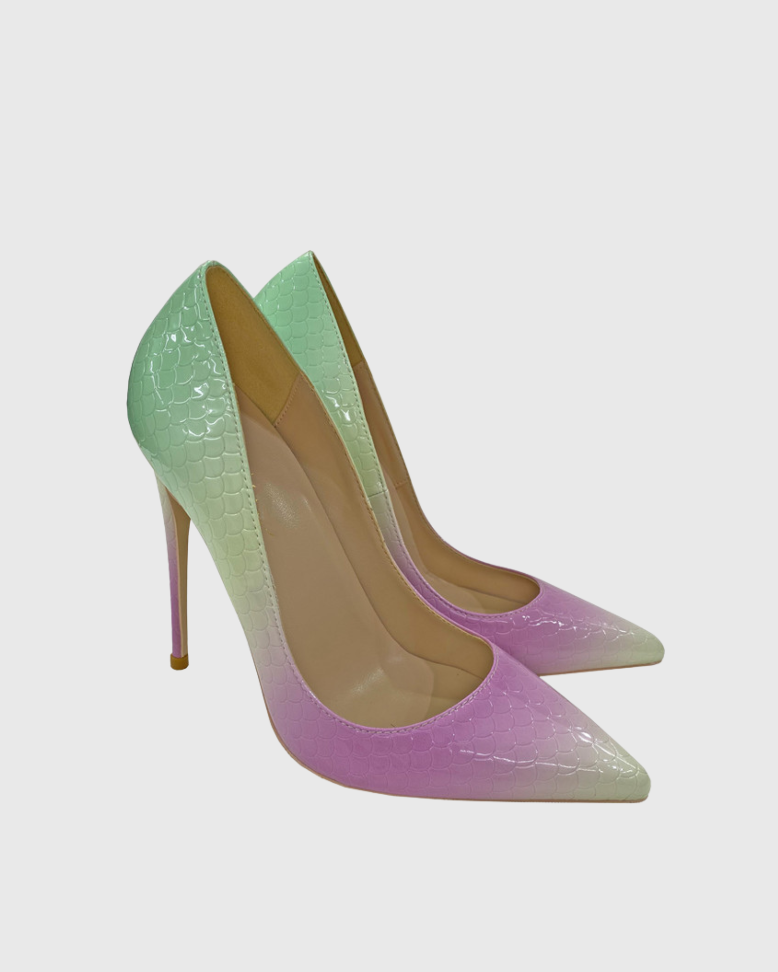 Elevate your style with Jen Snake Texture Pumps In Ombre. These sleek pumps feature a unique snake texture in a trendy ombre design, adding a touch of edginess to any outfit. With comfortable heels and versatile color options, they're perfect for any occasion. Make a statement with these must-have pumps!