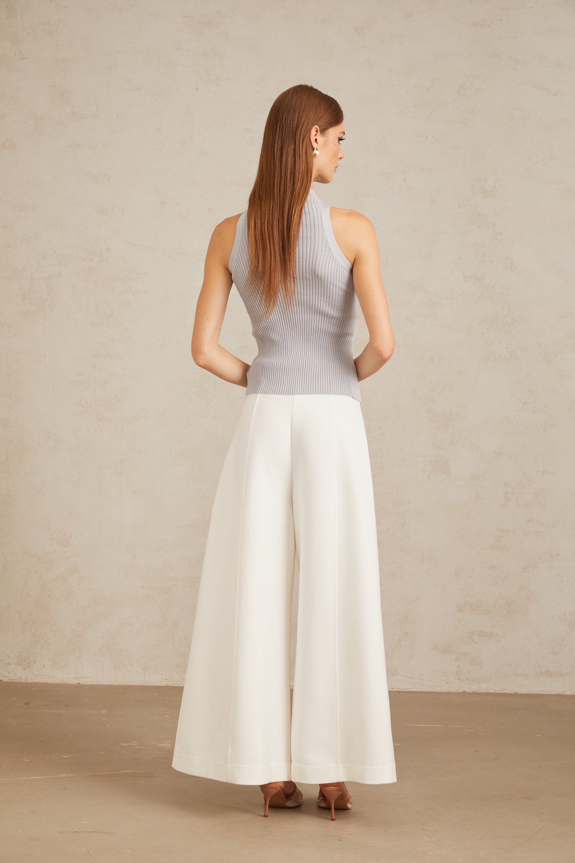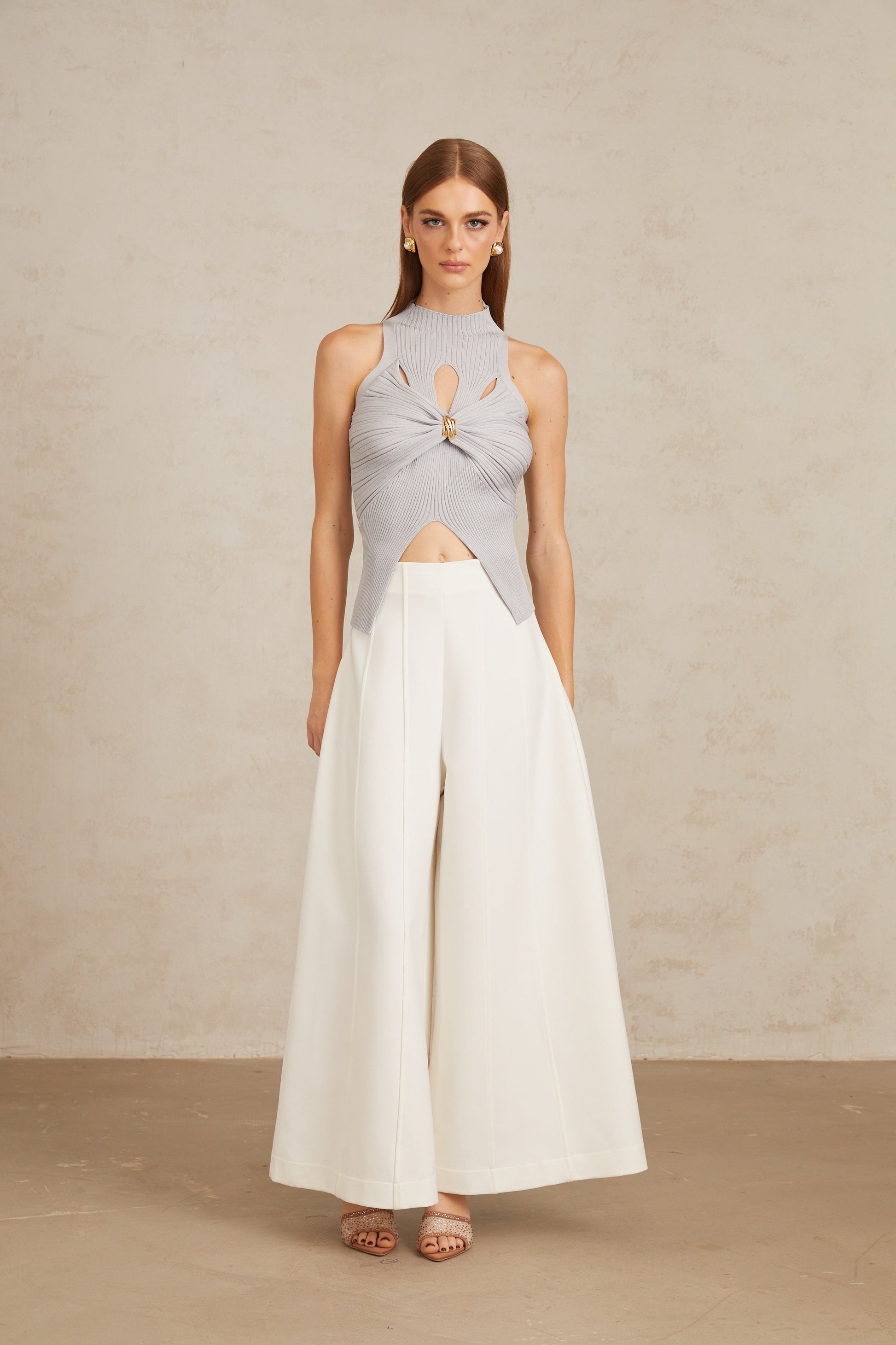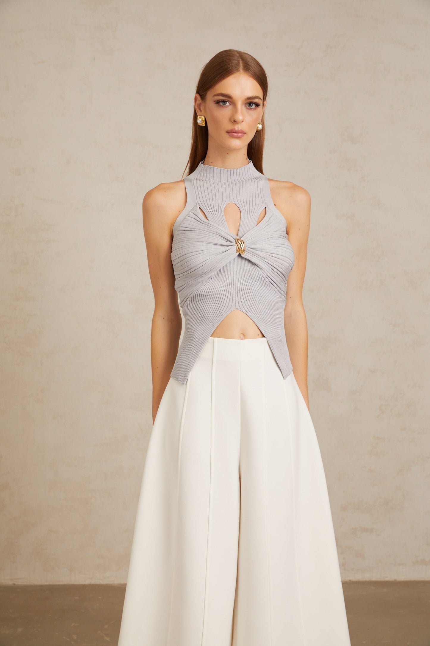 Jolivet Haze Blue Cutout Ribbed Knit Top