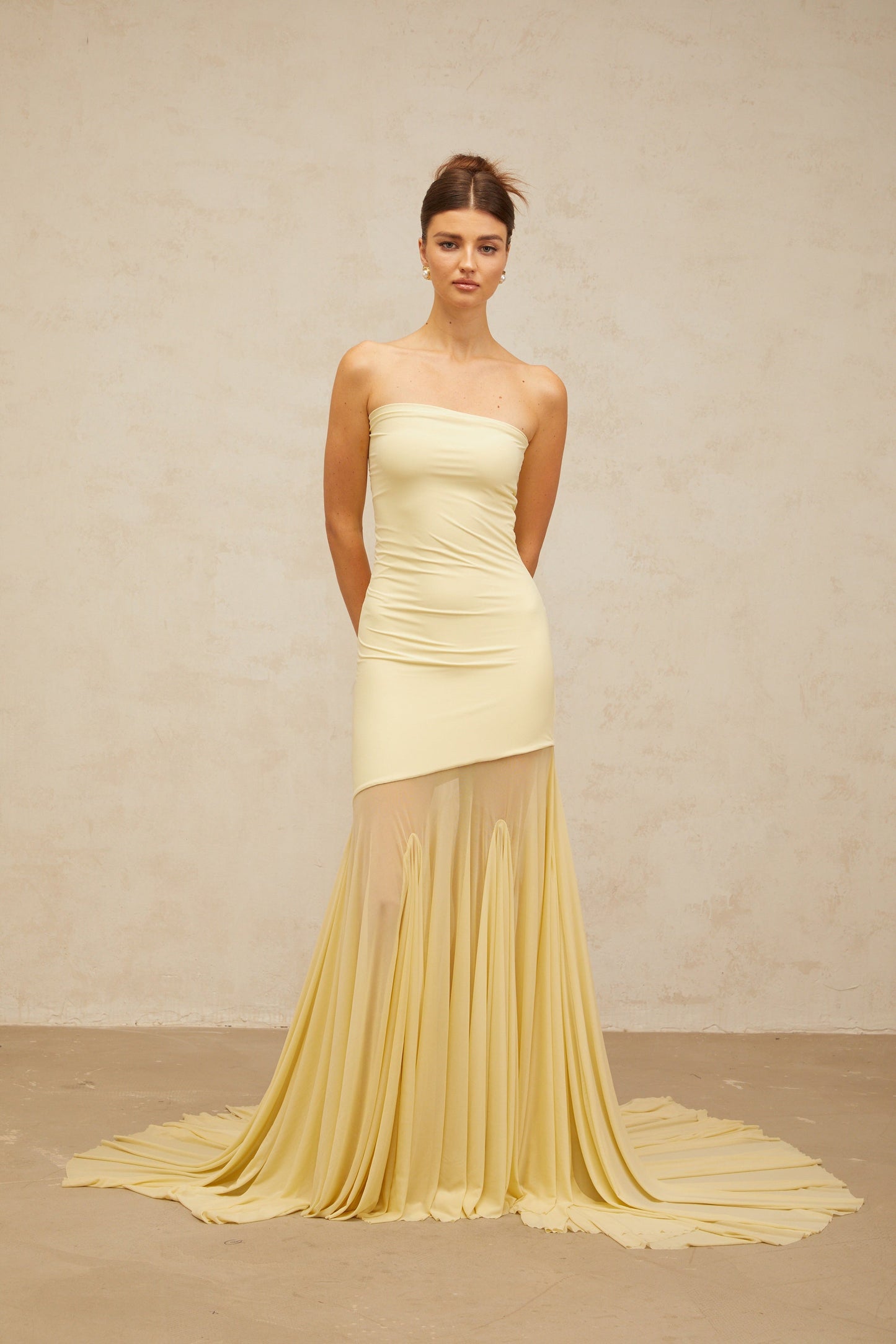 Josiane yellow off-shoulder sheer tulle maxi dress