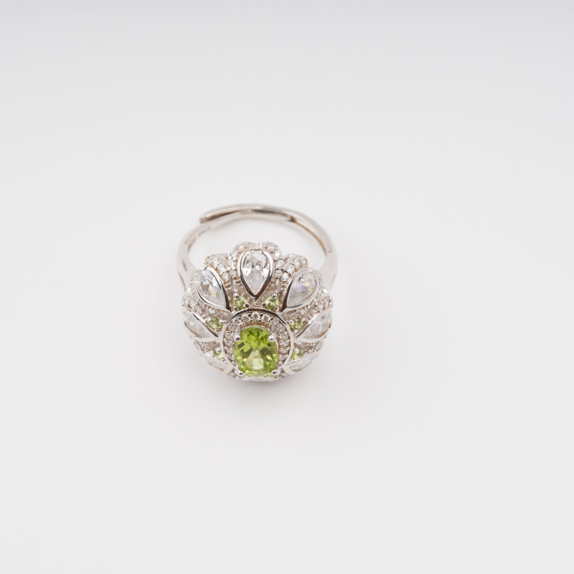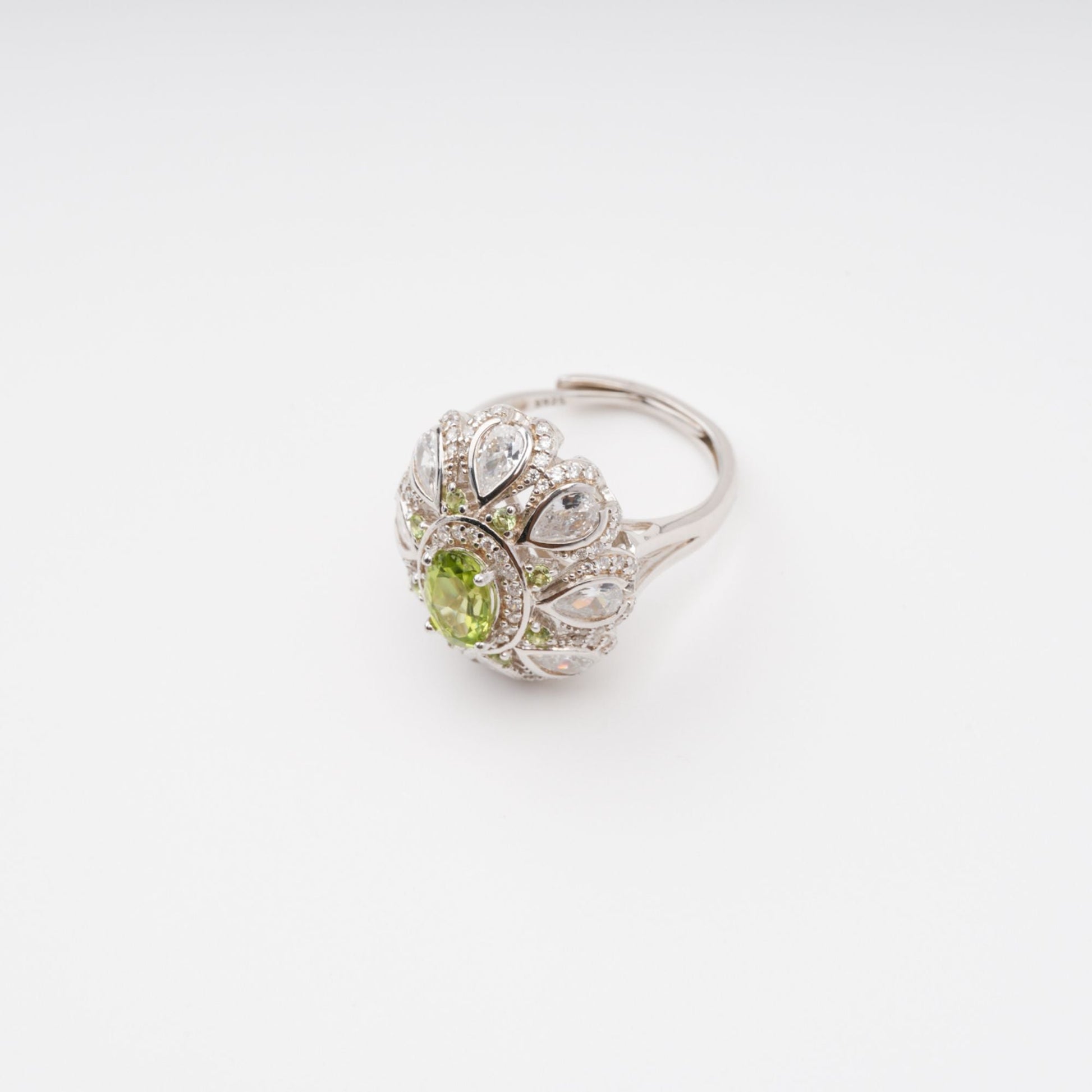 Joyau Olive Green Oval Gemstone Sterling Silver Ring