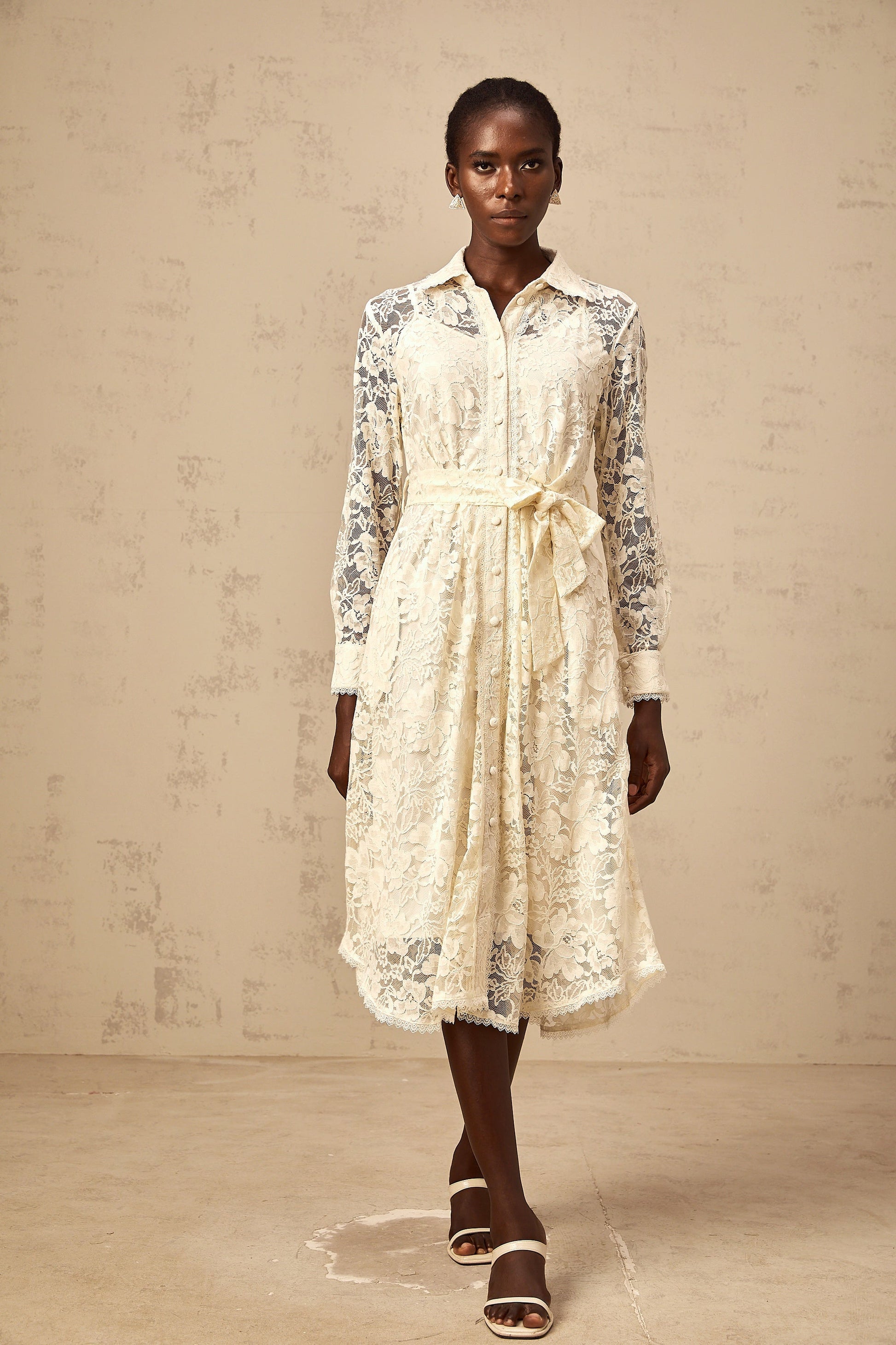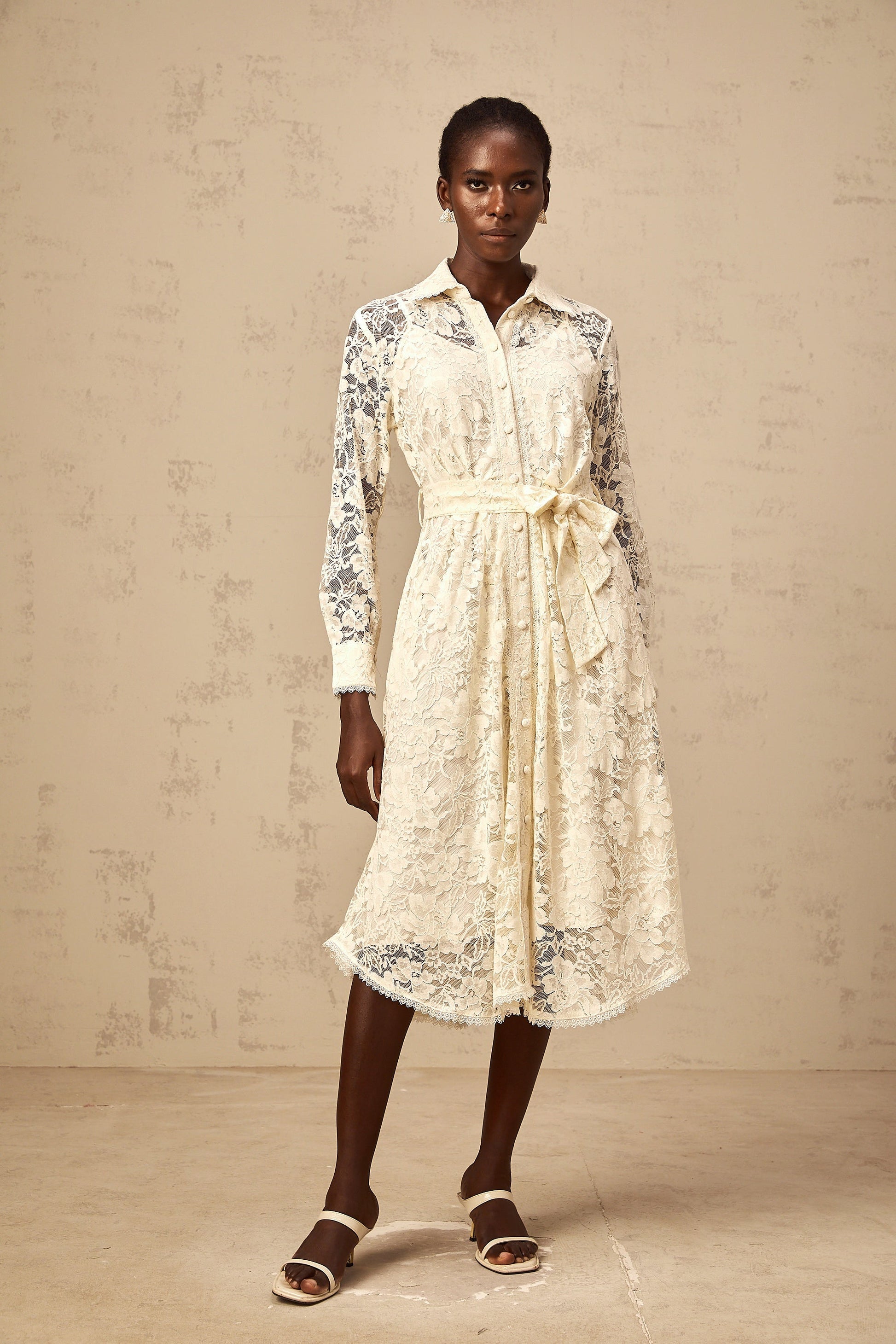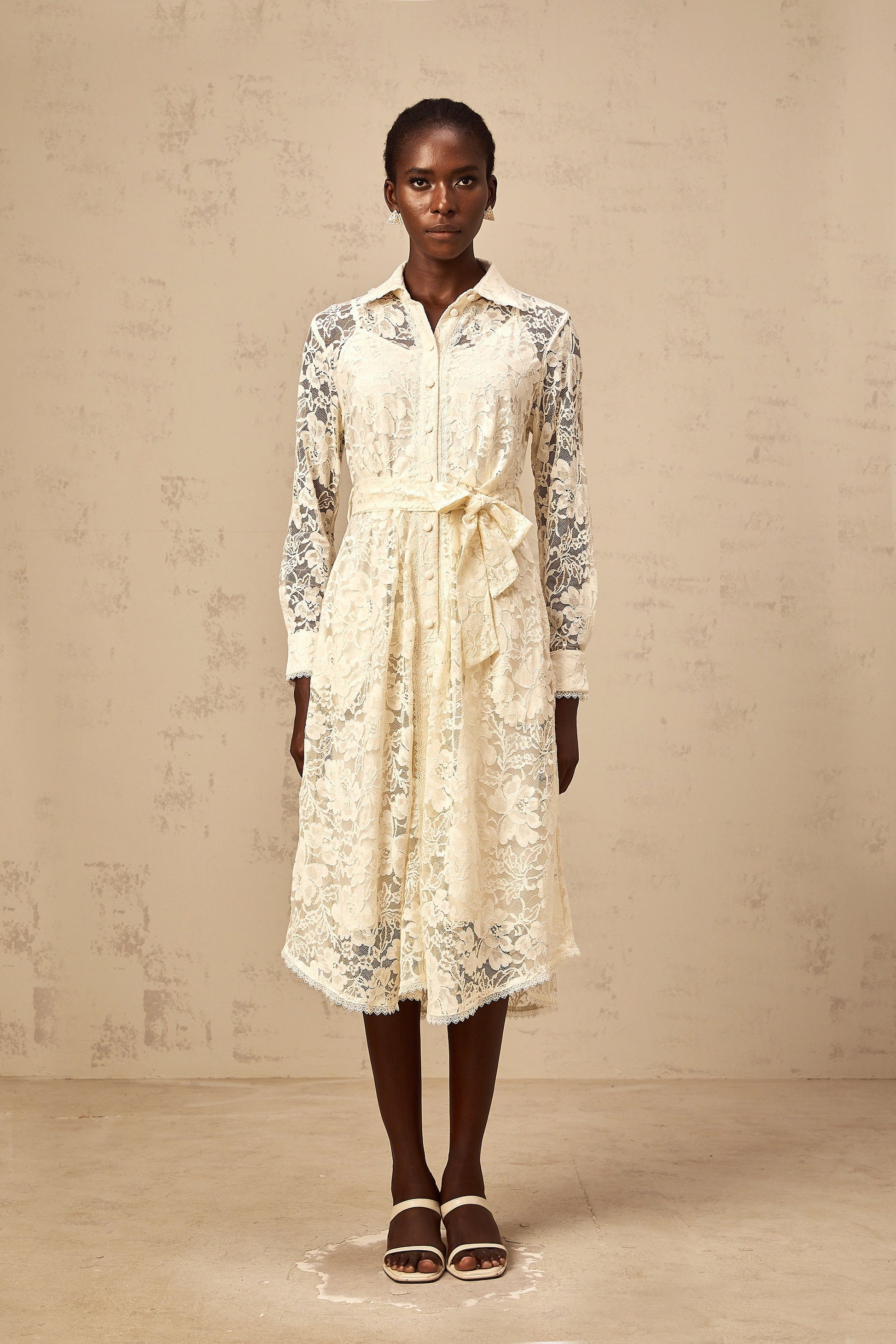 Juliette neutrals guipure-lace midi shirt dress