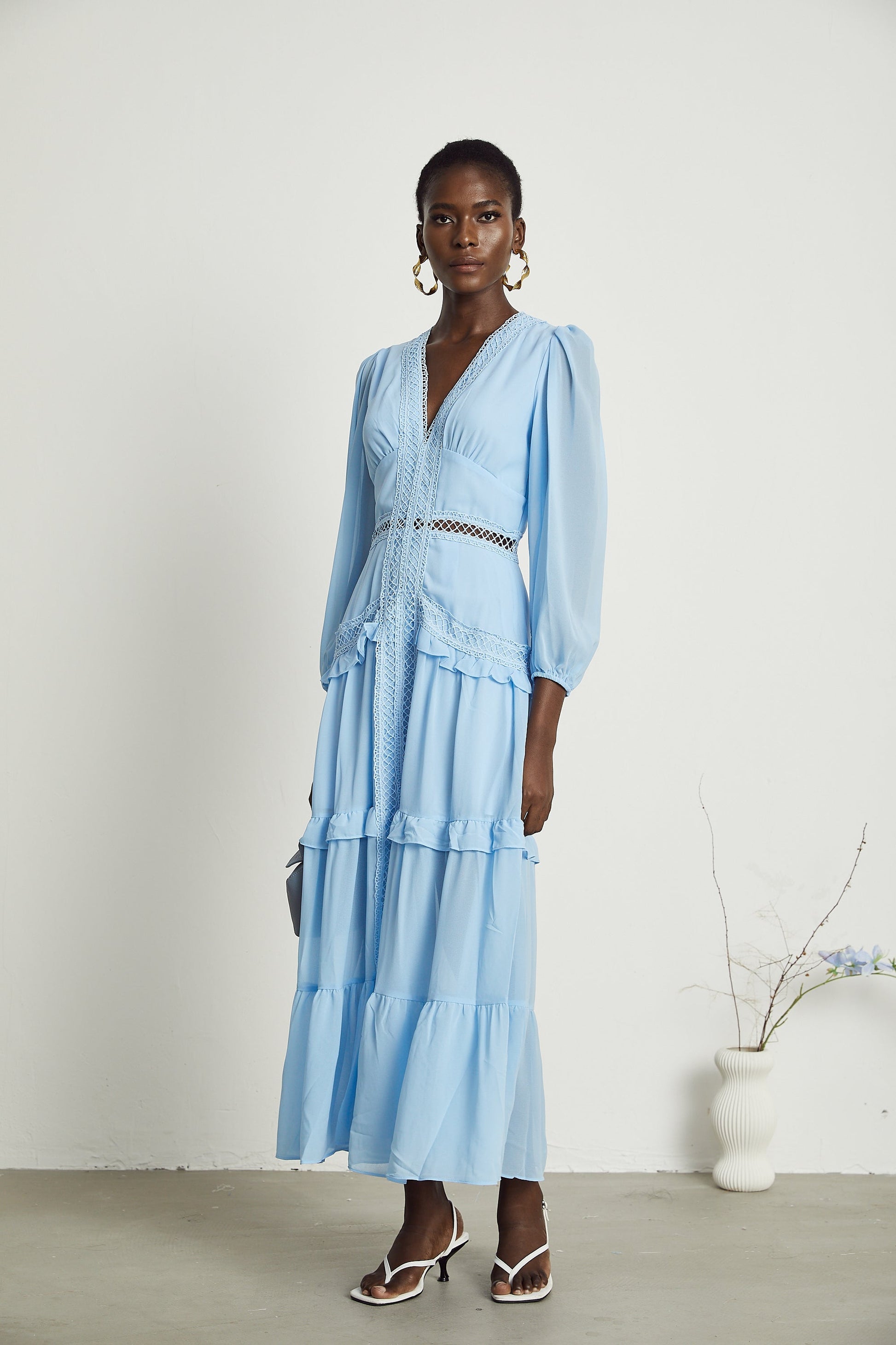 Juno cut-out ruffled maxi dress in Blue