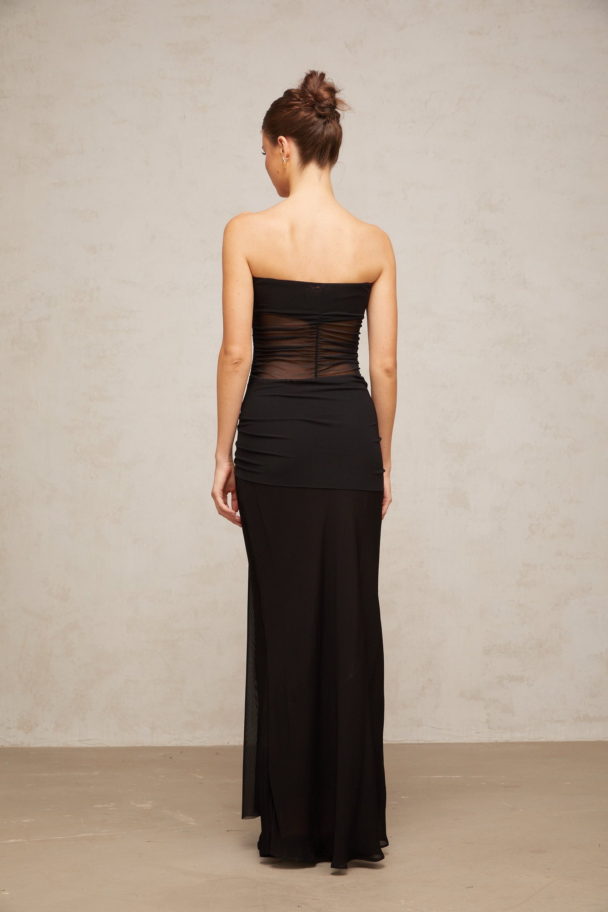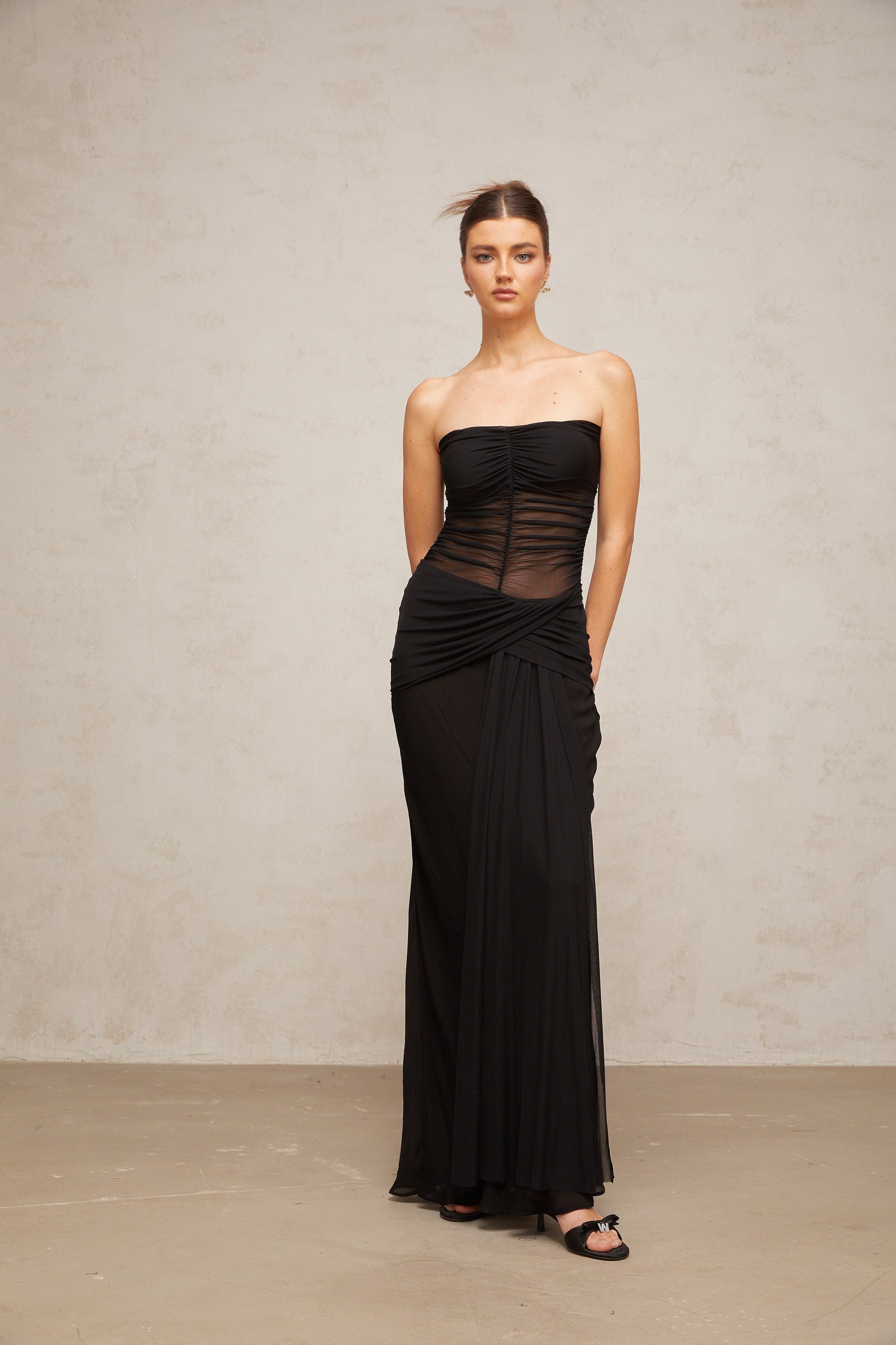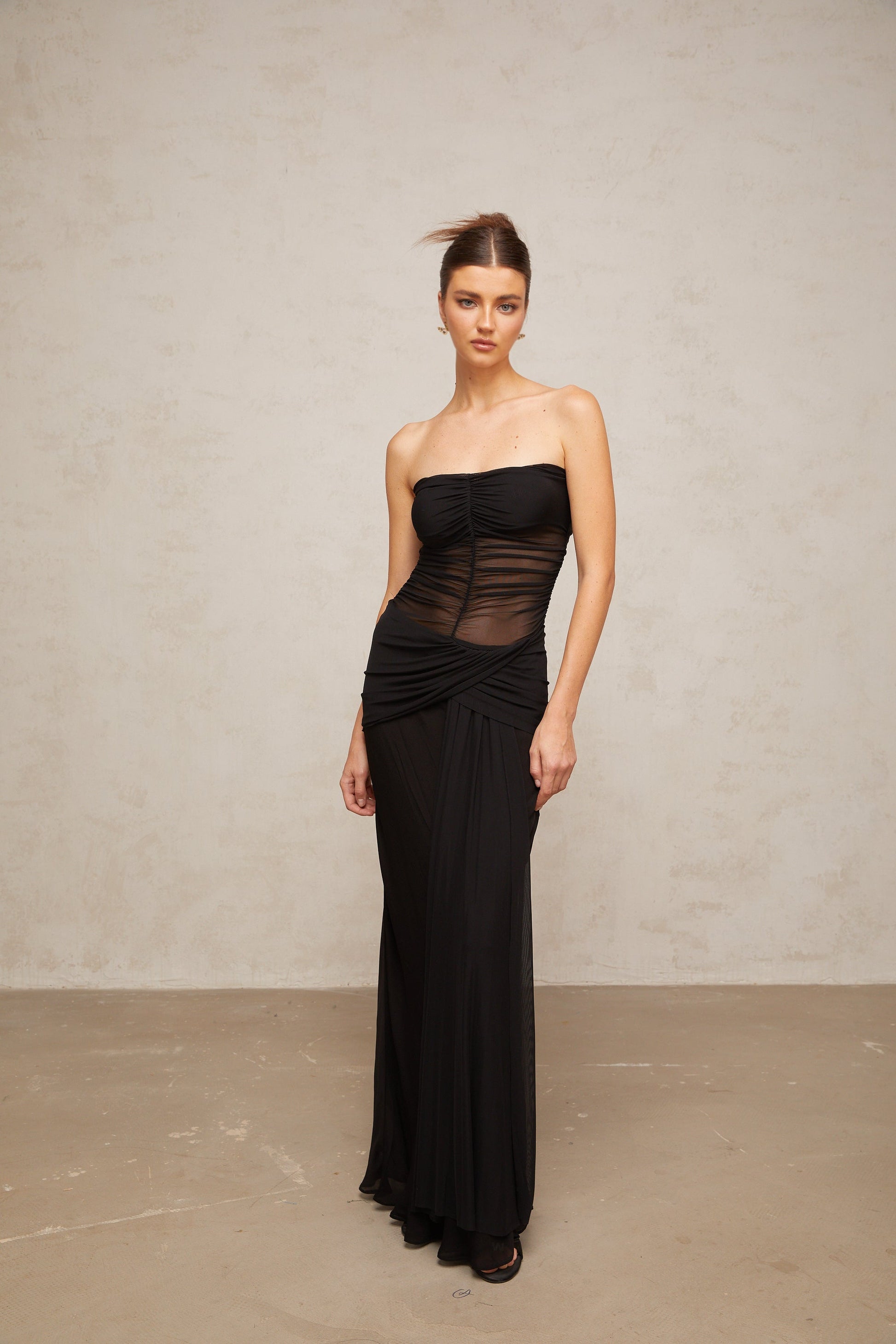 Justine black semi-sheer pleated tulle maxi dress