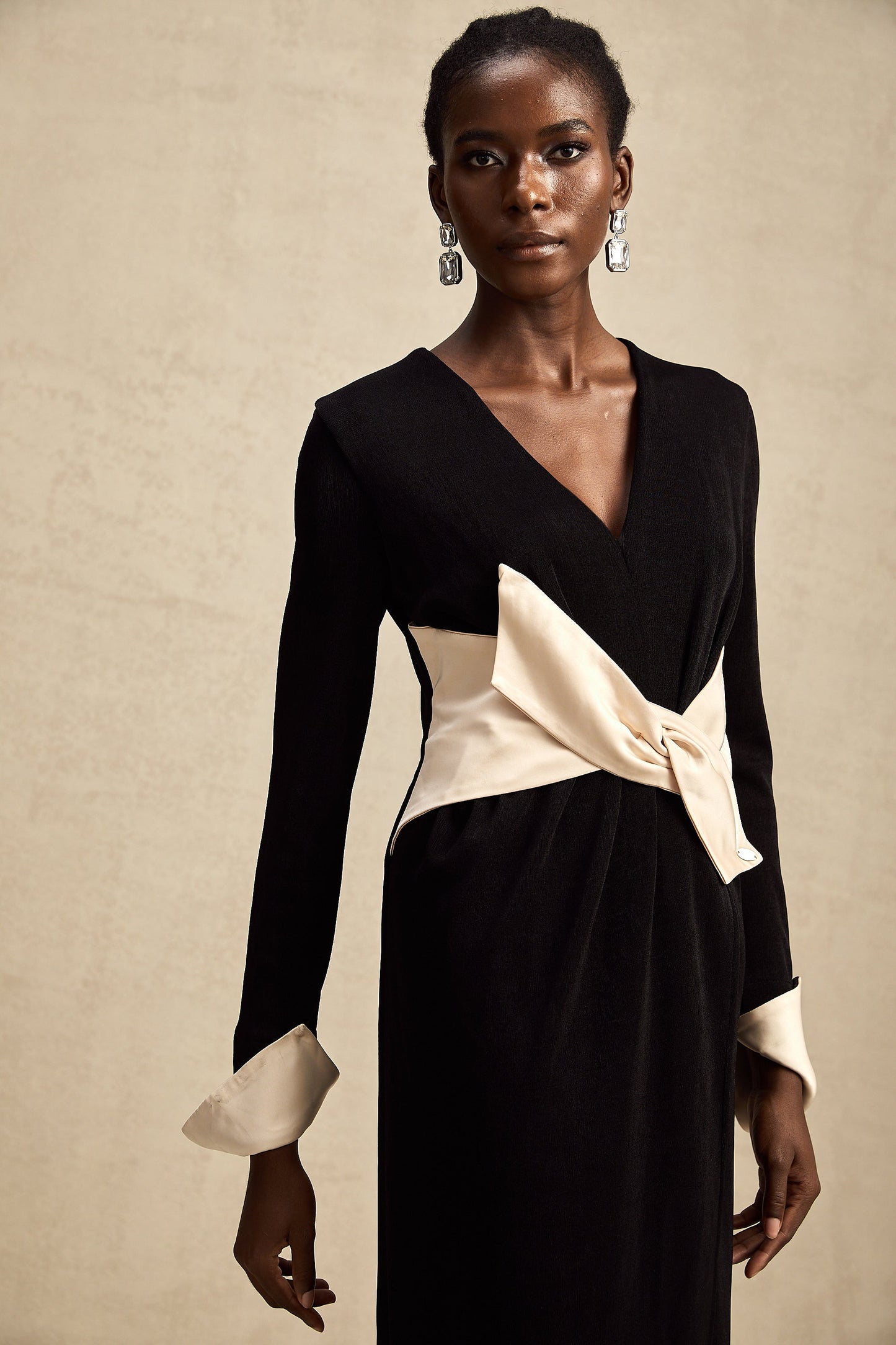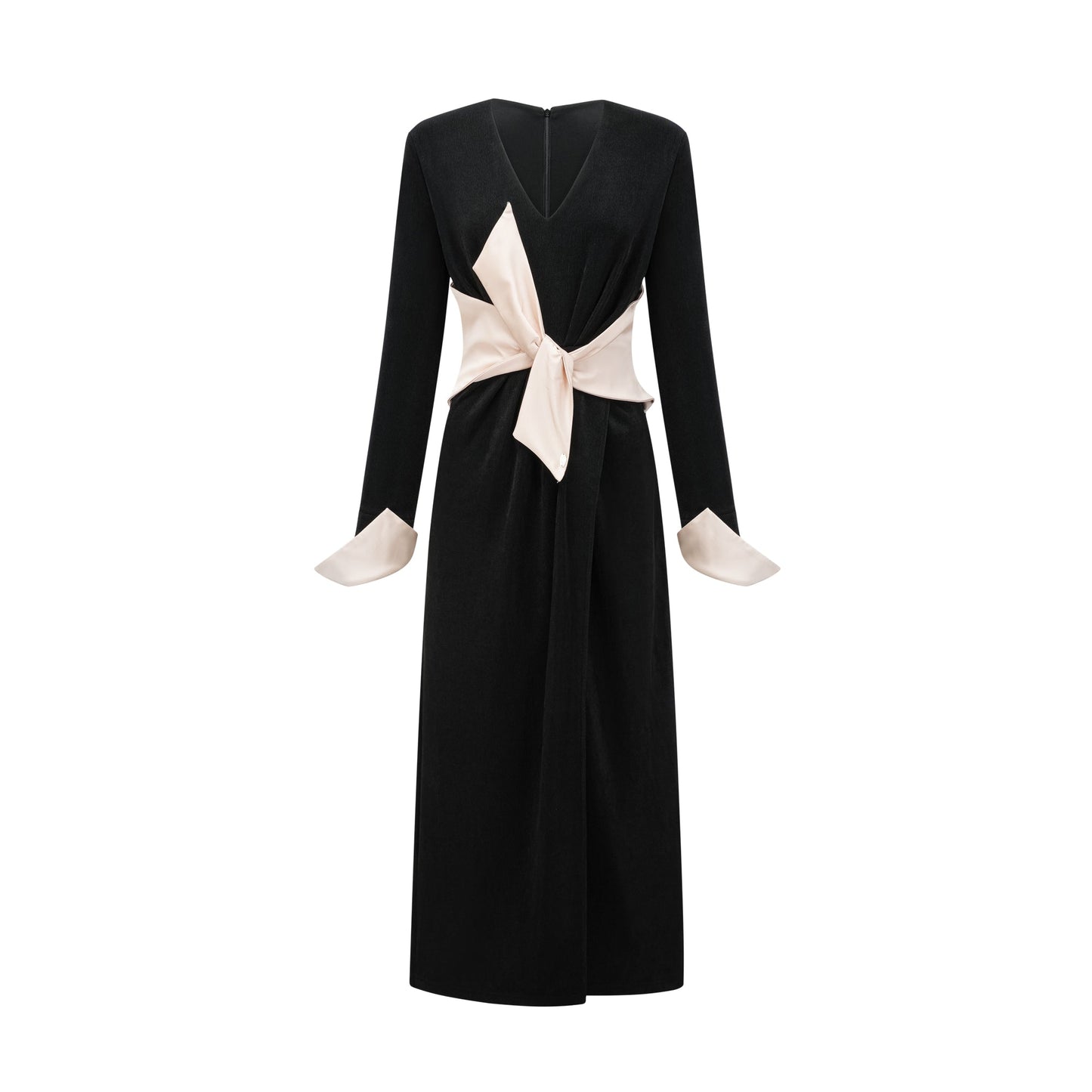 Karine contrast-color bowknot v-neck maxi dress