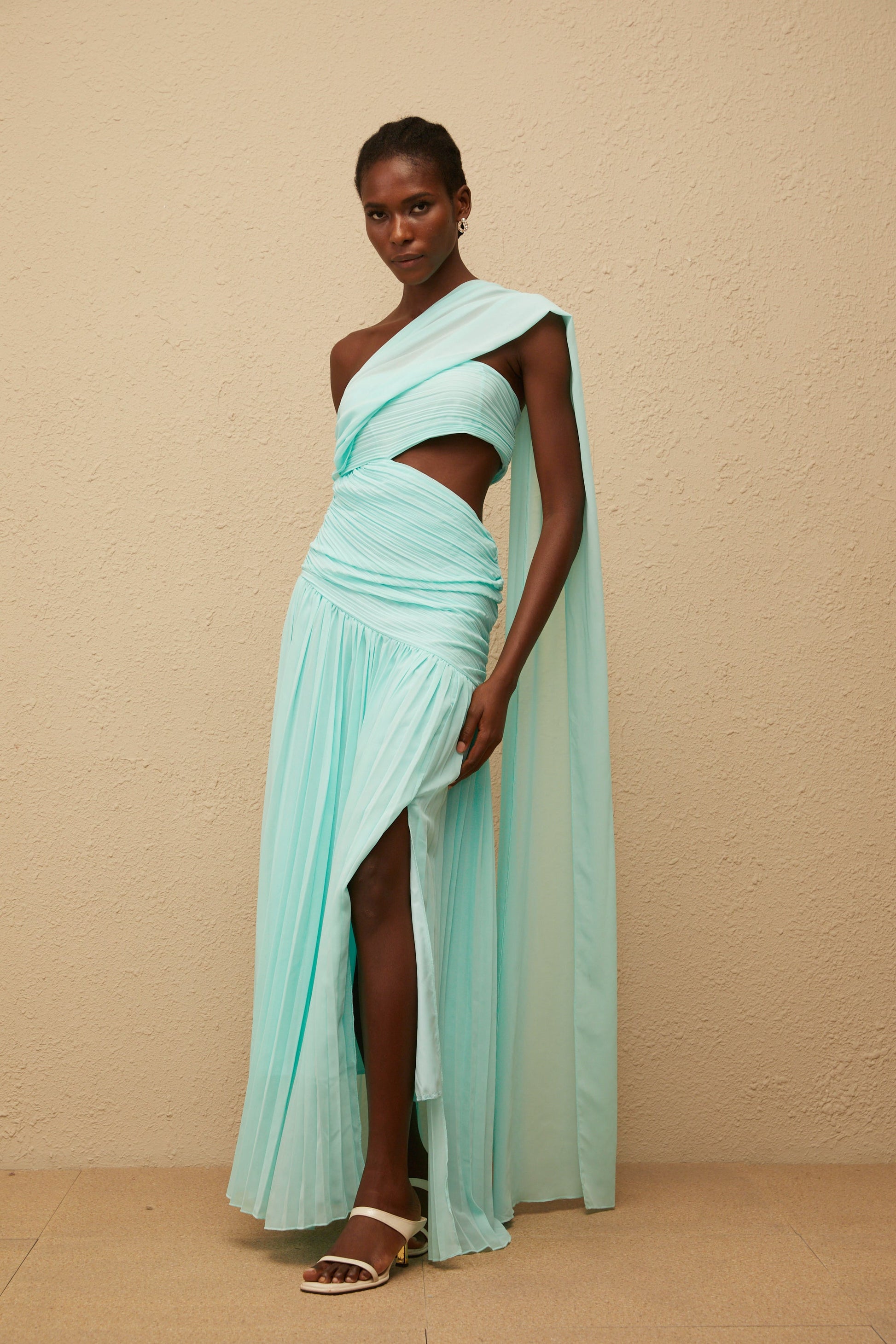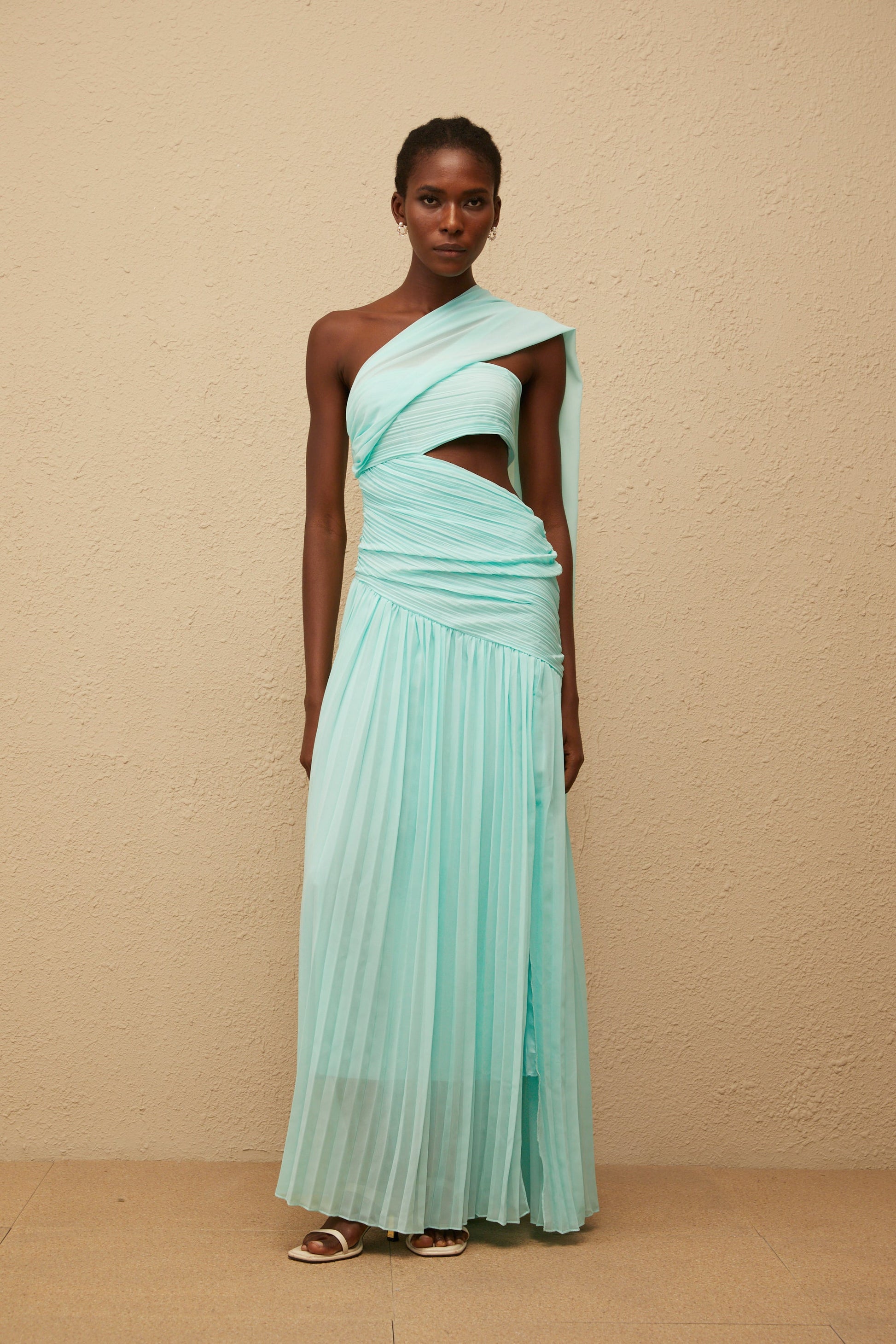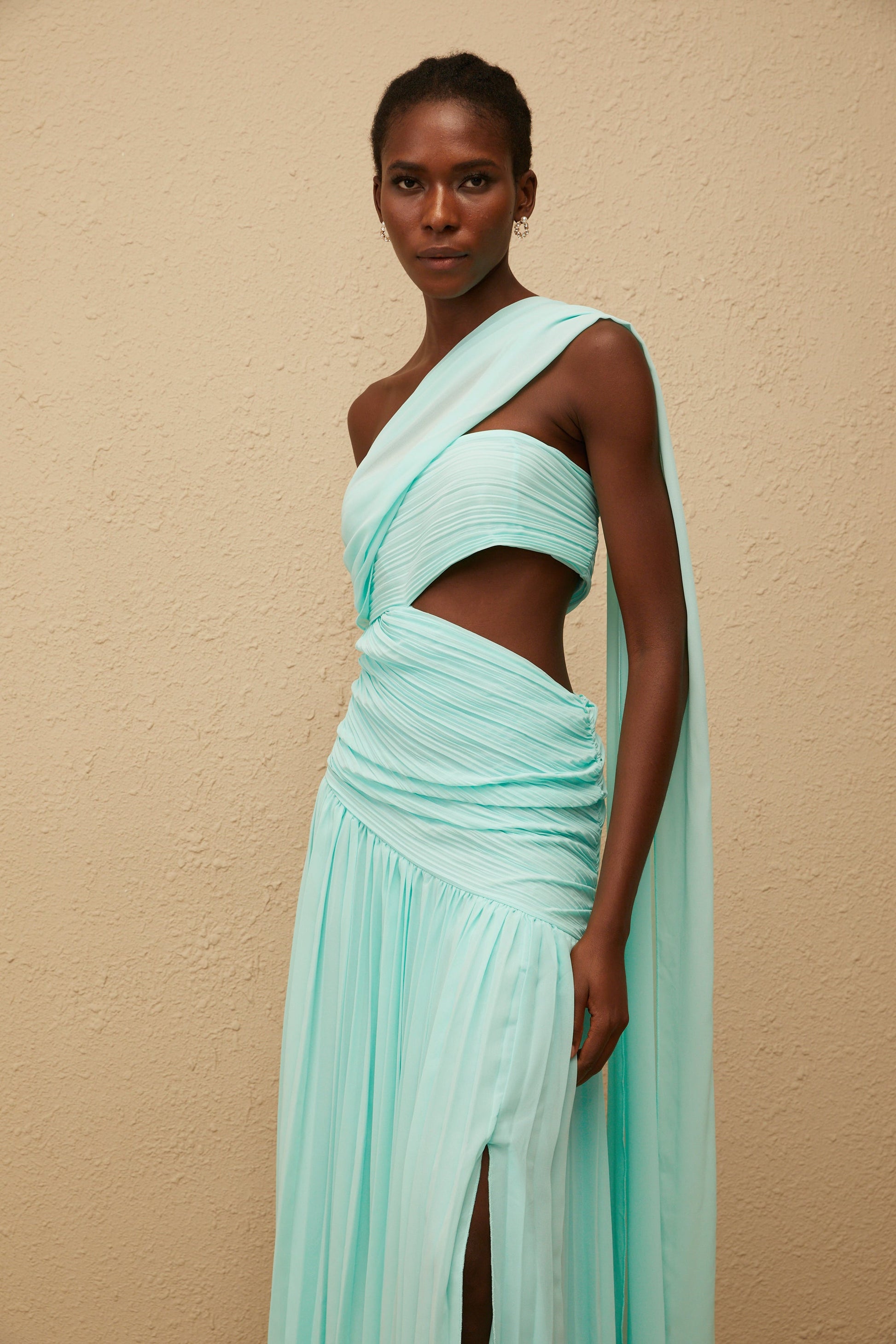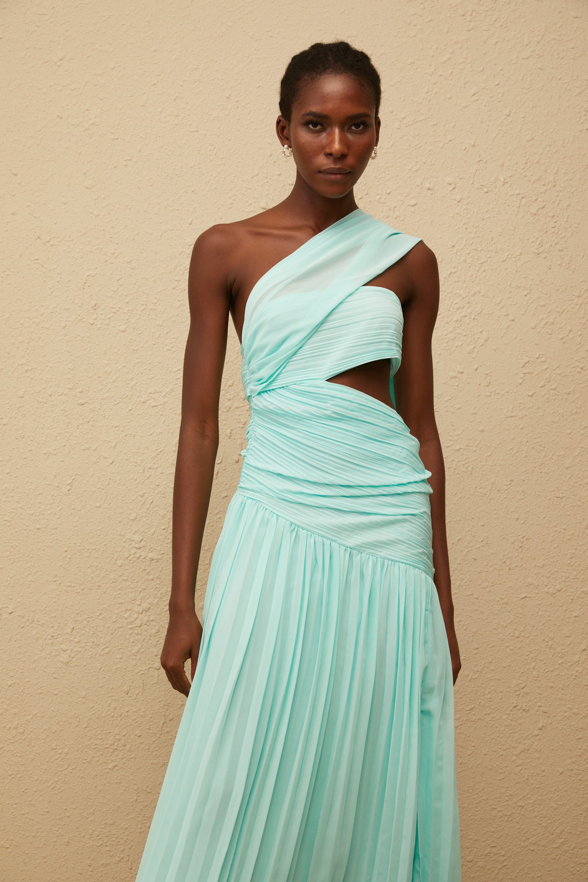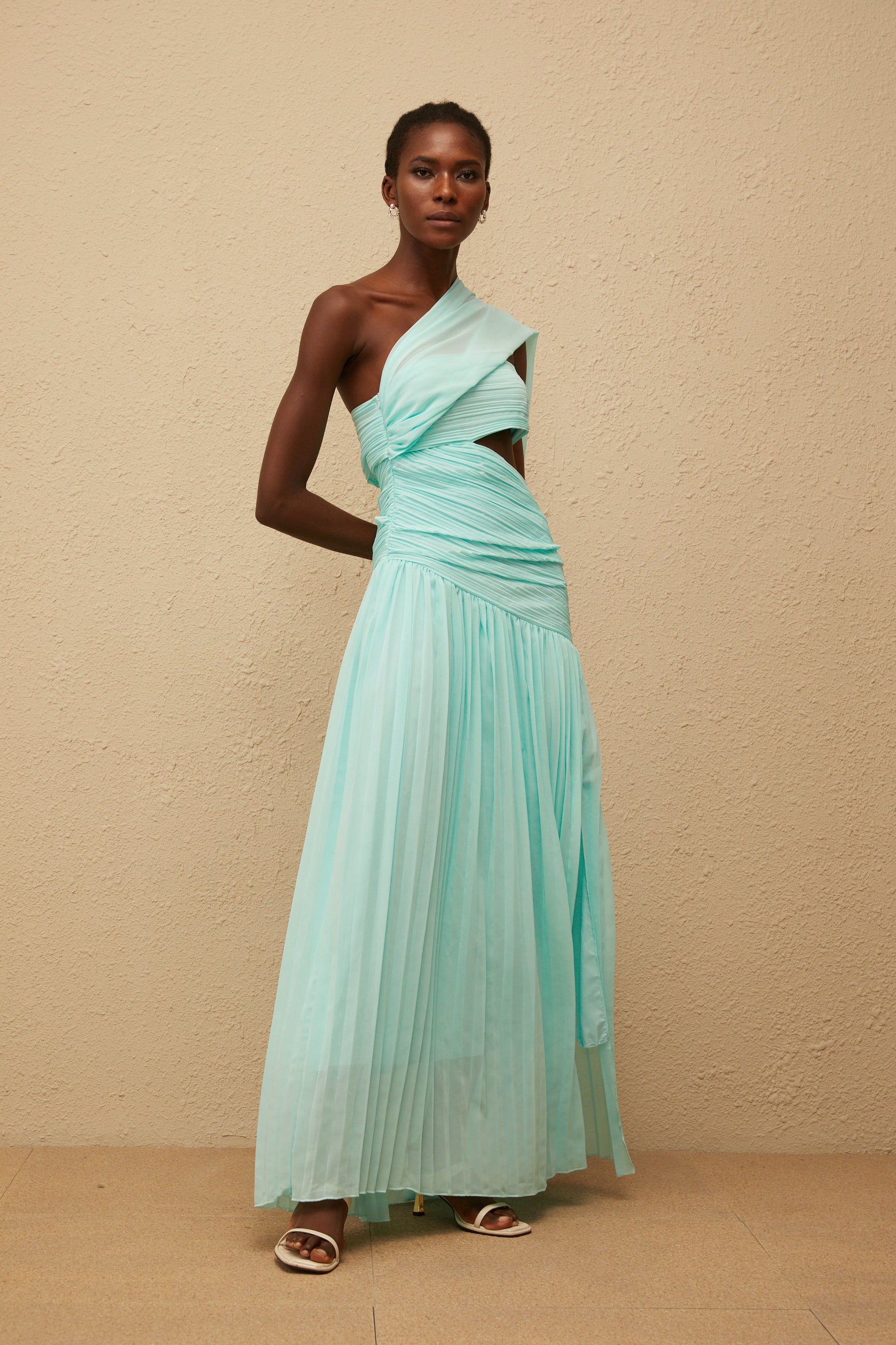 Katerina Mint Green Asymmetrical Pleated Maxi Dress