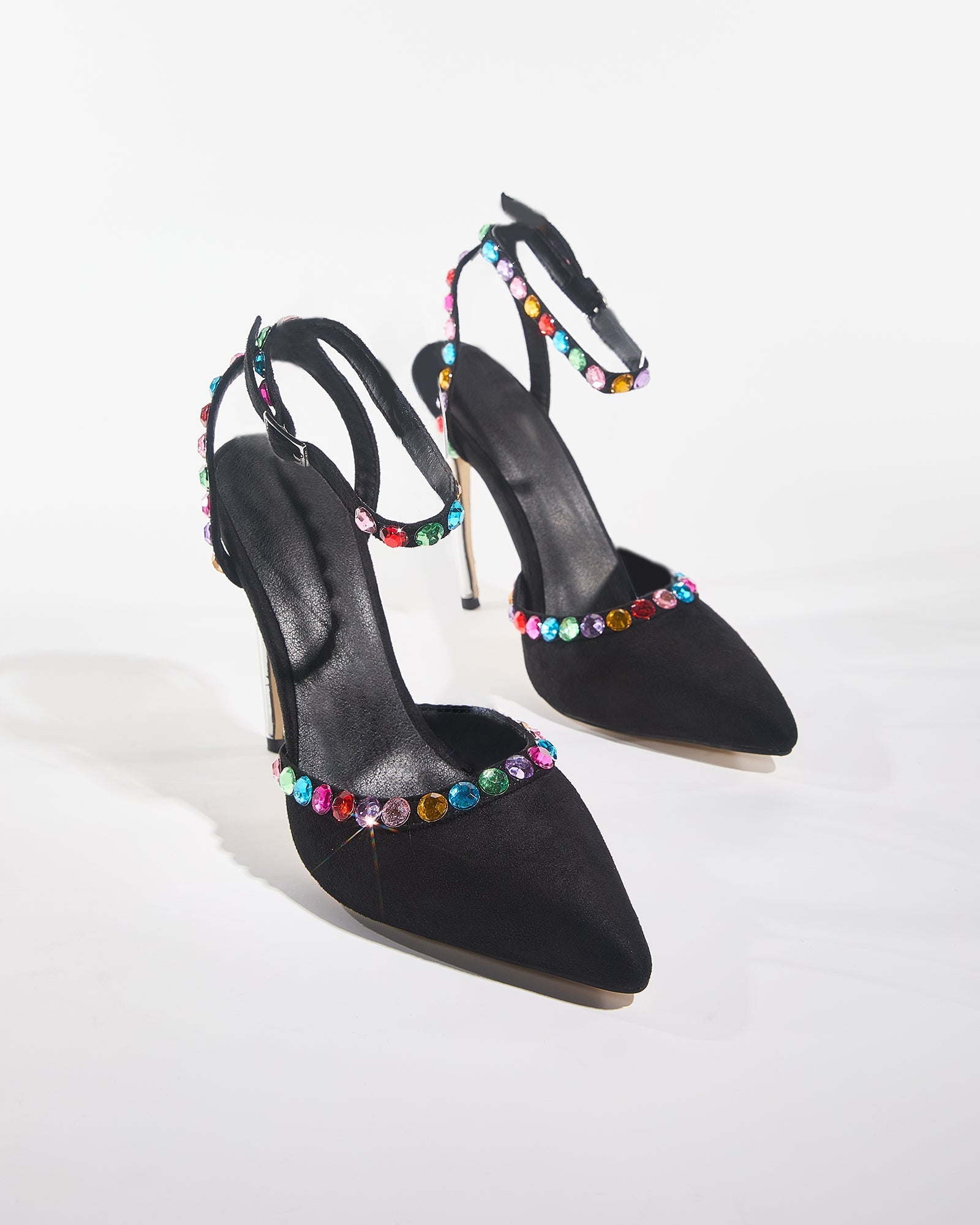 Kaya Rainbow Rhinestone Strap Pumps In Black