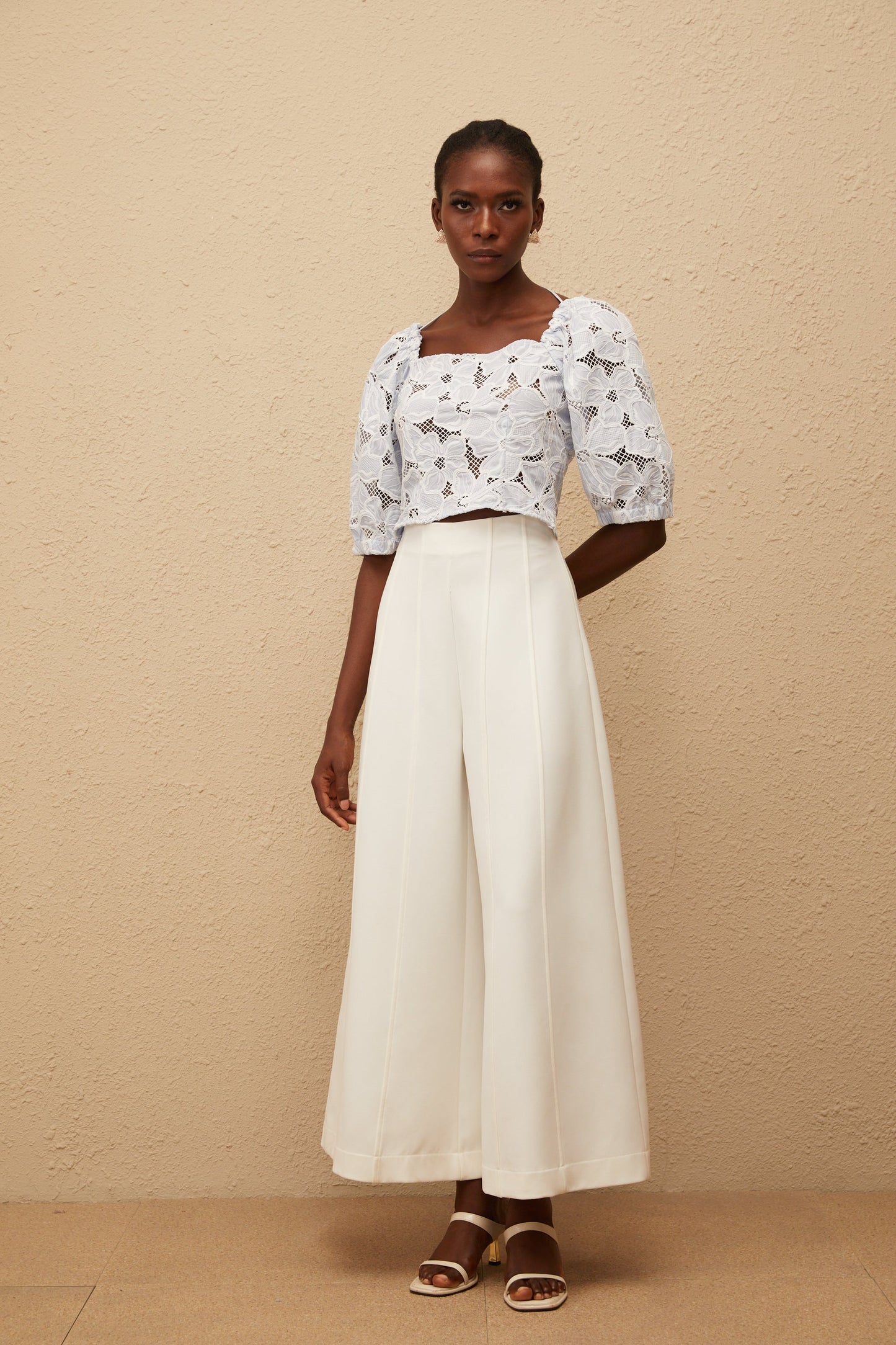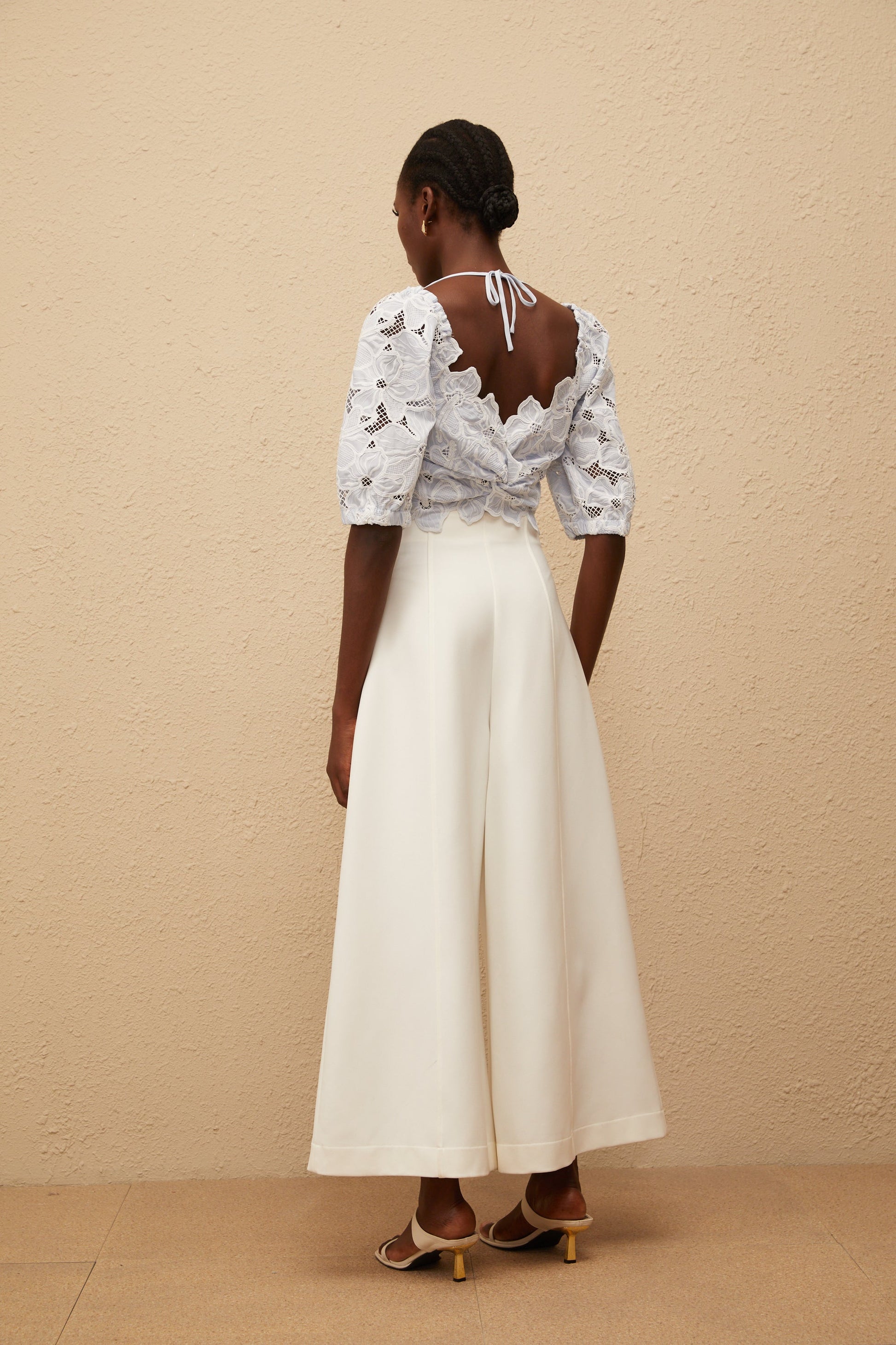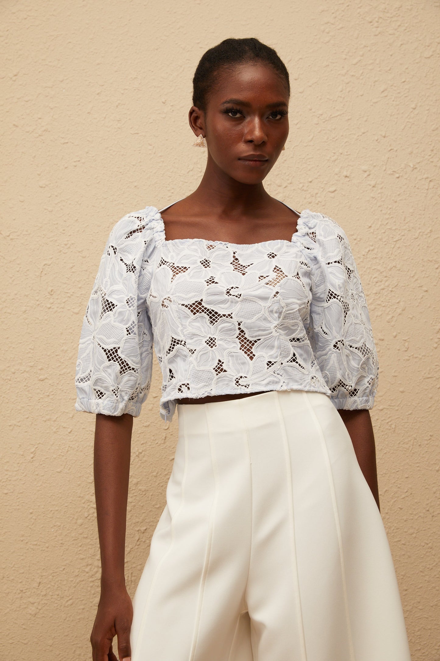Kirsti Blue Crochet Floral Jacquard Crop Top