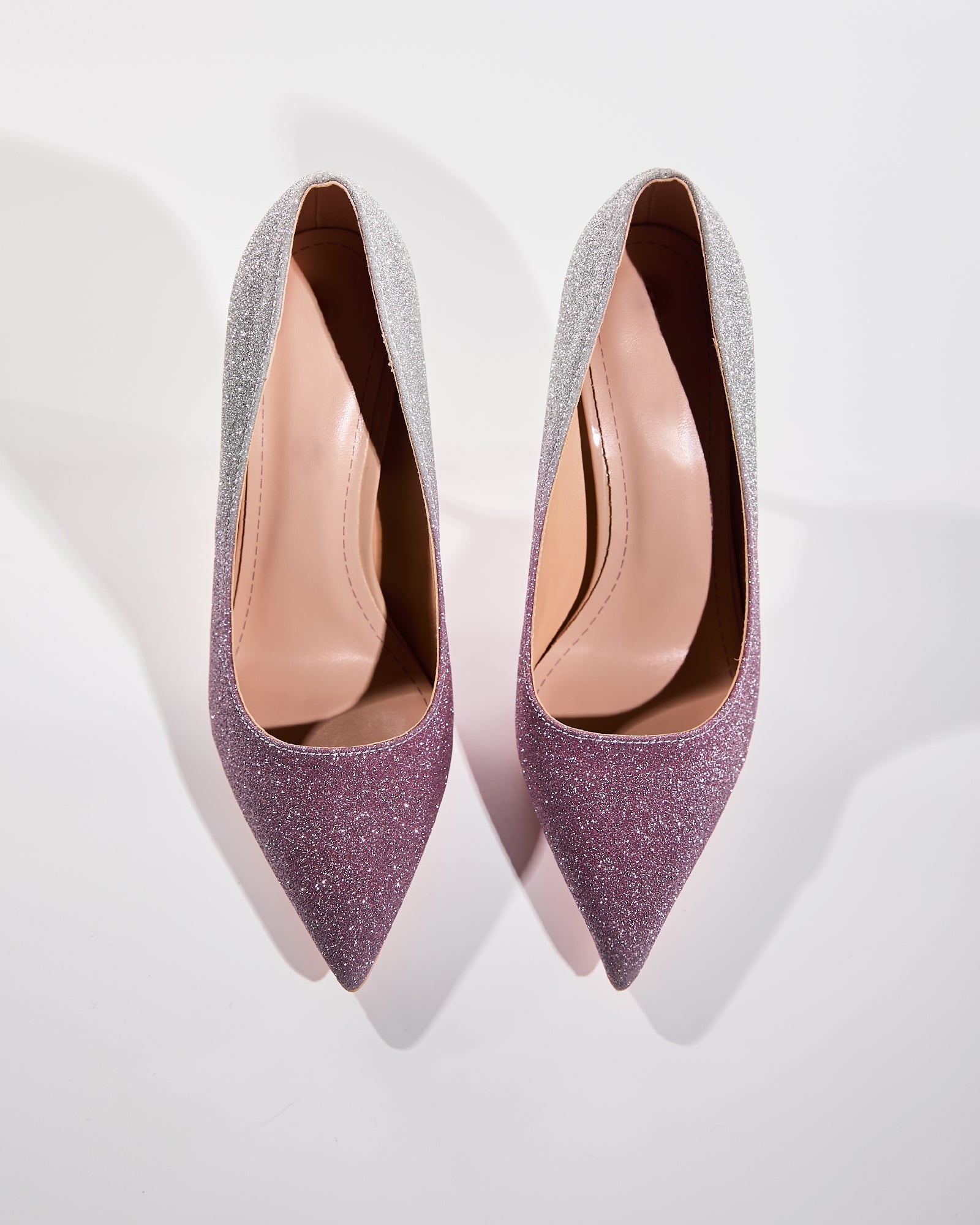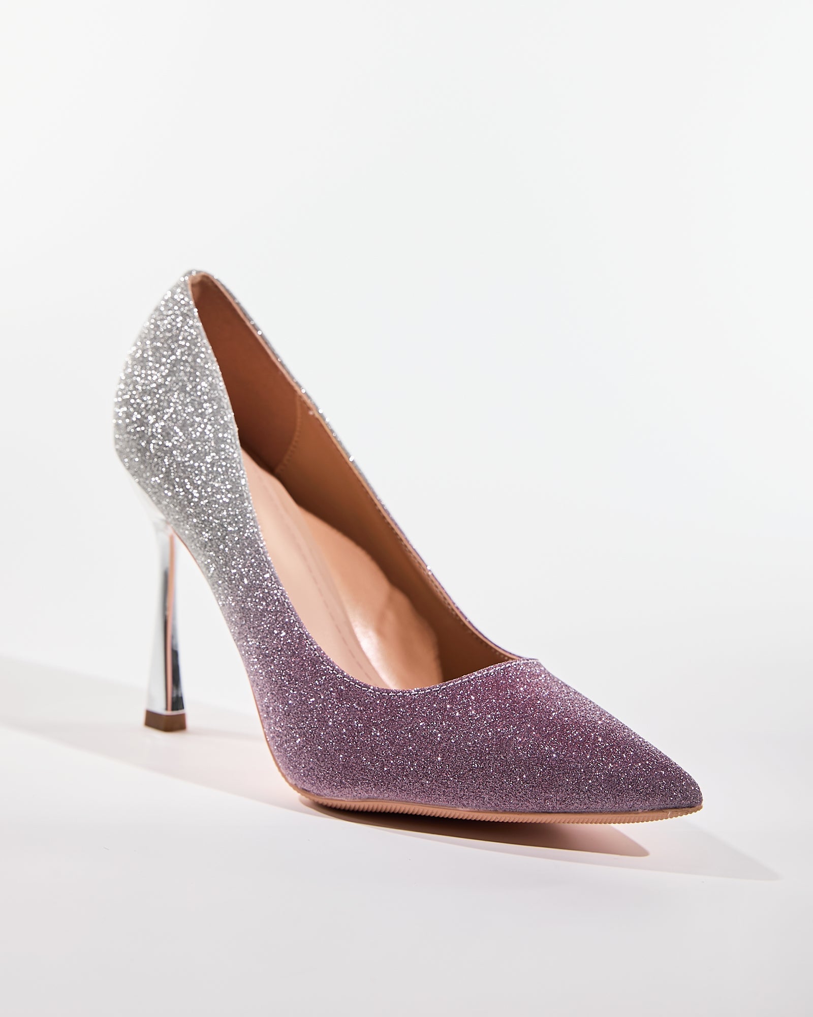 Step out in style with our Kylie Sparkle Pumps In Ombre! These pumps feature a stunning ombre design that will add a touch of glamour to any outfit. The sparkling finish will catch everyone's eye, making you the center of attention. Elevate your look and feel confident with these gorgeous pumps!
