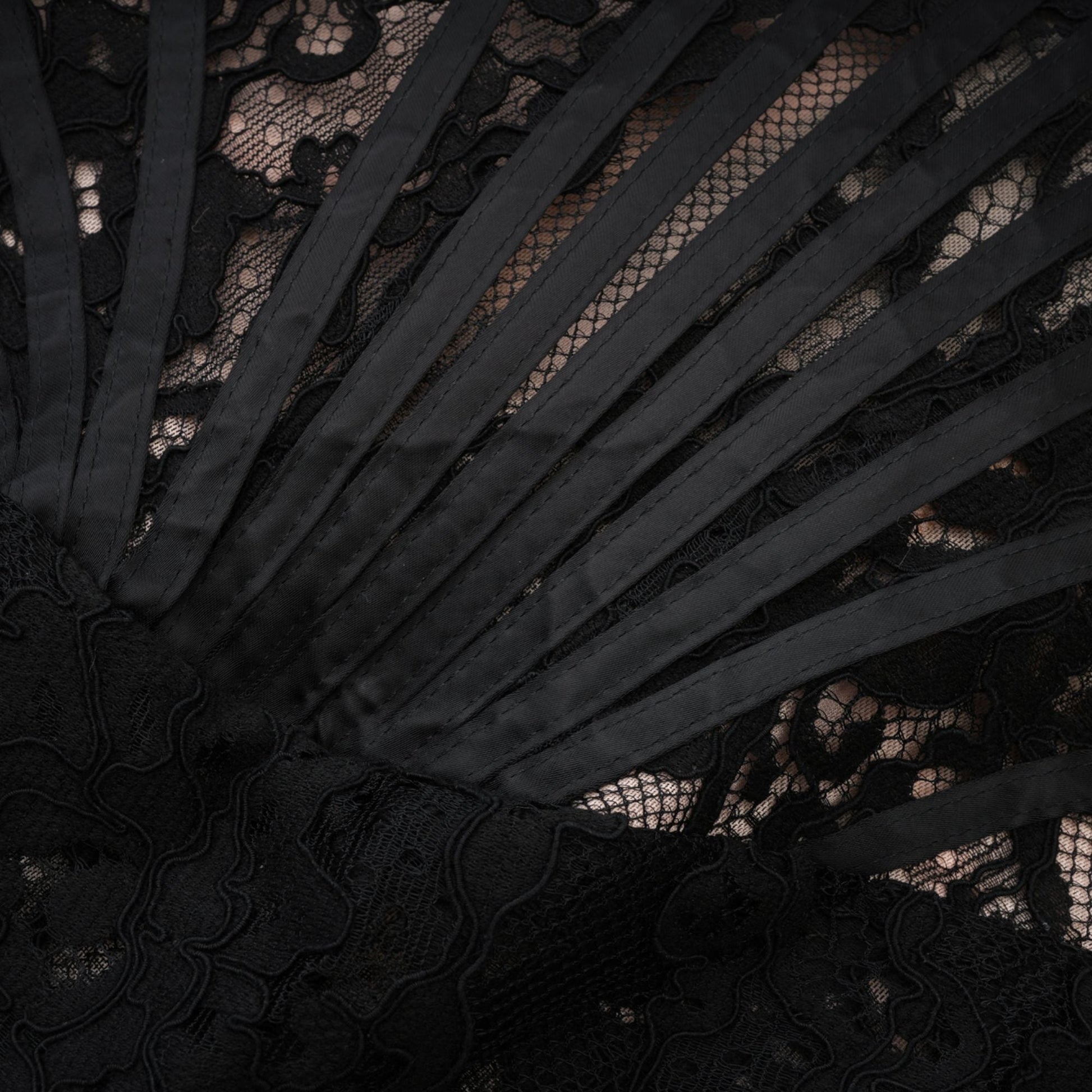 Kylitha black lace ribbon mini dress