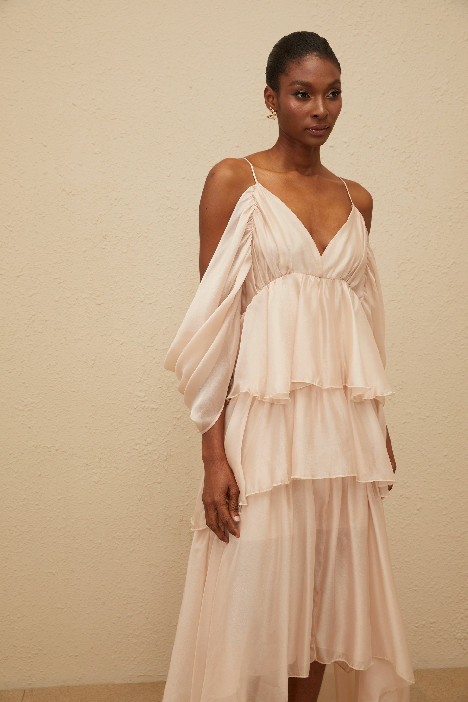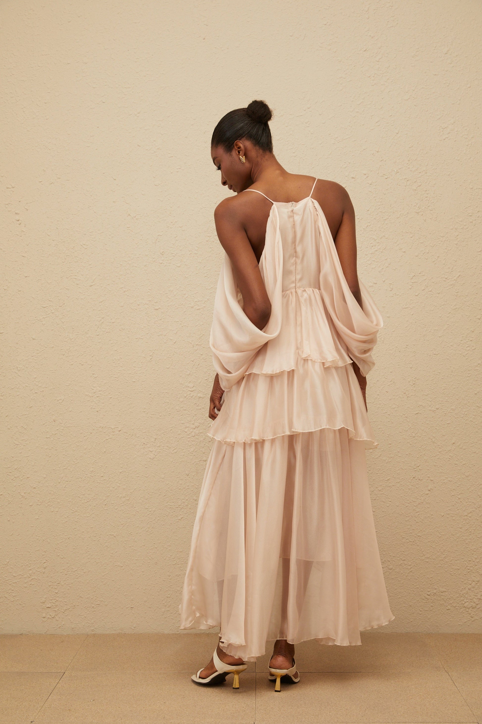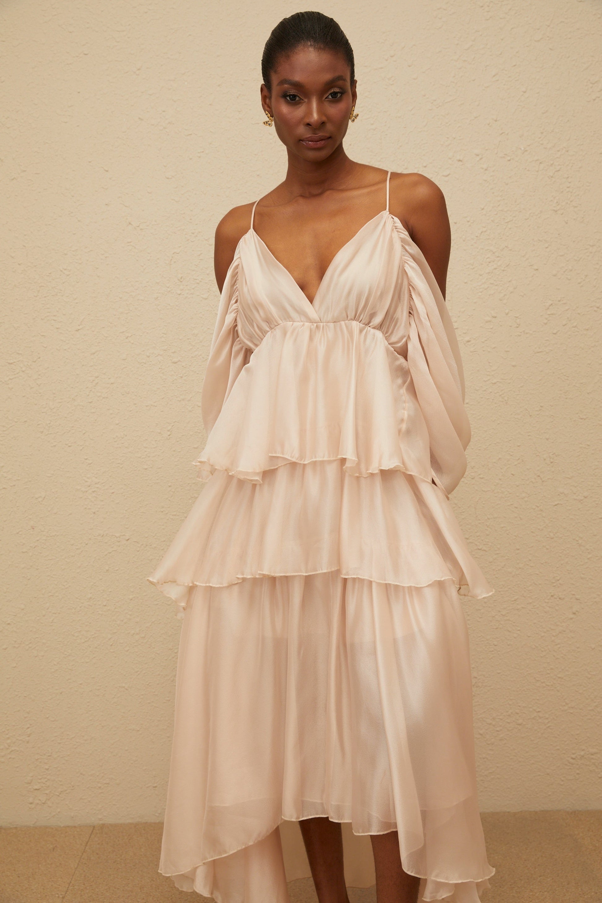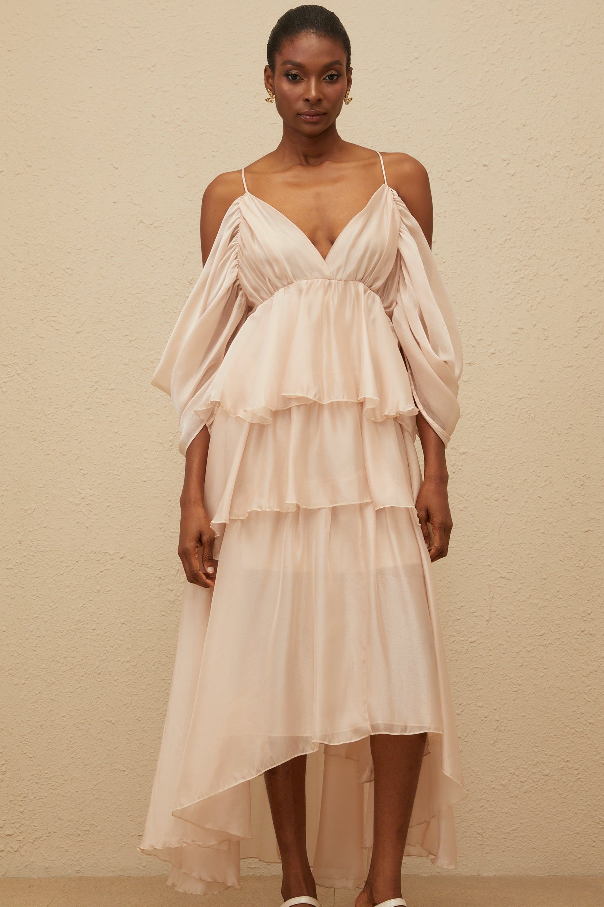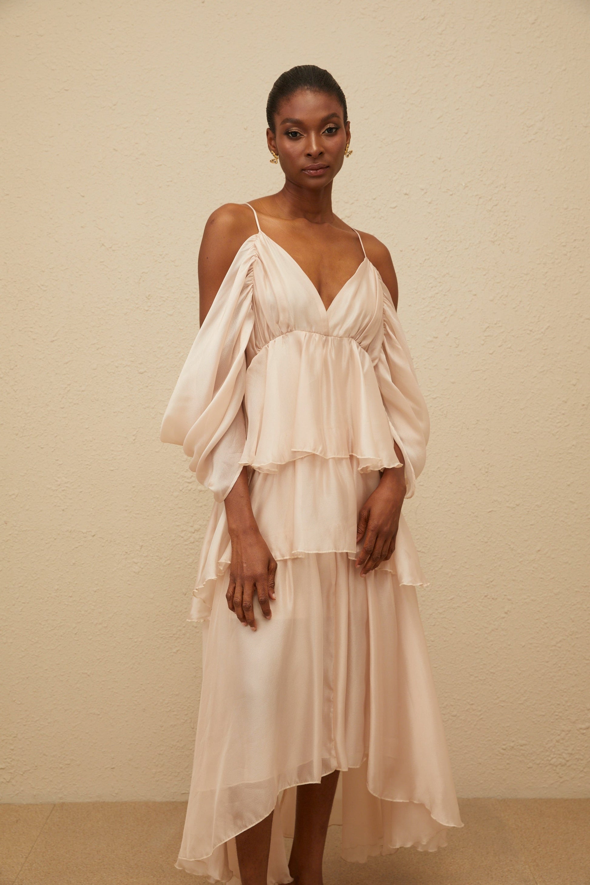 Laurine Asymmetrical Ruffled Tiered Midi Dress