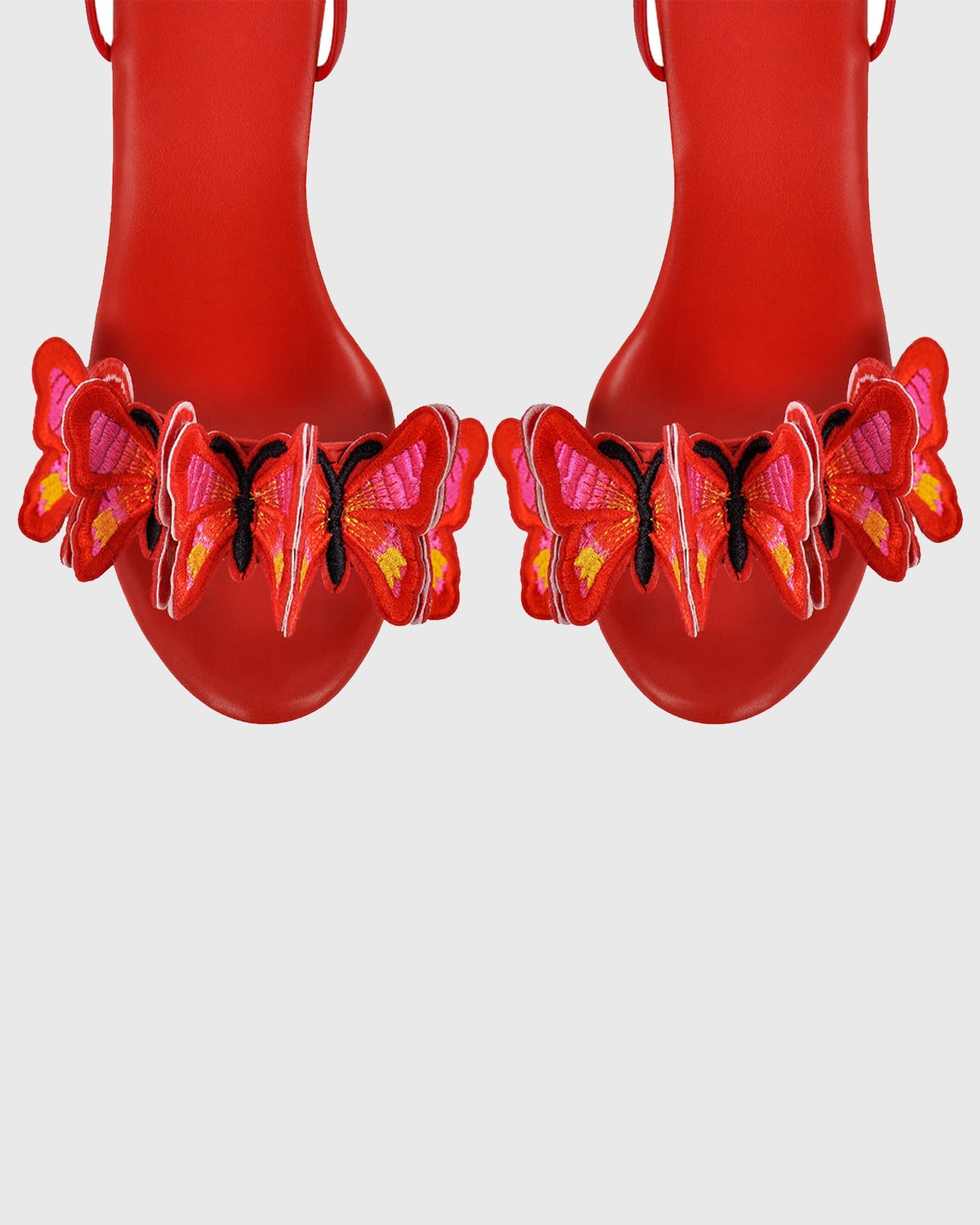 Lelia Bow Embroidery Lace Up Platform Sandals In Red