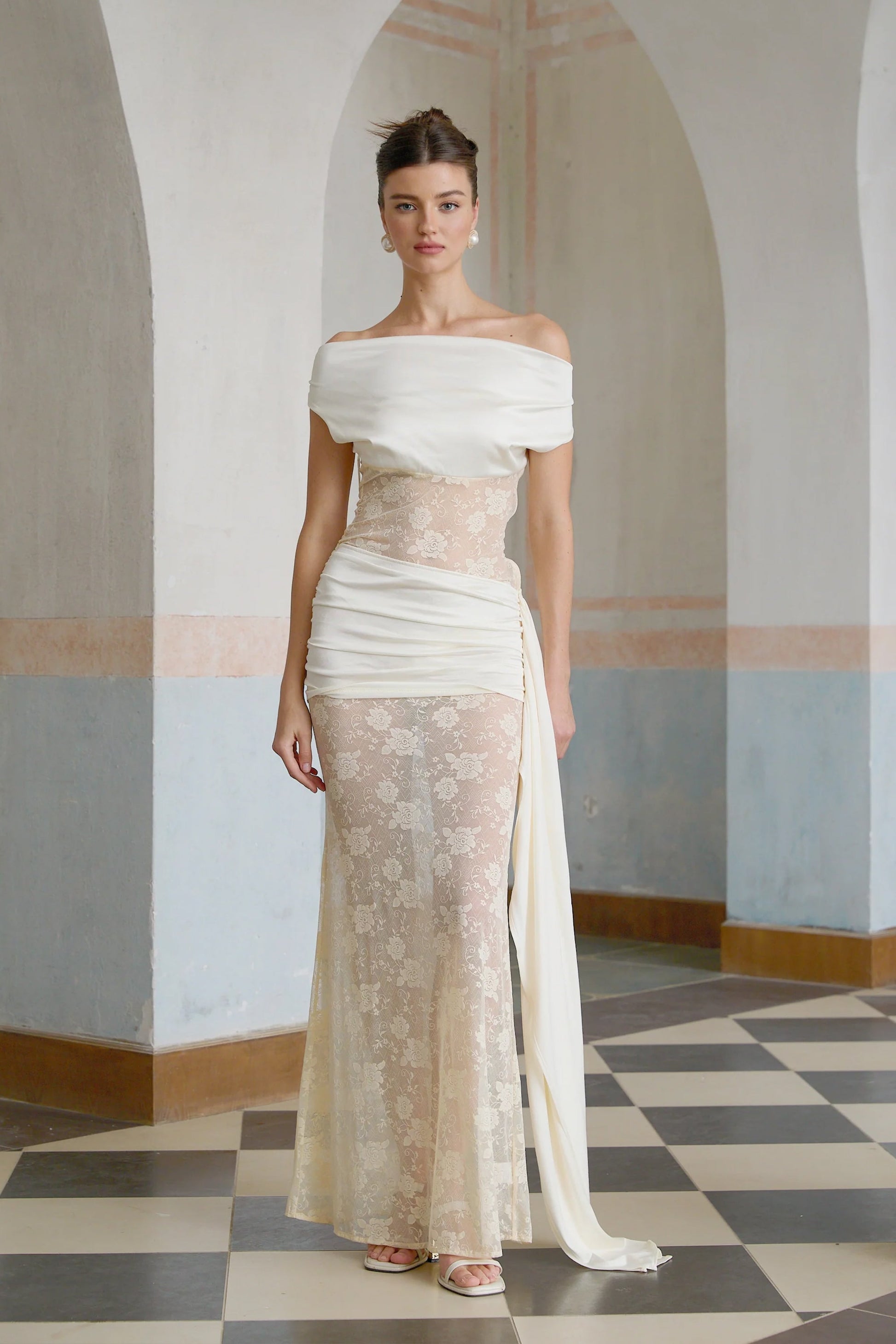 Lilou neutrals ribbon panelled floral-lace maxi dress
