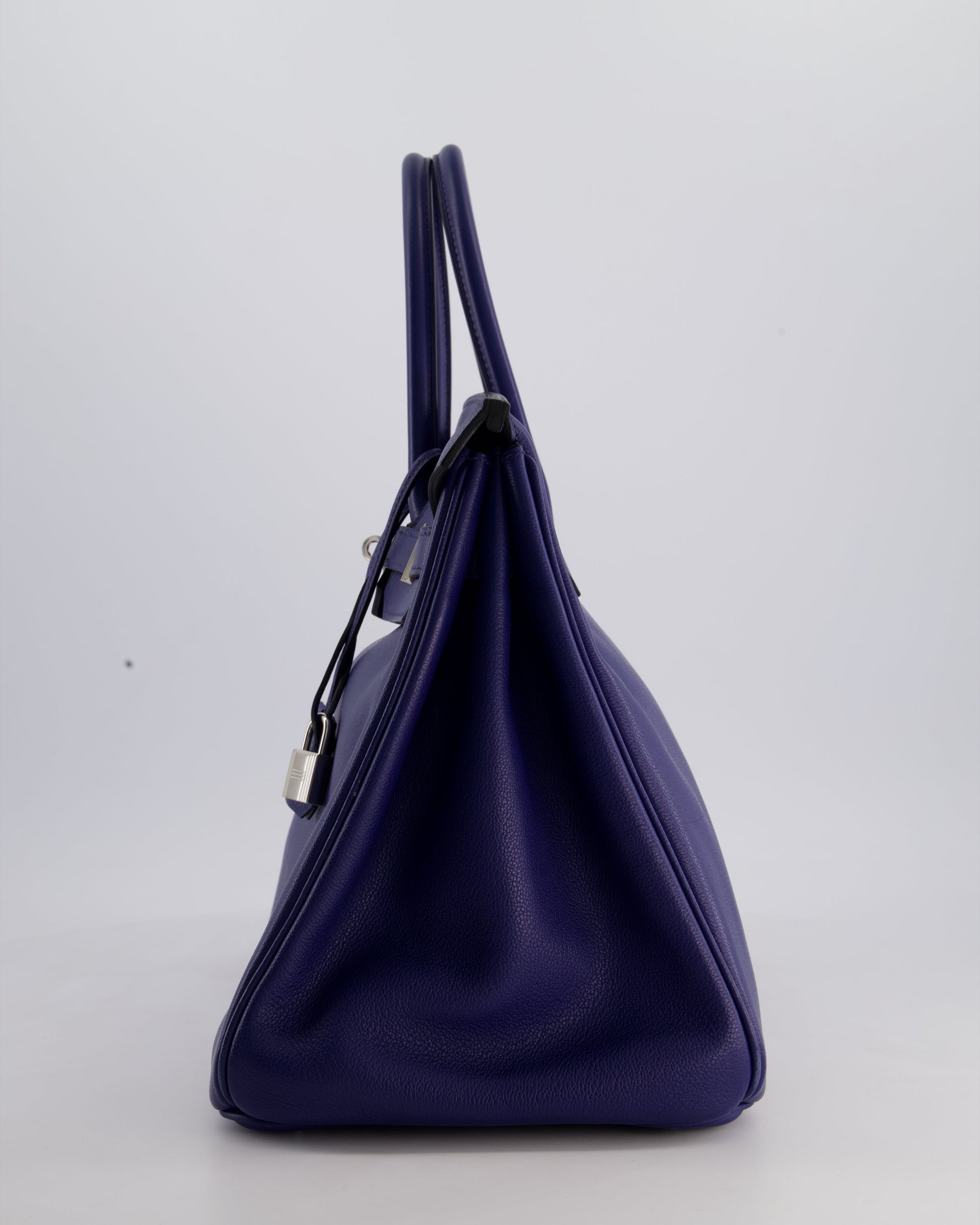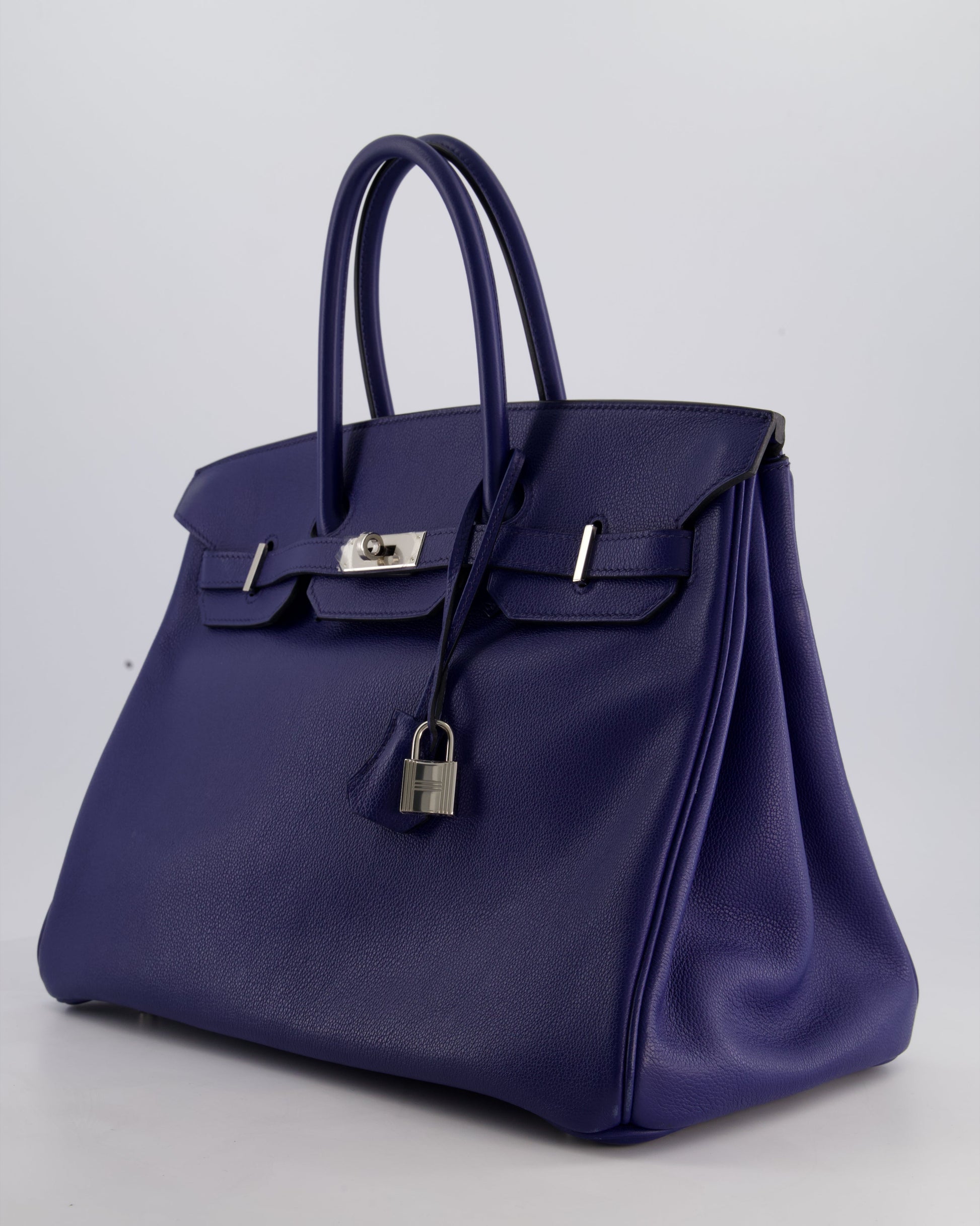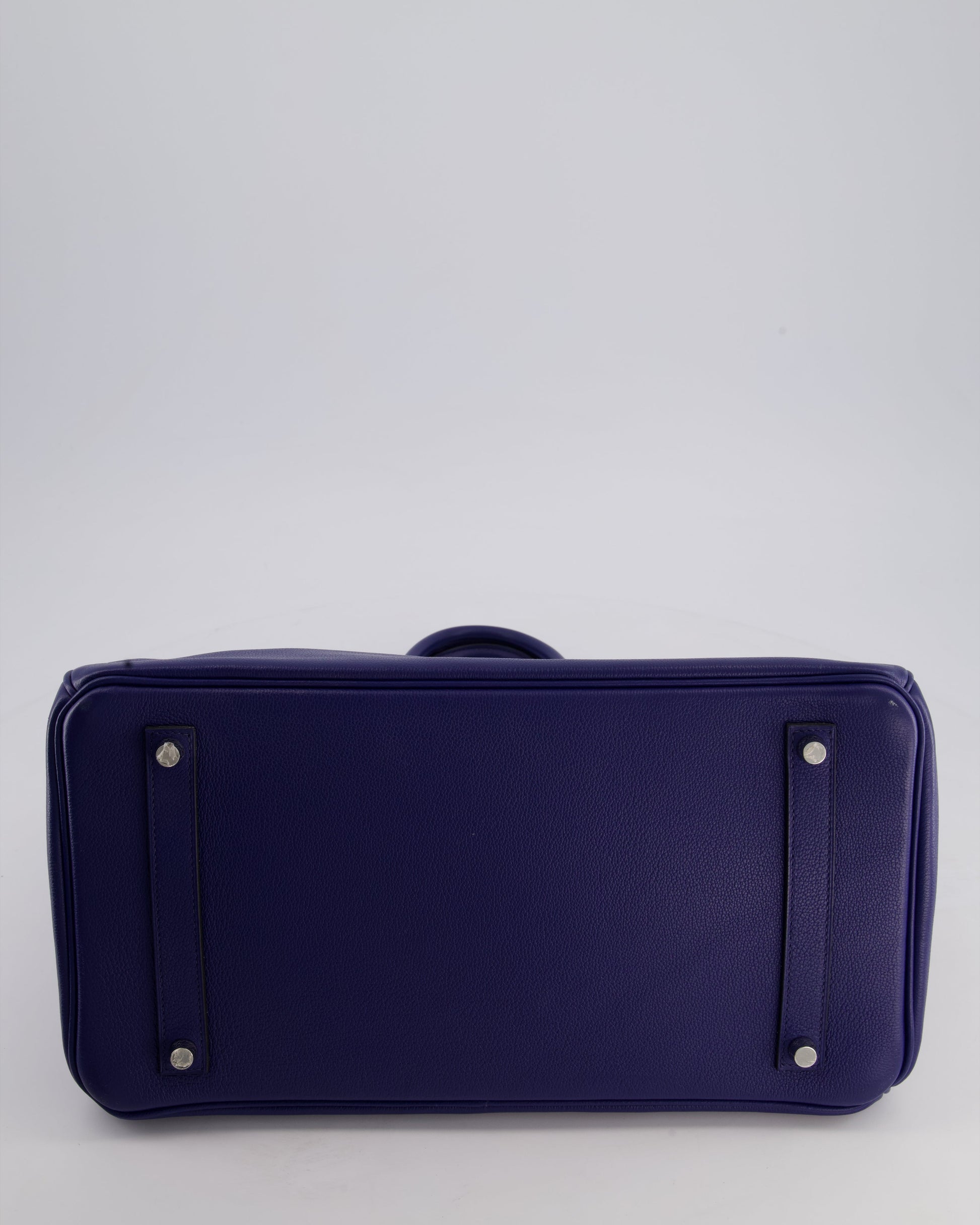 *LIMITED EDITION* Hermès Birkin 35cm Sea, Surf and Fun Bag in Bleu Saphir Novillo Leather with Palladium Hardware and Printed Canvas Interior