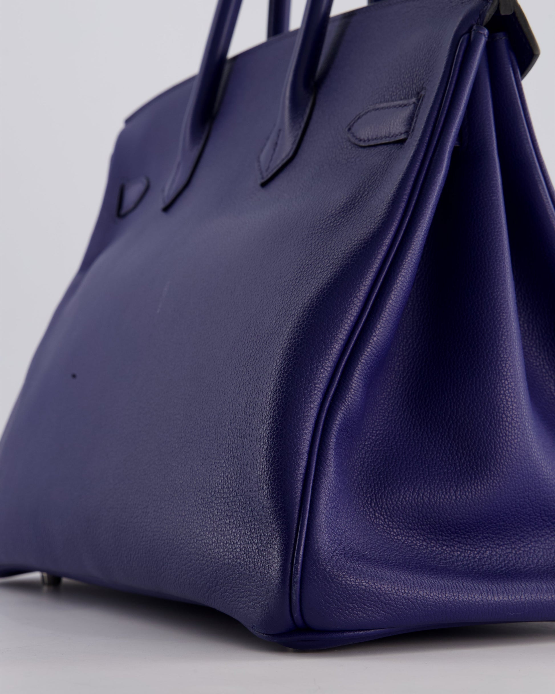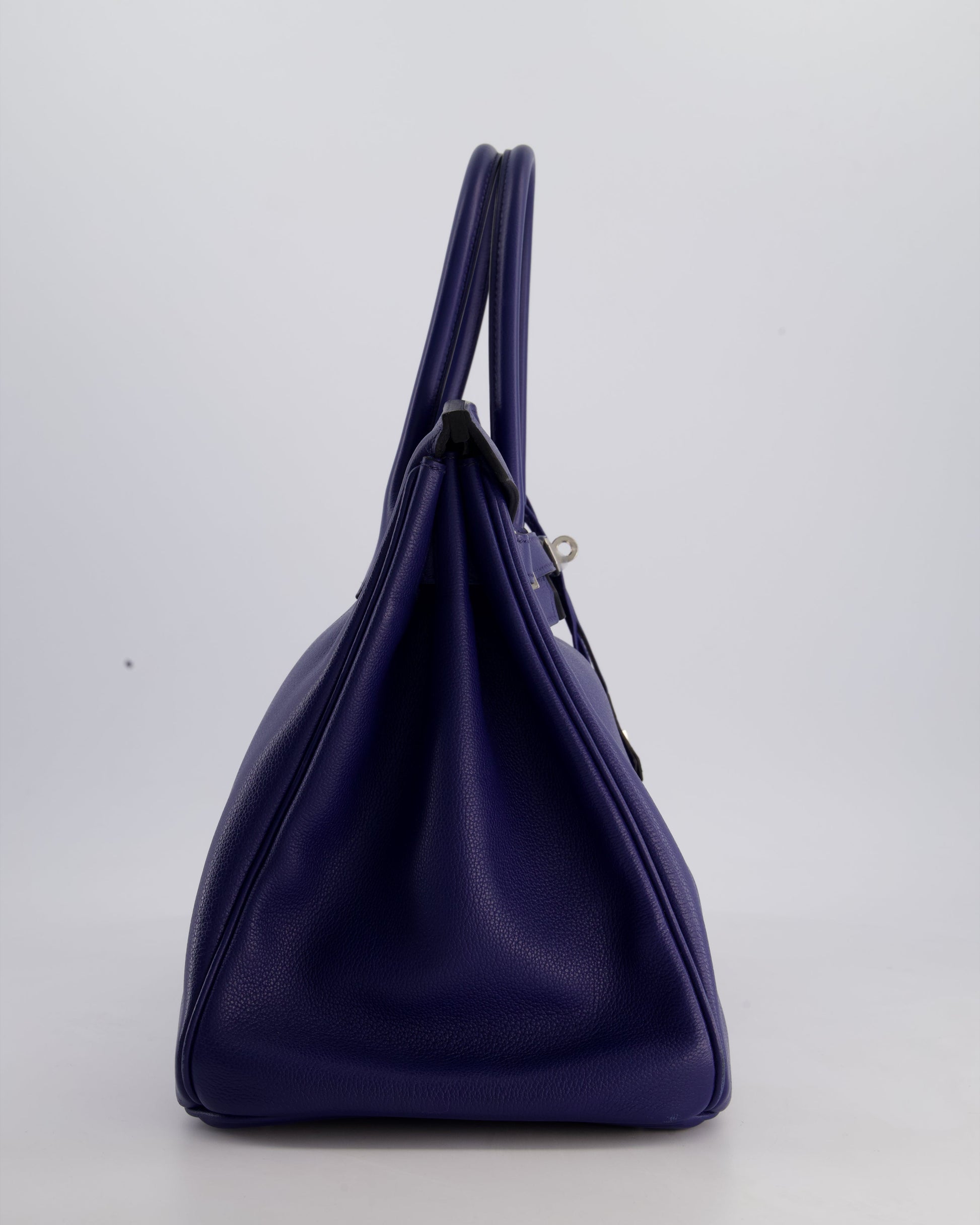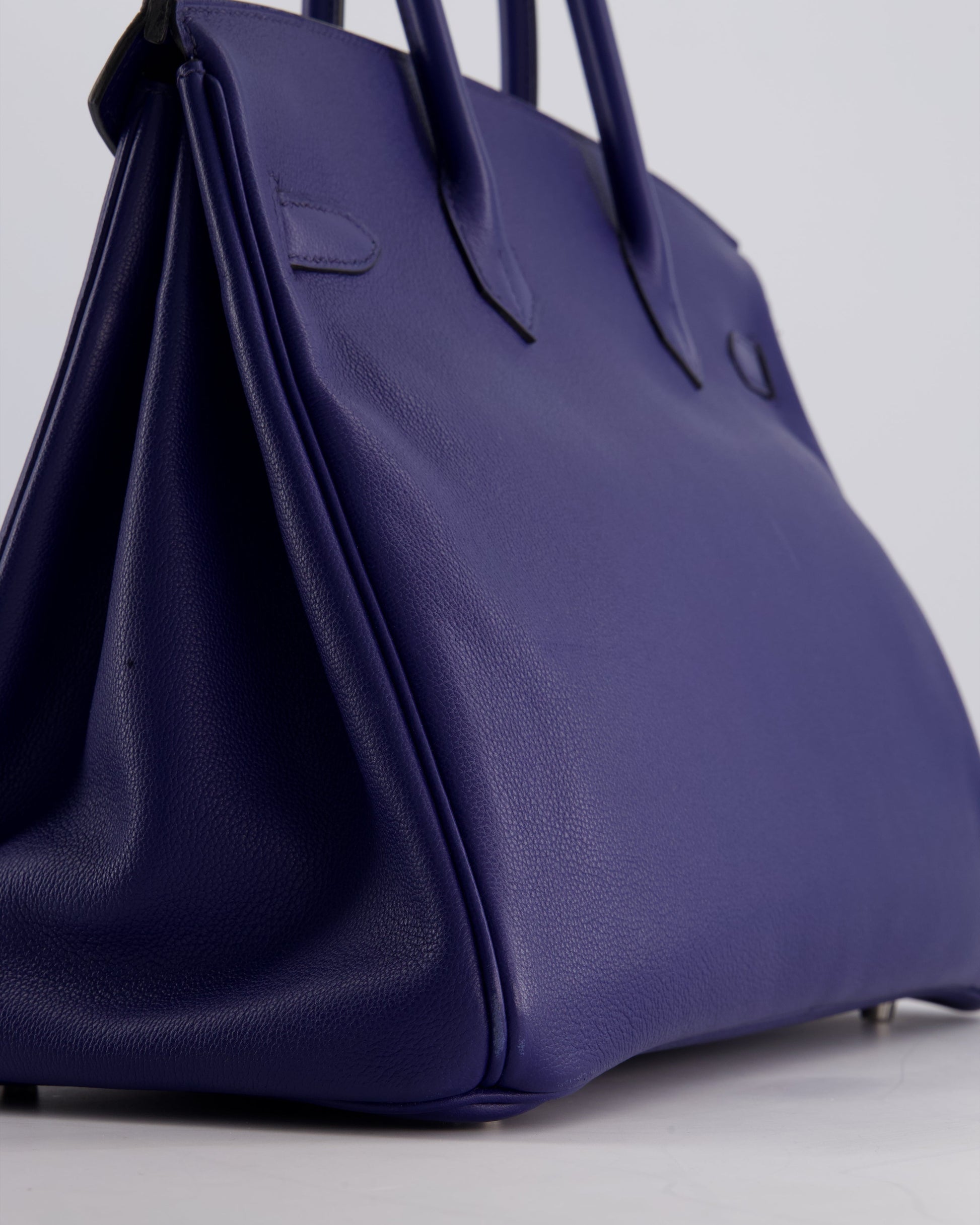 *LIMITED EDITION* Hermès Birkin 35cm Sea, Surf and Fun Bag in Bleu Saphir Novillo Leather with Palladium Hardware and Printed Canvas Interior