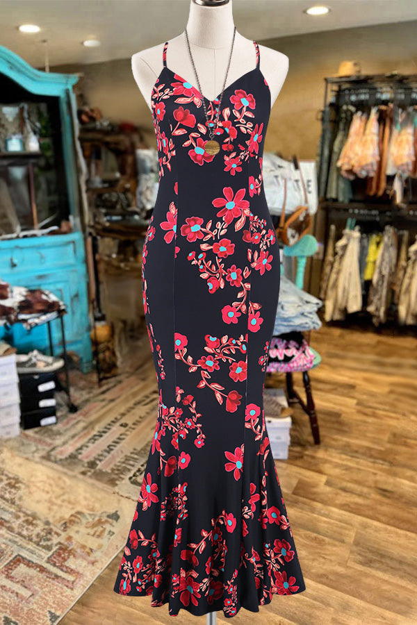 Sexy Floral Pattern Fishtail Dress