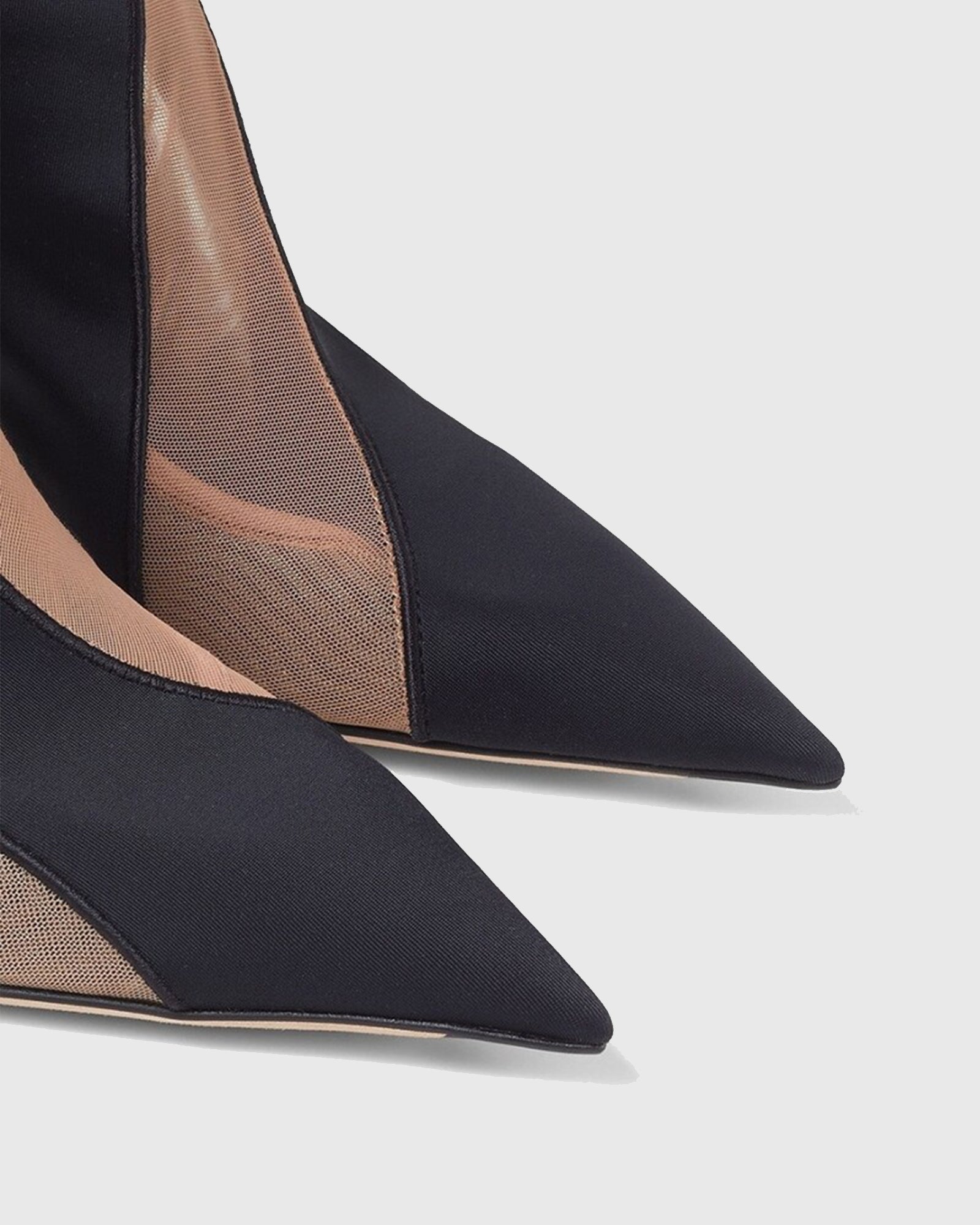 Lorenza Stripe Mesh Mid Calf Boots In Black