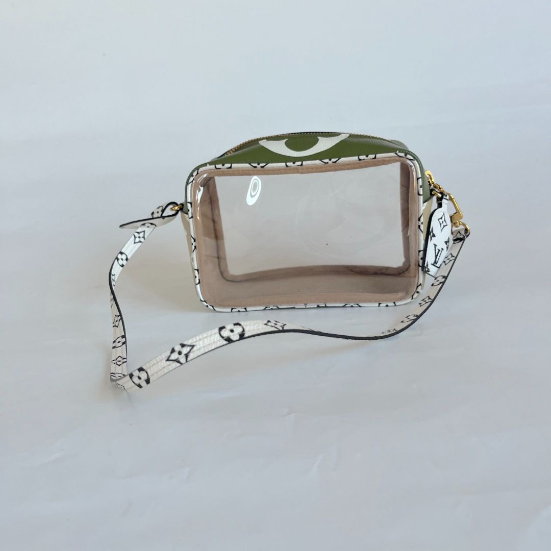 Louis Vuitton Beach Pouch Monogram Giant Khaki in green/beige , featuring monogram canvas and transparent vinyl sides, the strap is detachable.