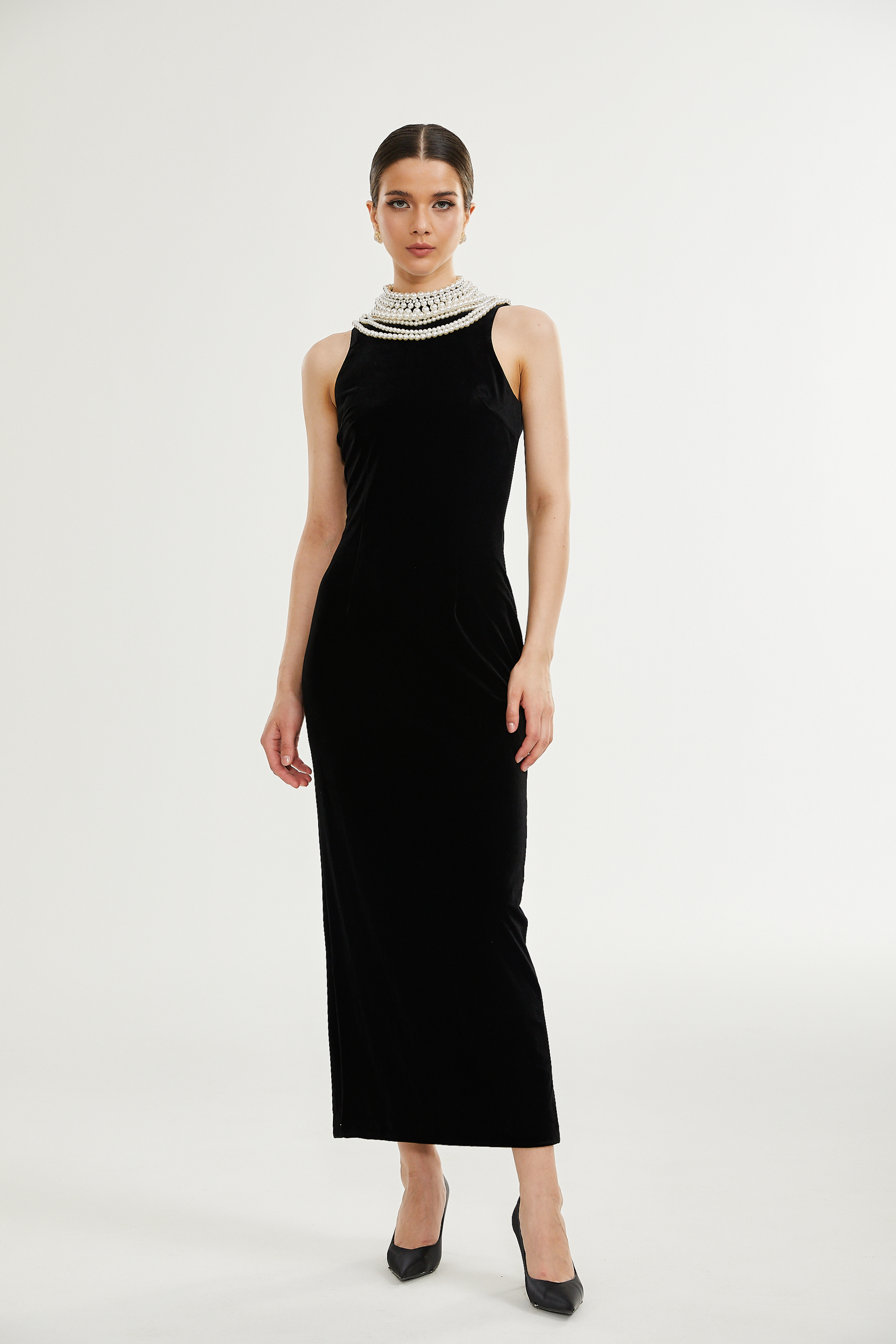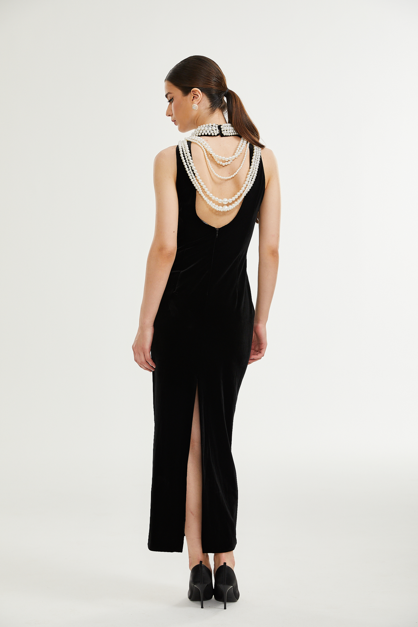 Lucena faux pearl-embellished velvet dress
