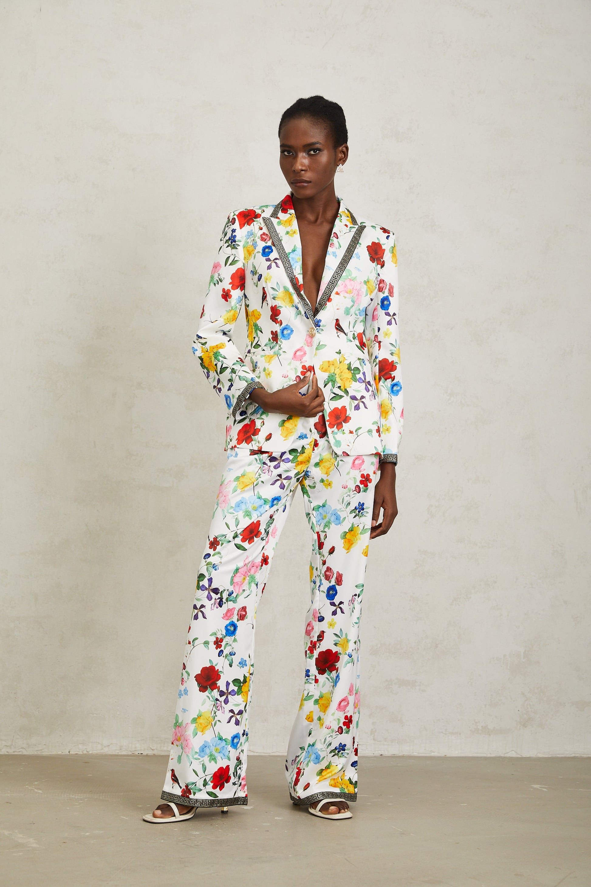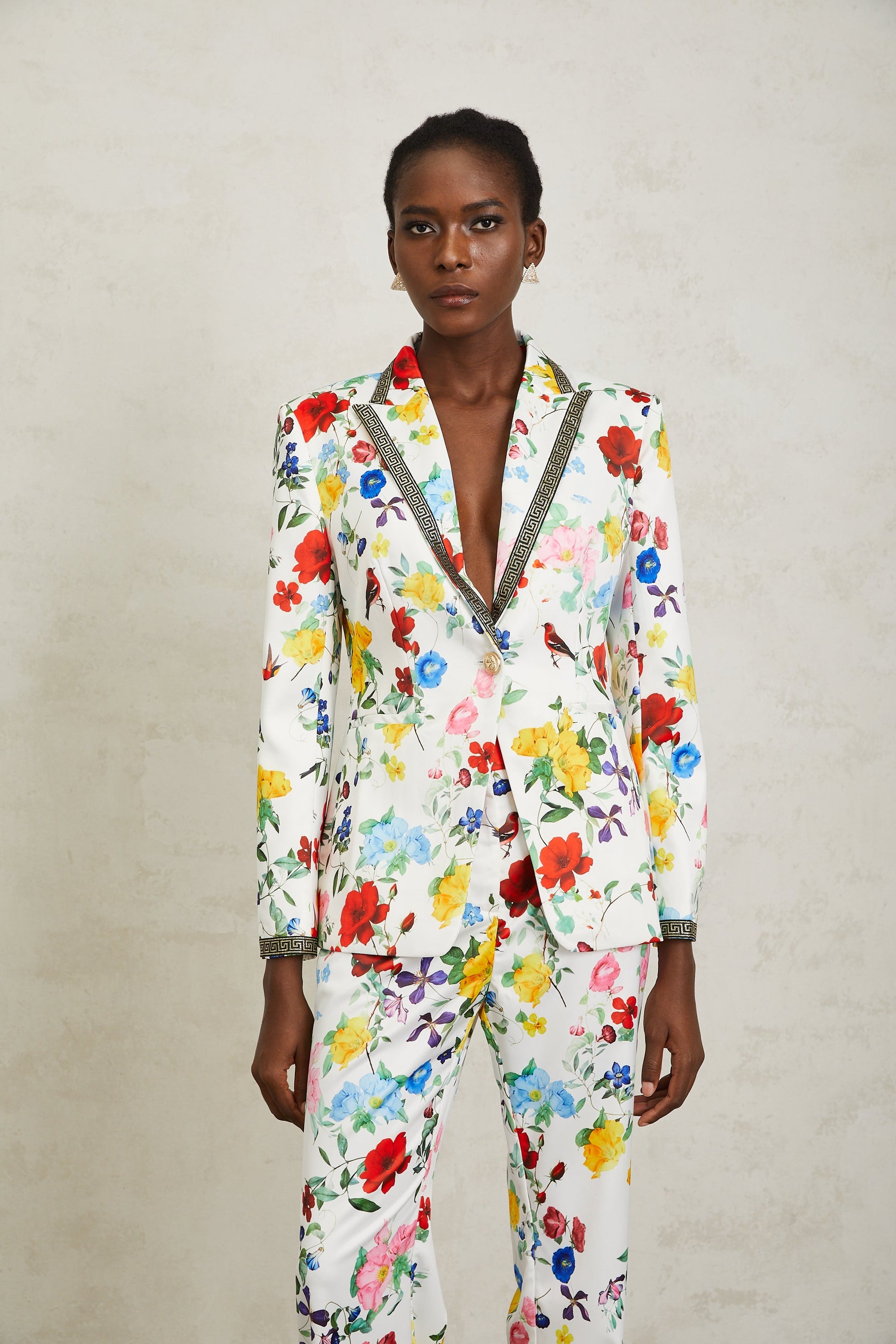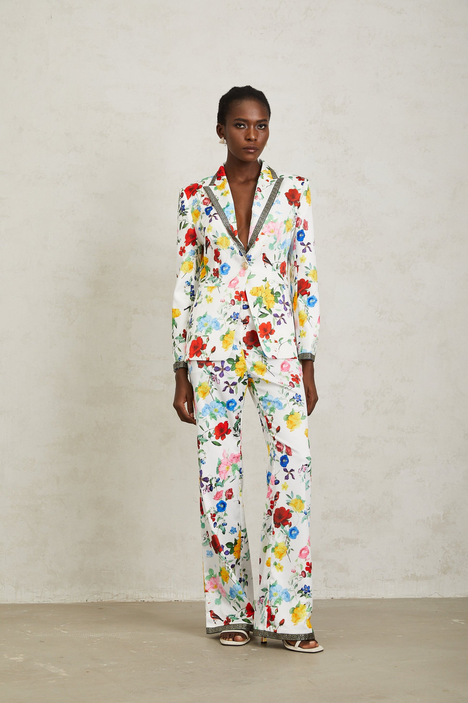 Lucía White Labyrinth Trim Floral Blazer & Trousers Set