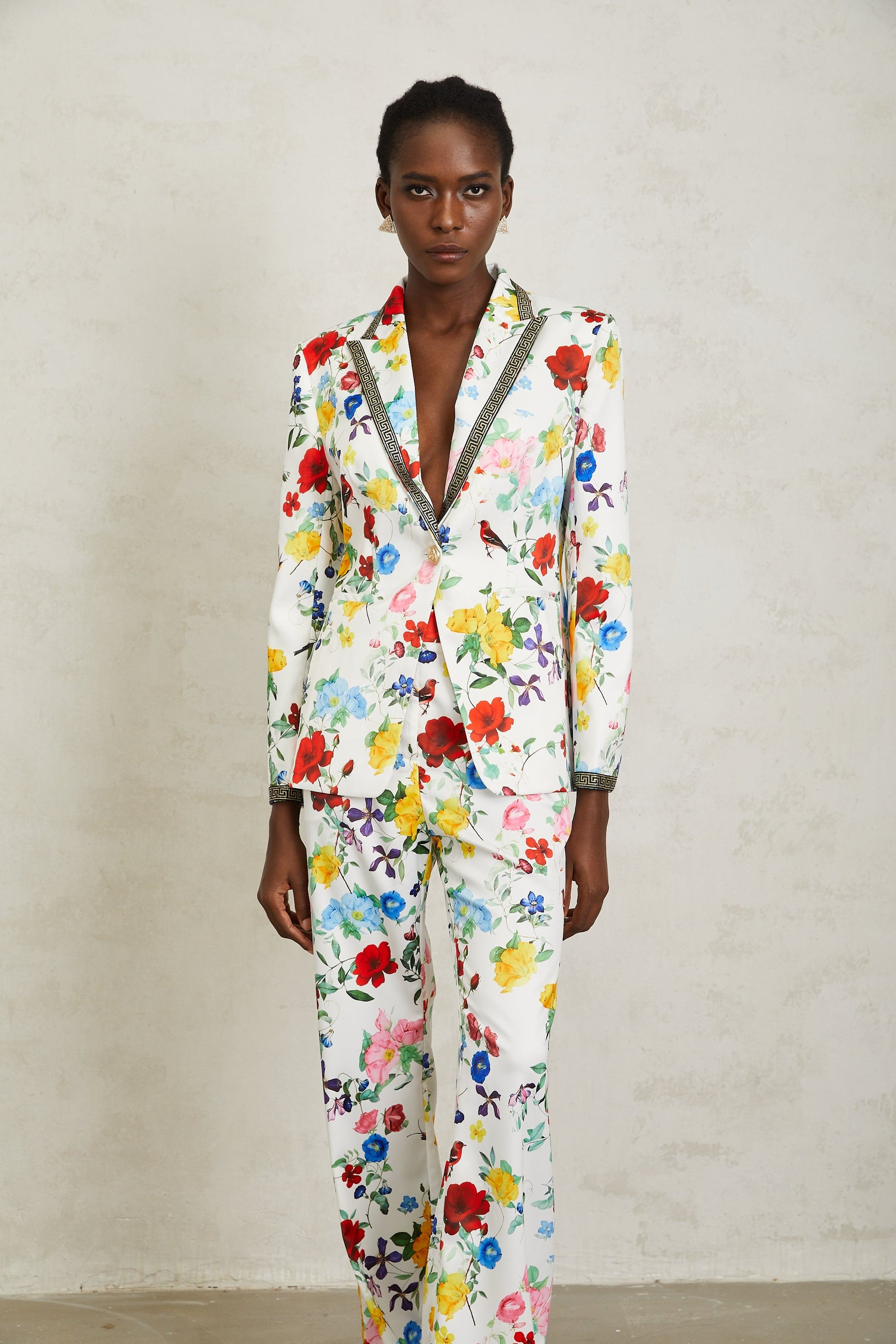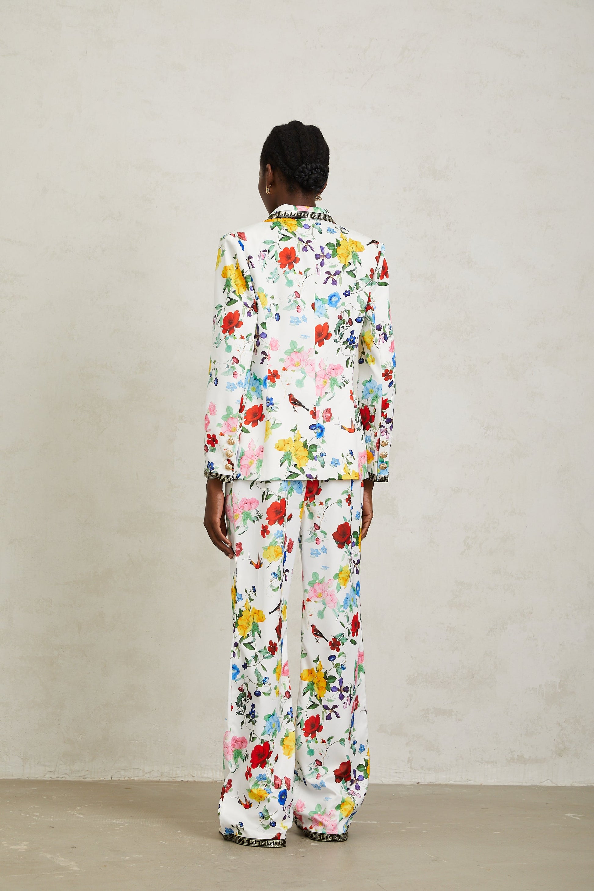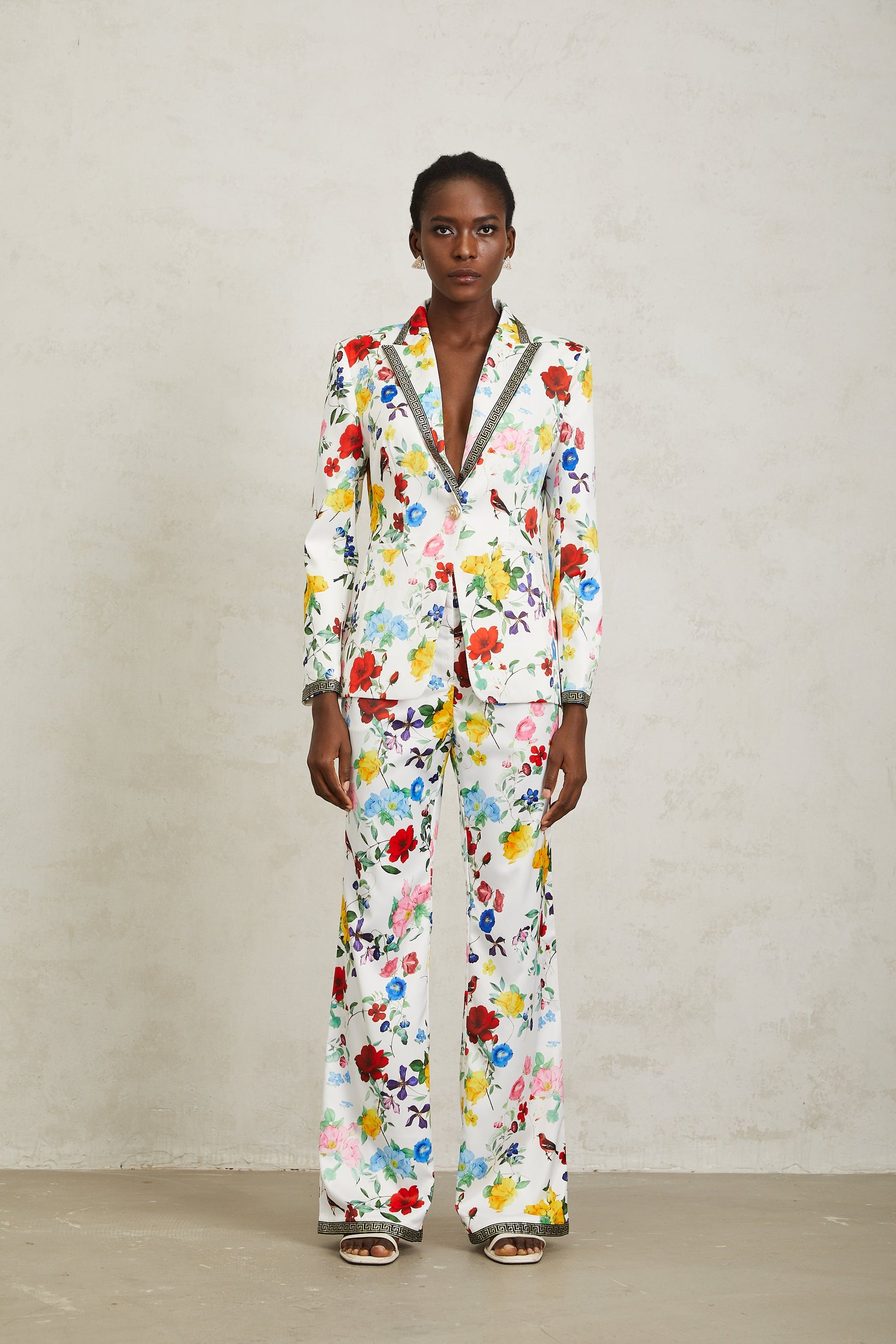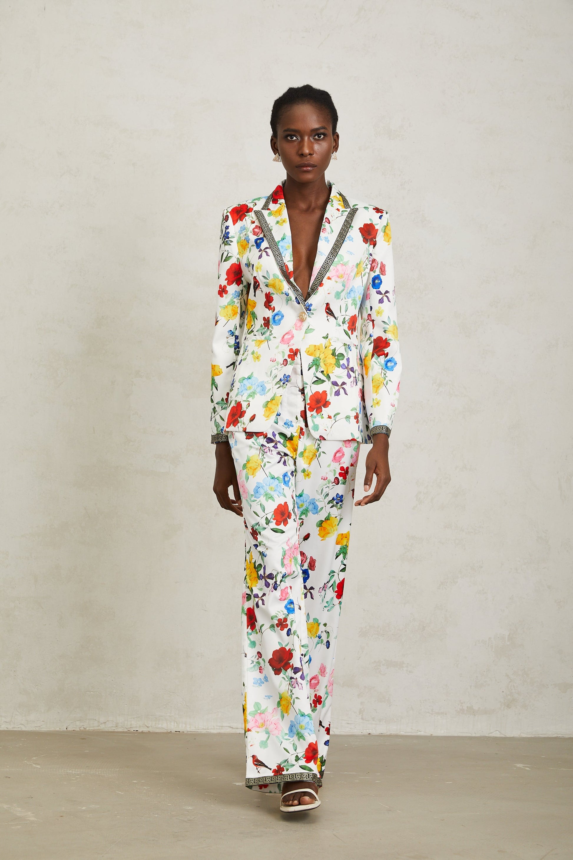 Lucía White Labyrinth Trim Floral Blazer & Trousers Set
