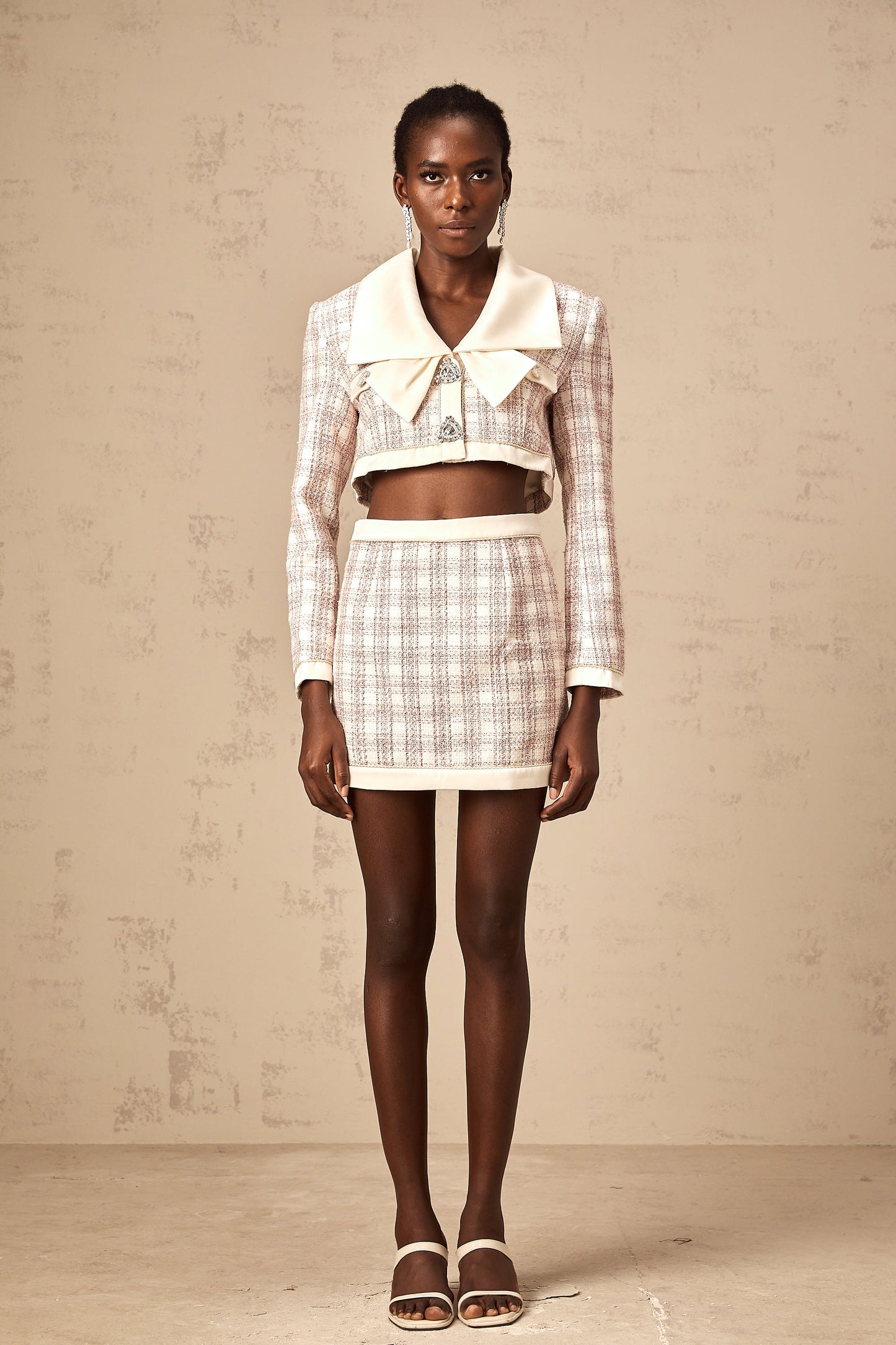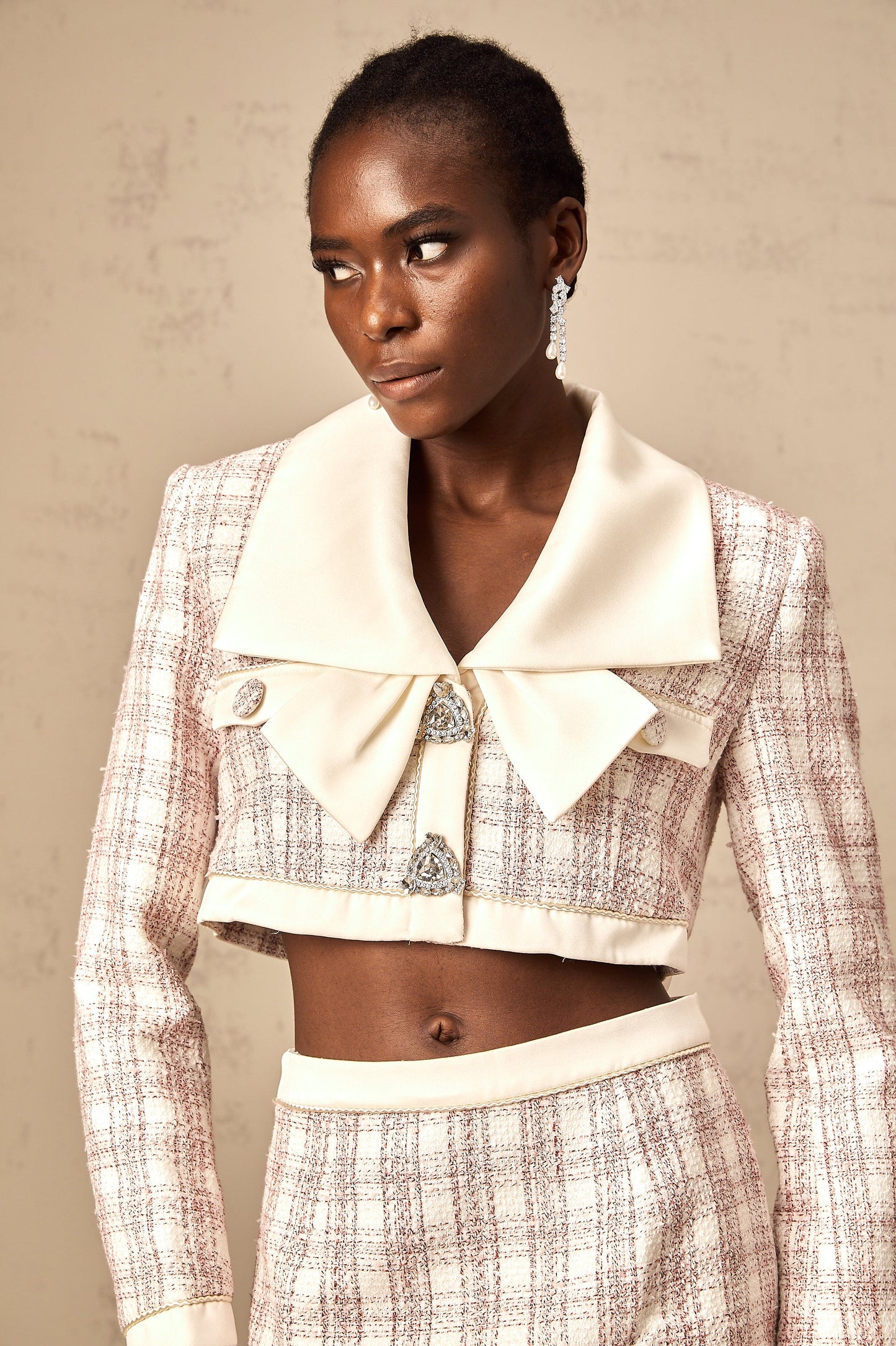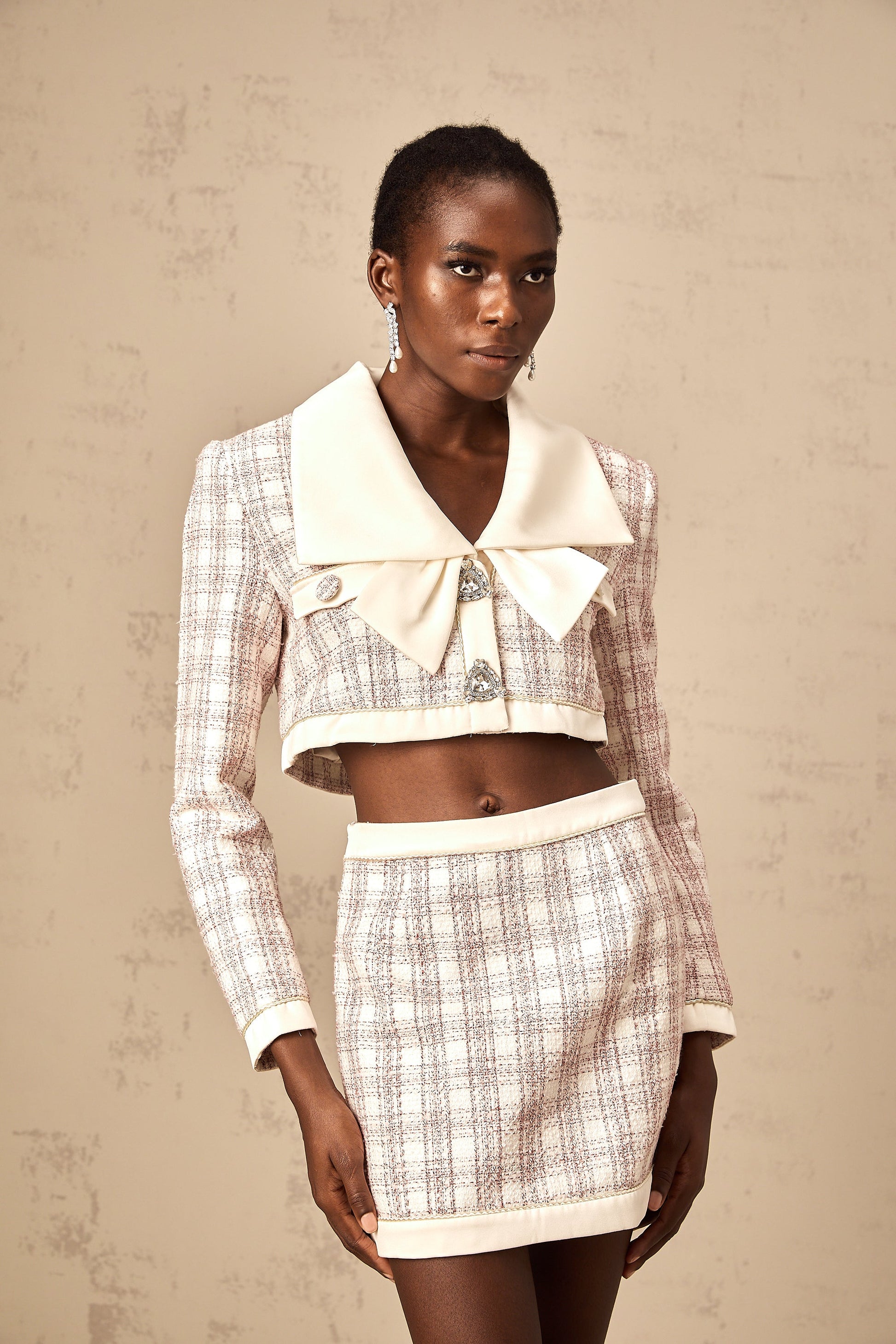 Ludivine pink checked tweed jacket & skirt matching set