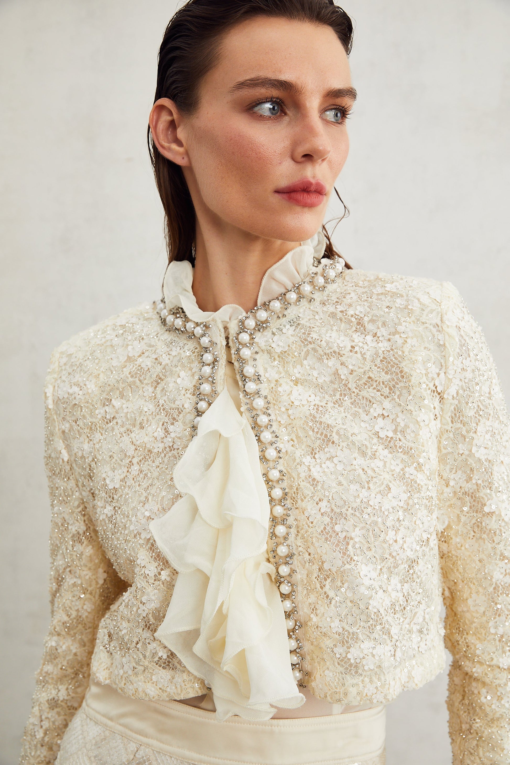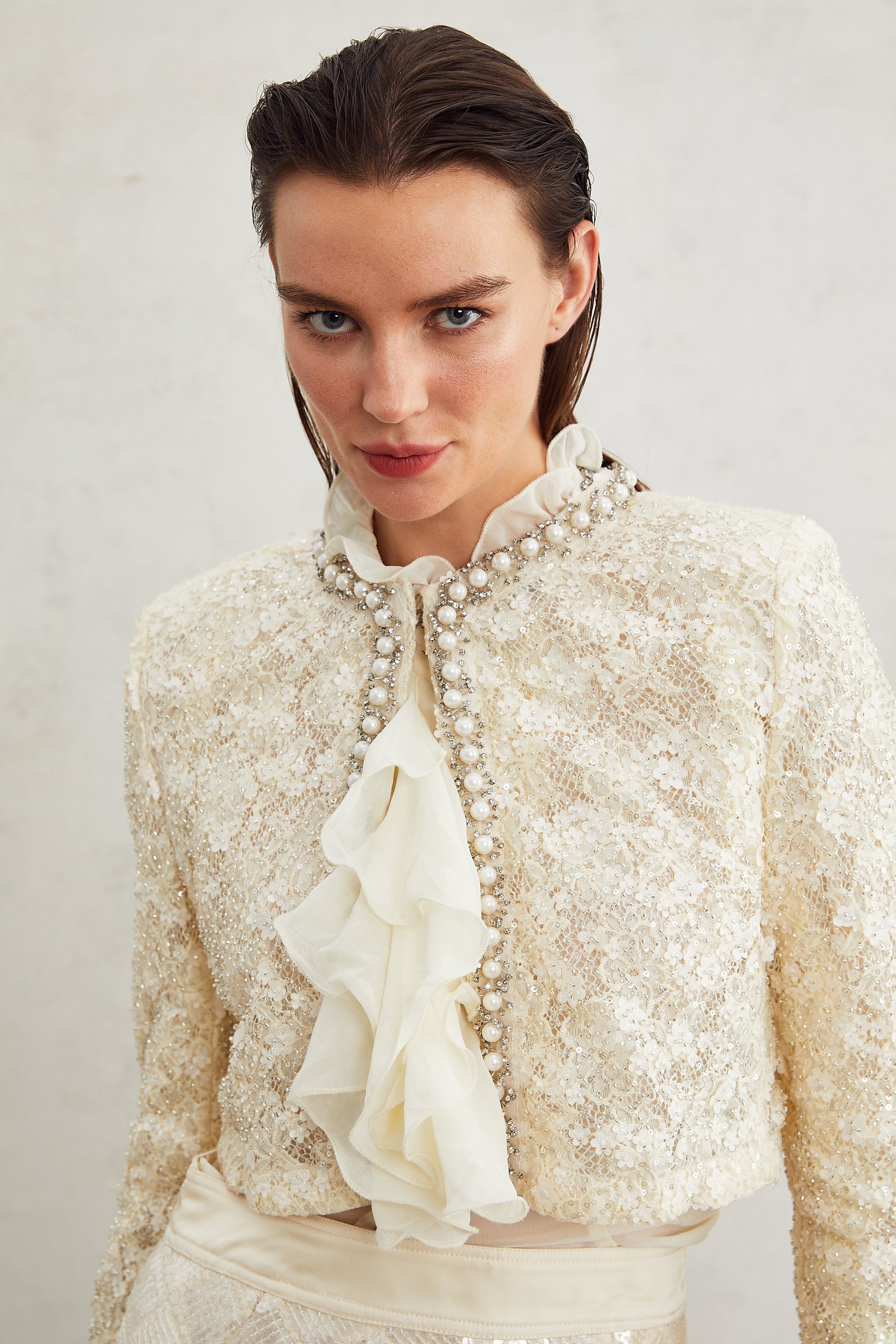 Madeleine floral faux-pearl trim jacket