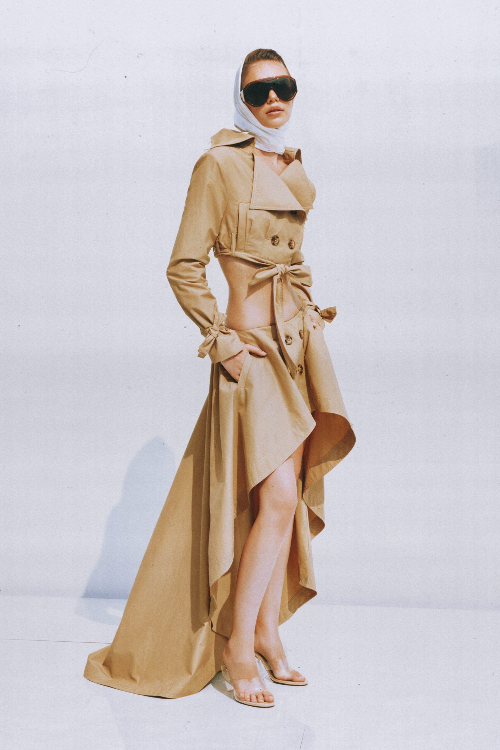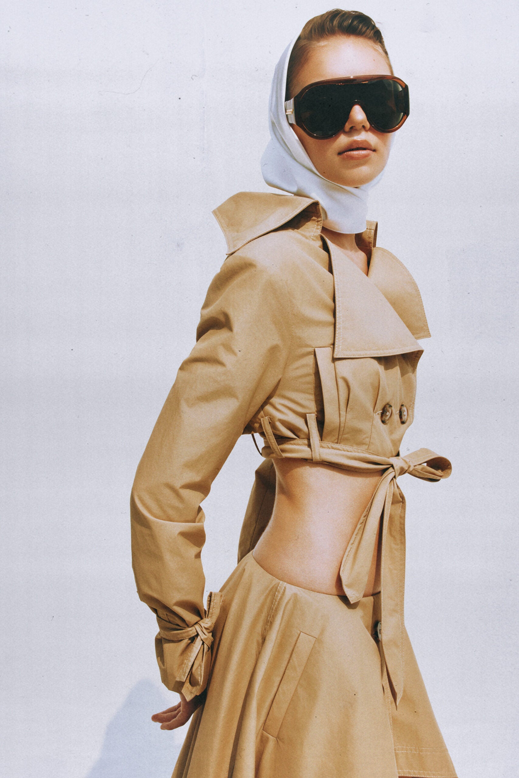 Maelle Khaki Cropped Trench Jacket & Skirt Matching Set