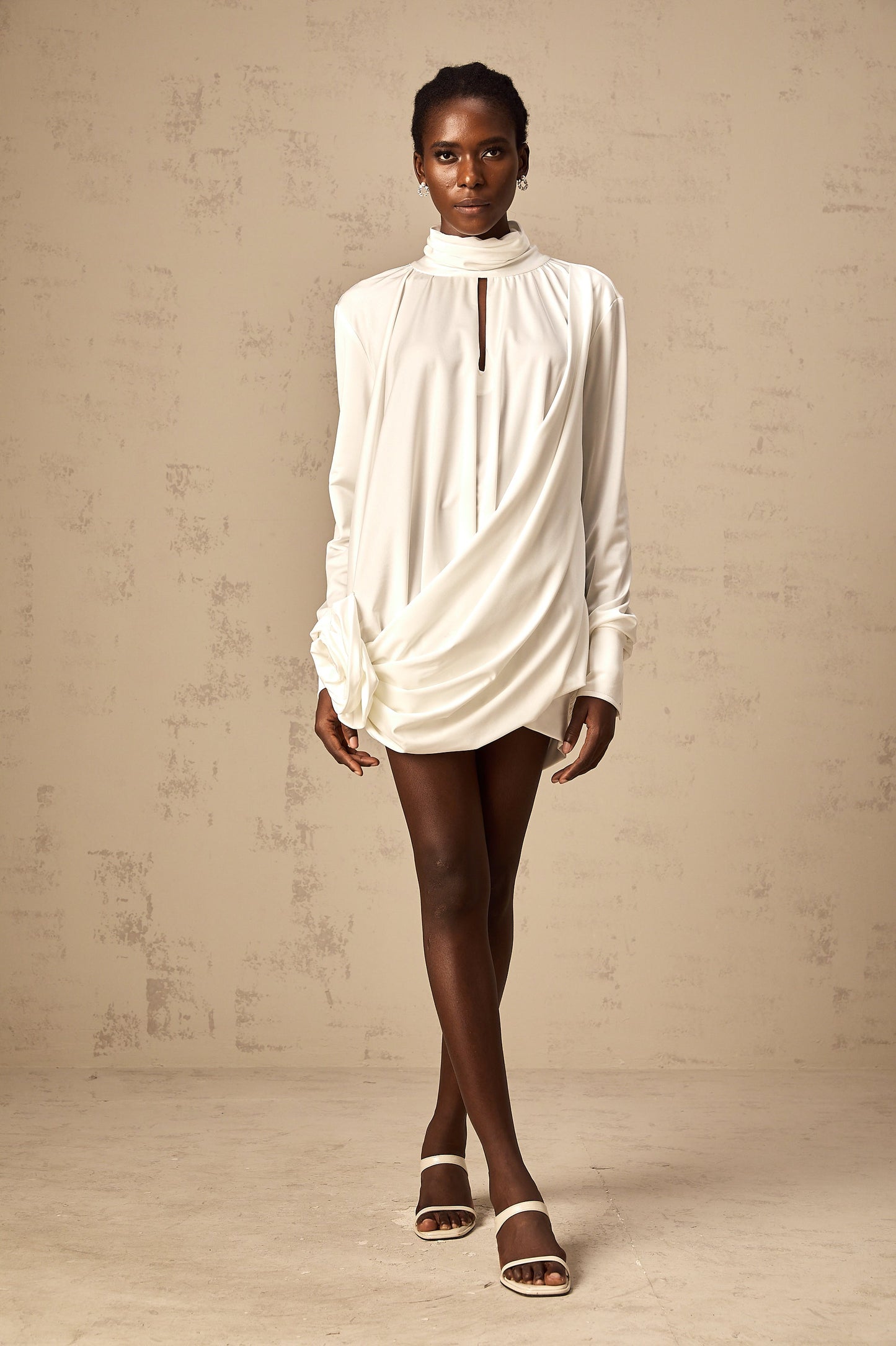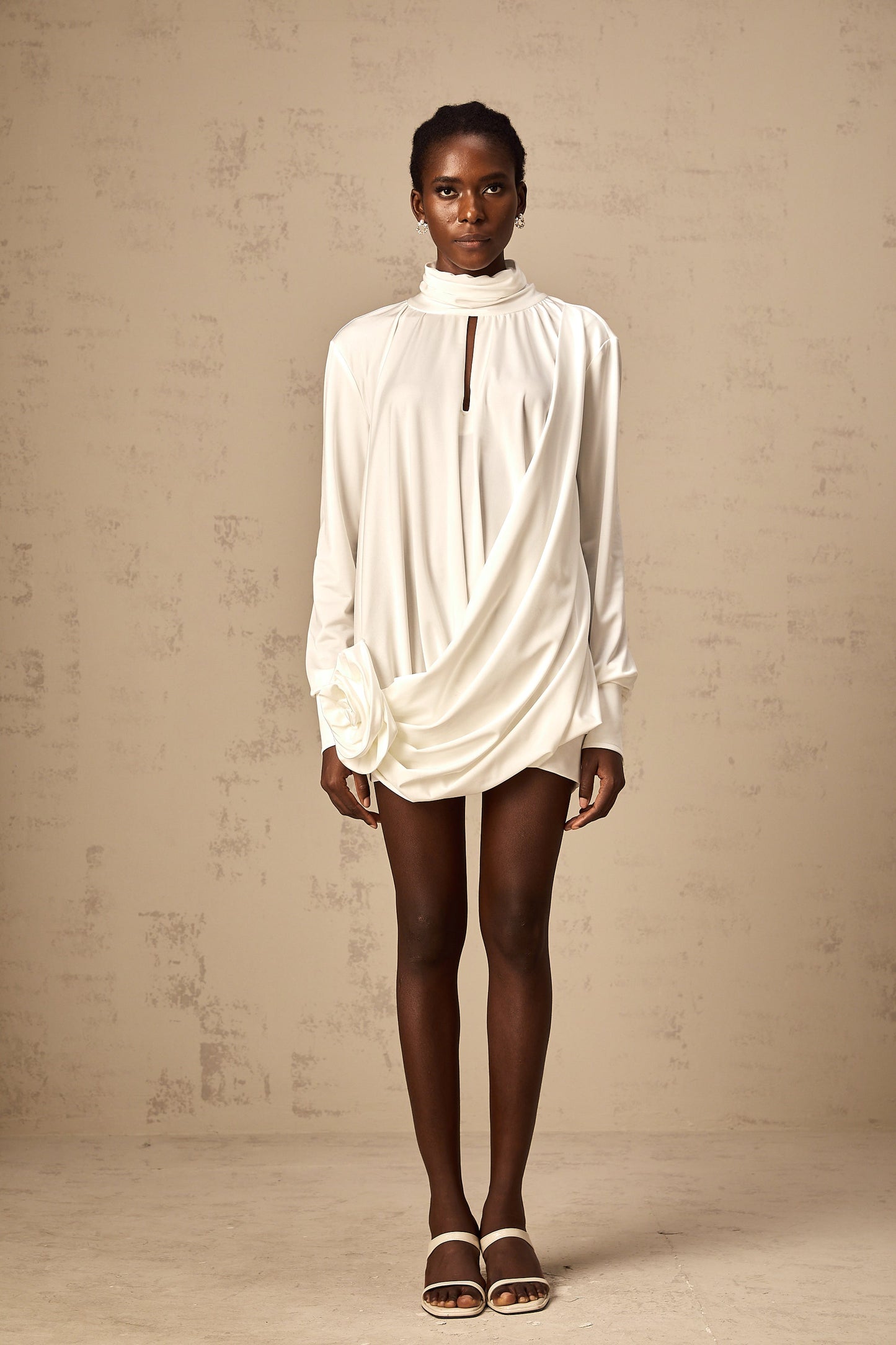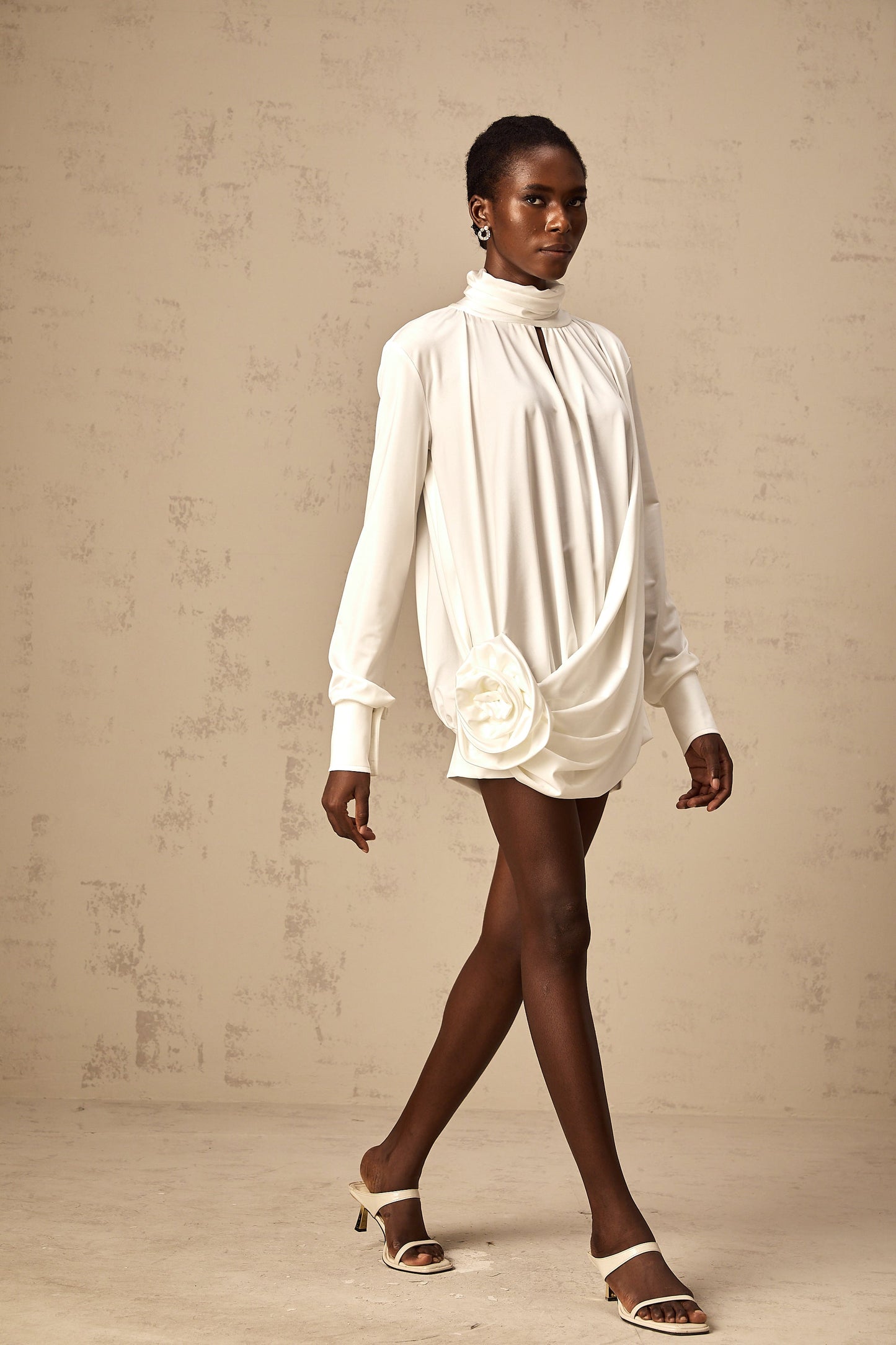 Maeva faux-flower ruched mini dress in White