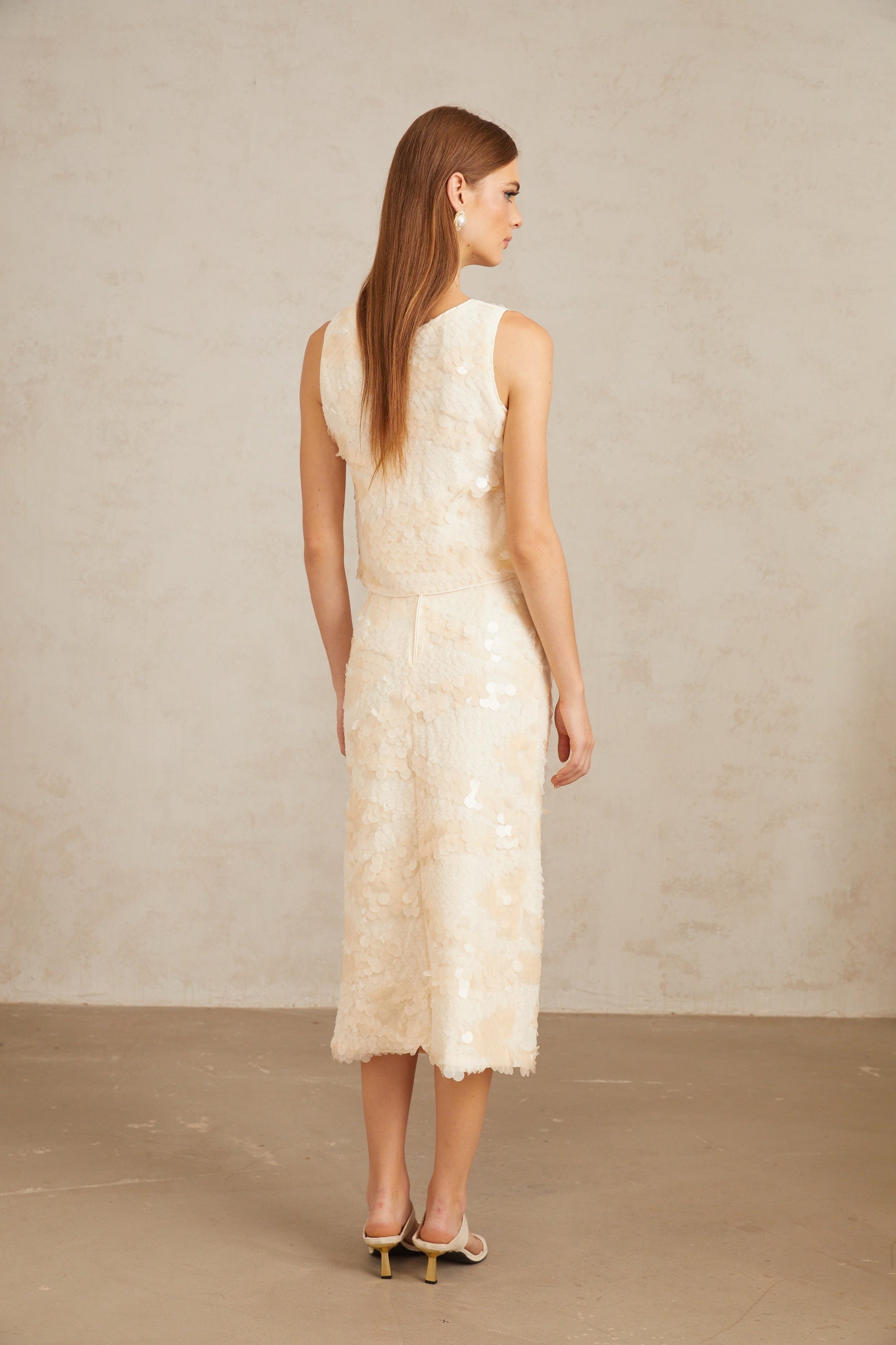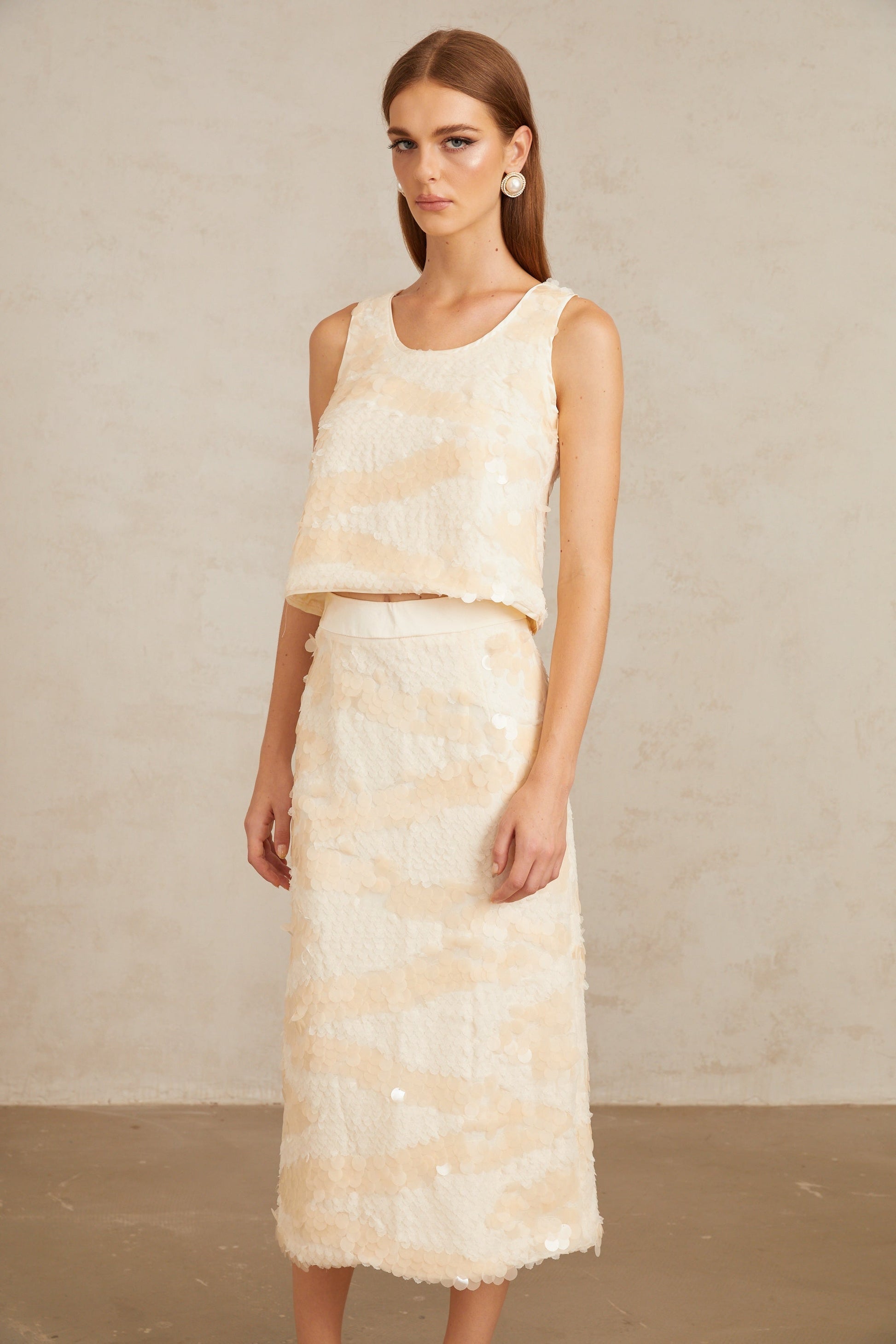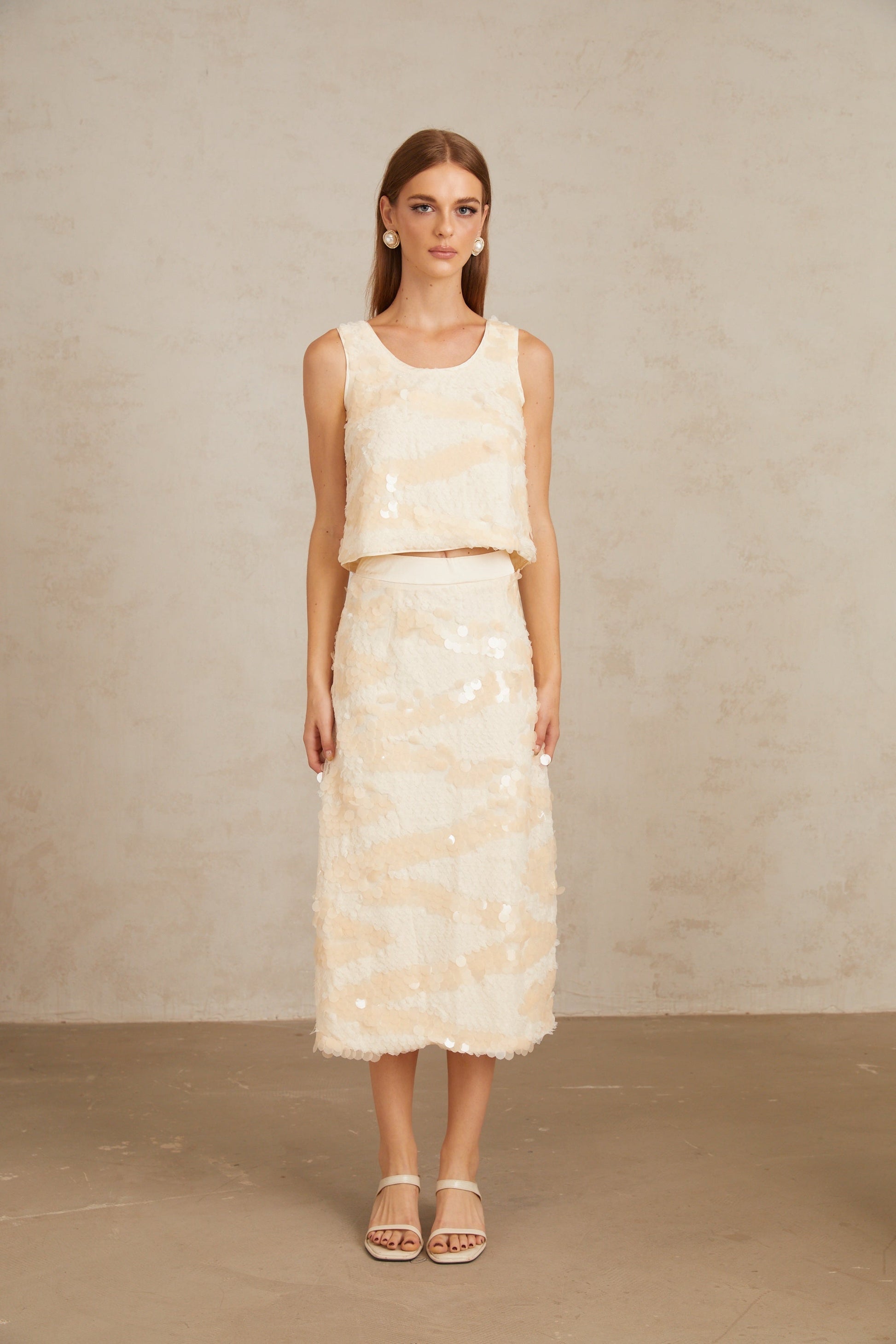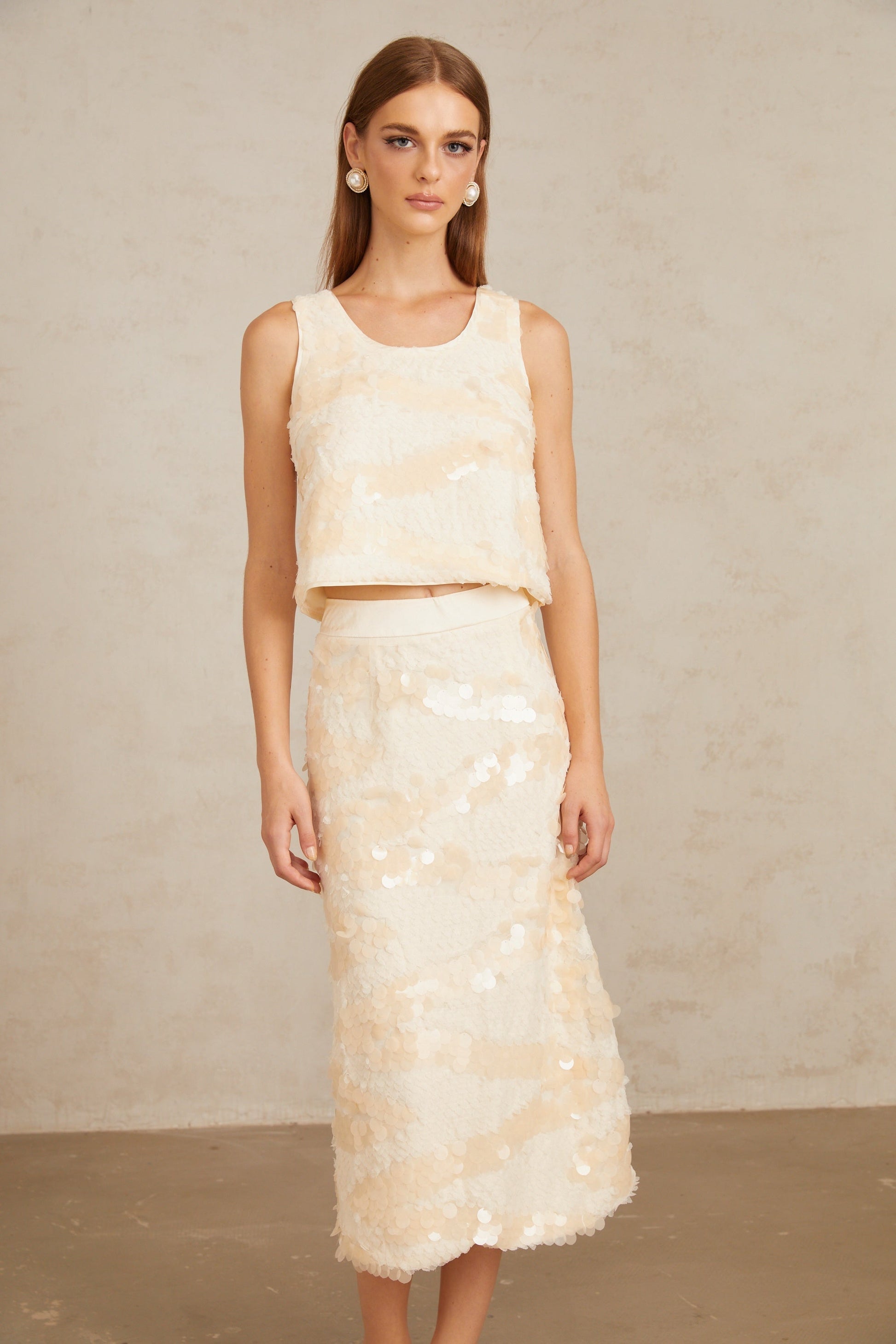 Maisie Textured Embellished Sequin Top & Skirt Co-ord