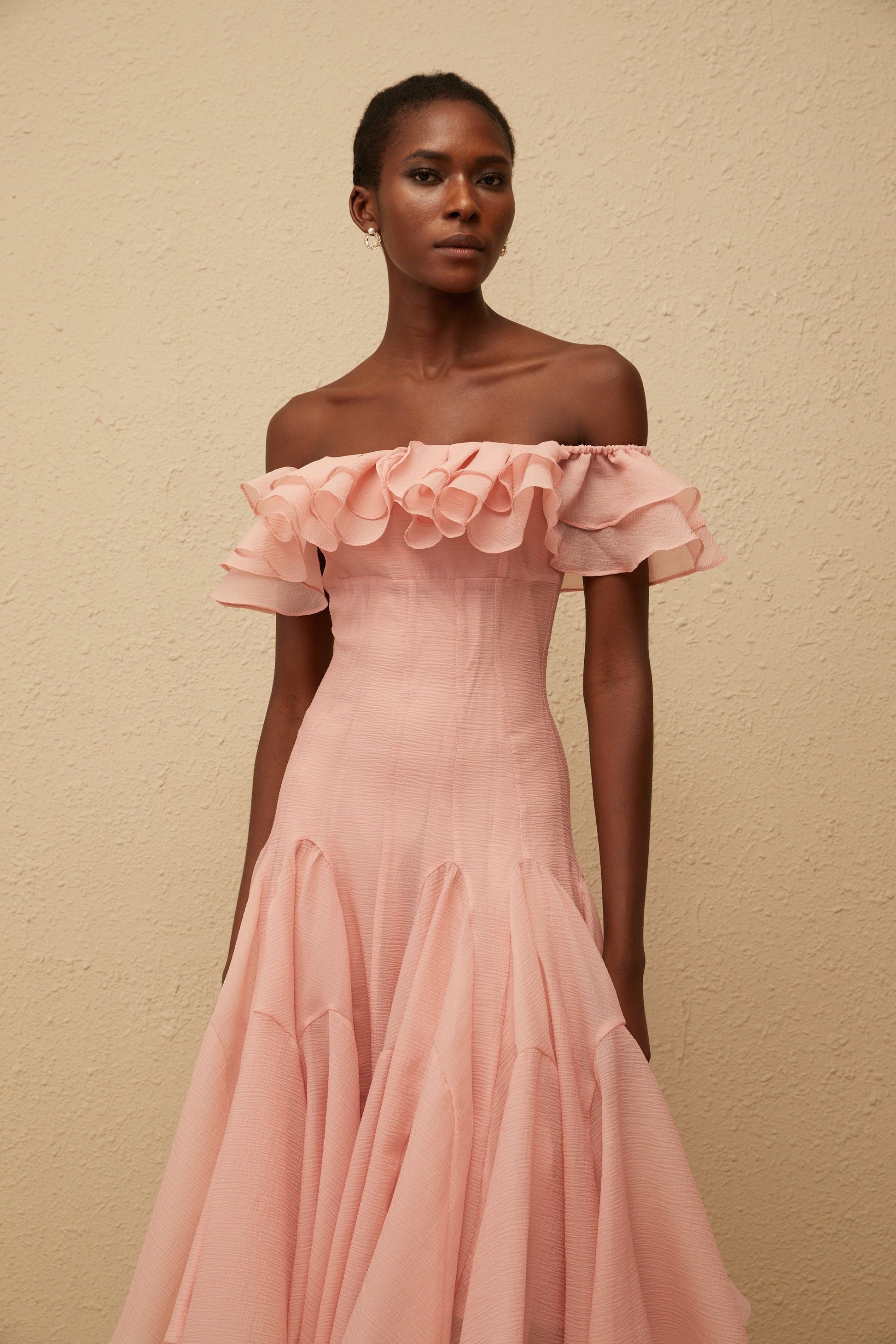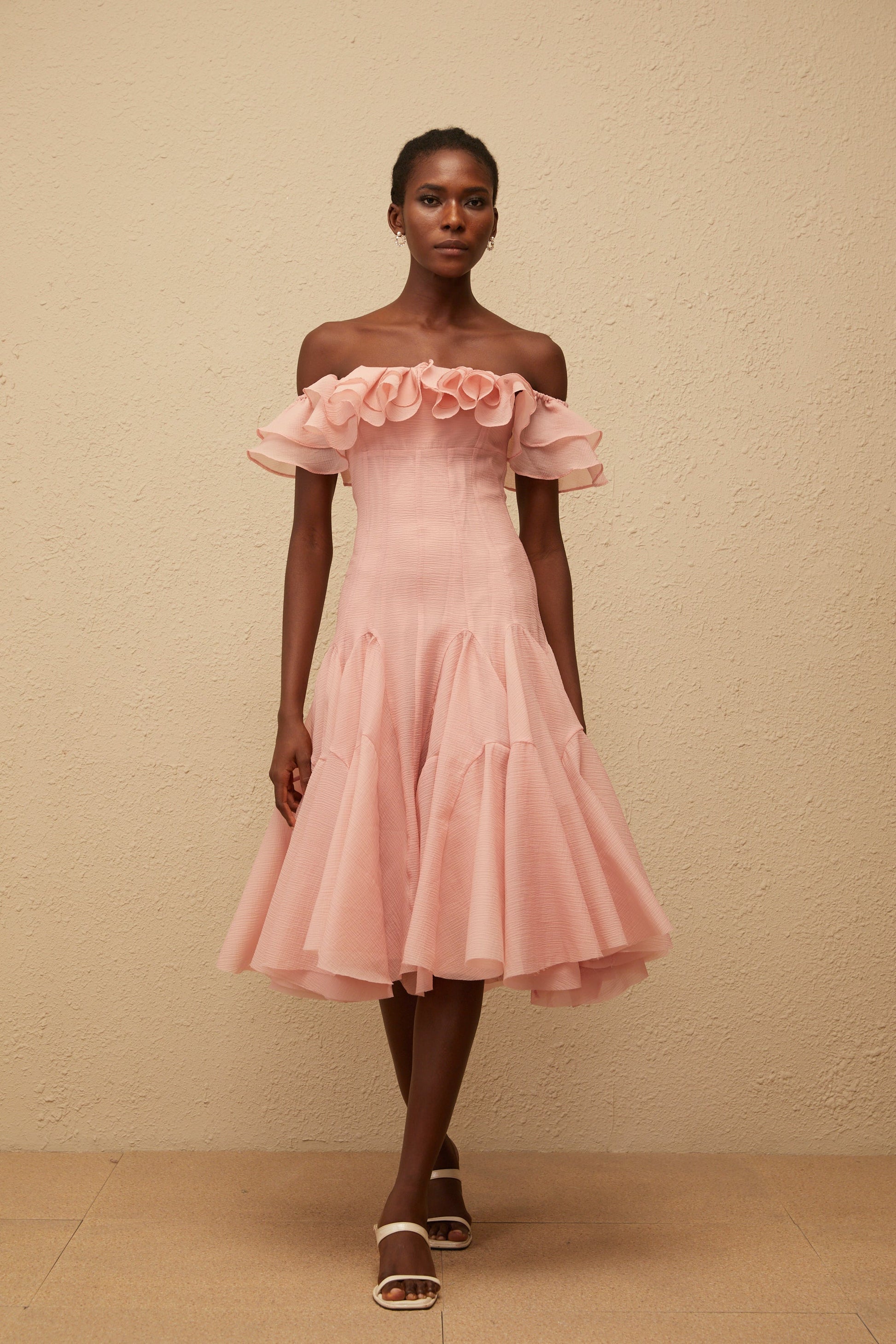 Margarita Pink Godet Ruffled Midi Dress