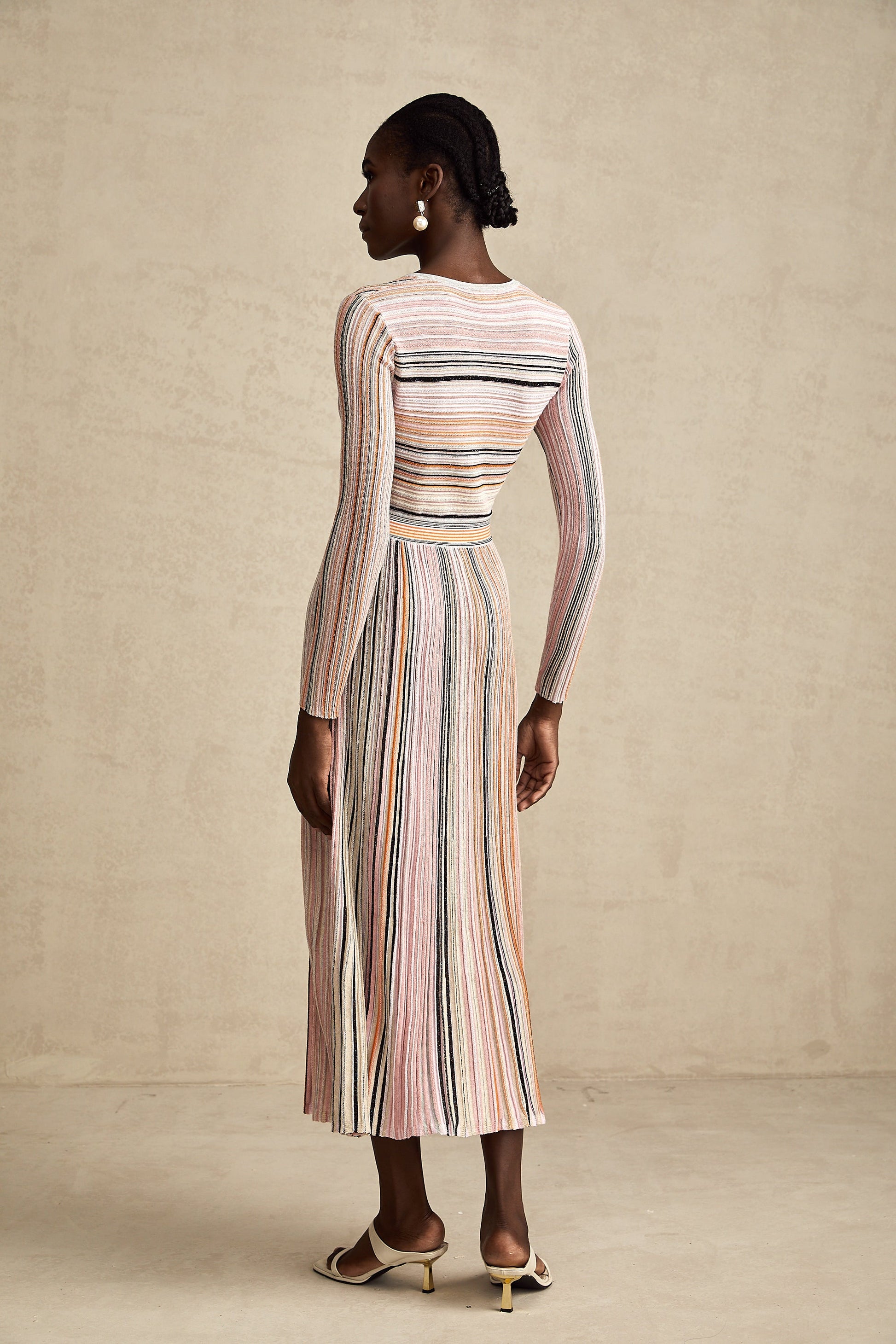 Mathilde metallic pleated midi dress in Pink