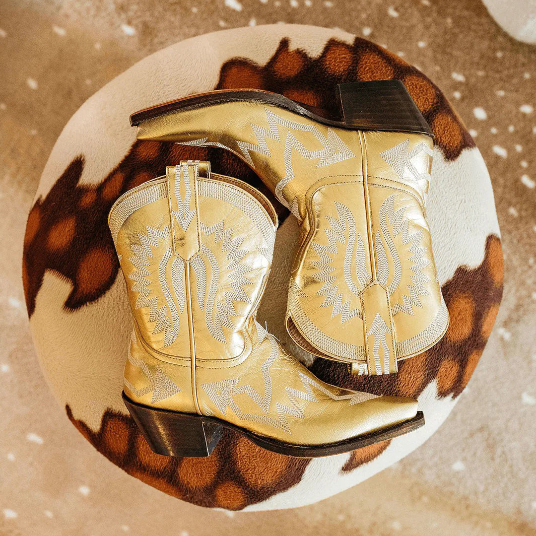 Gold Metallic Snip Toe Embroidered Ankle Length Cowgirl Boots