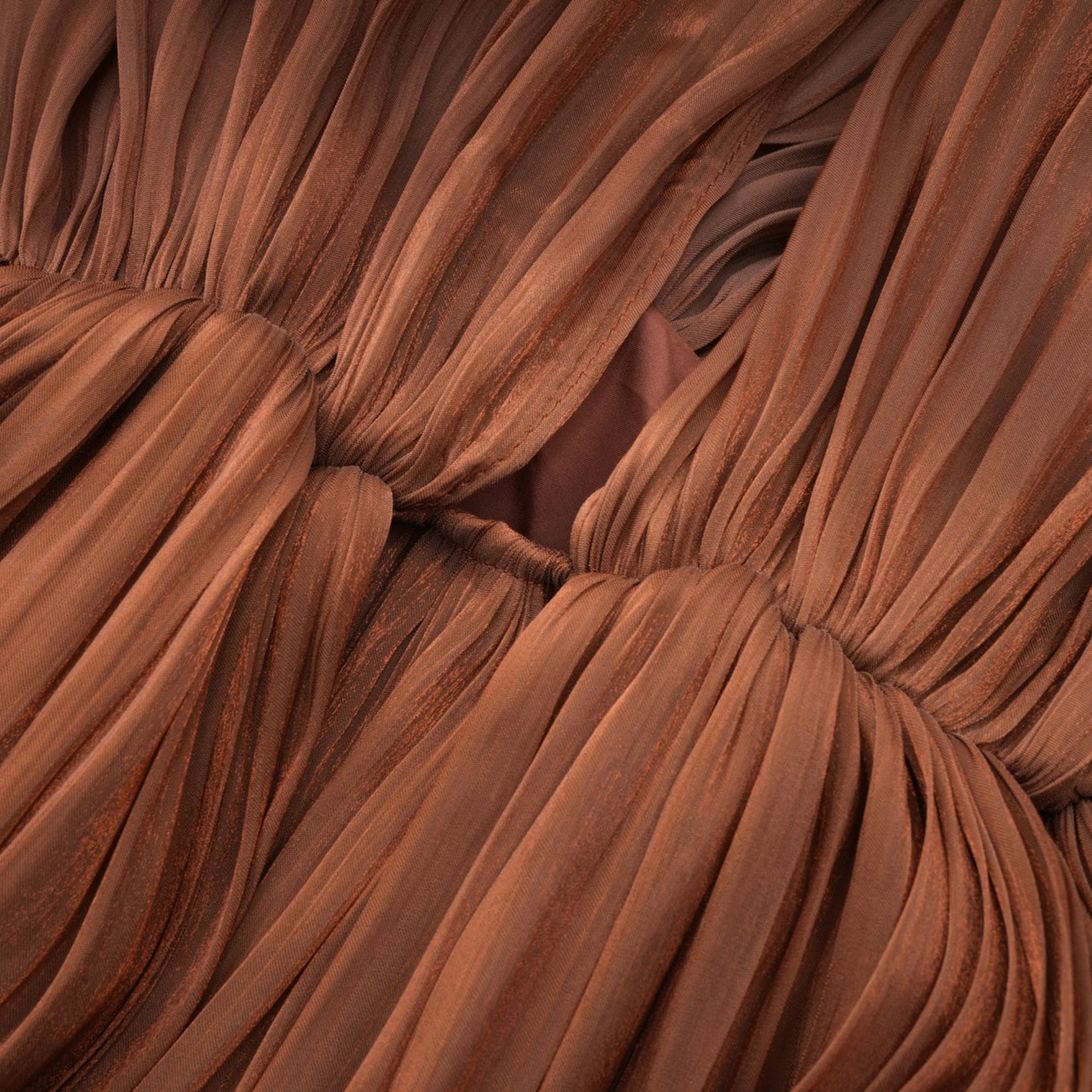Mila Brown Pleated Satin Maxi Dress