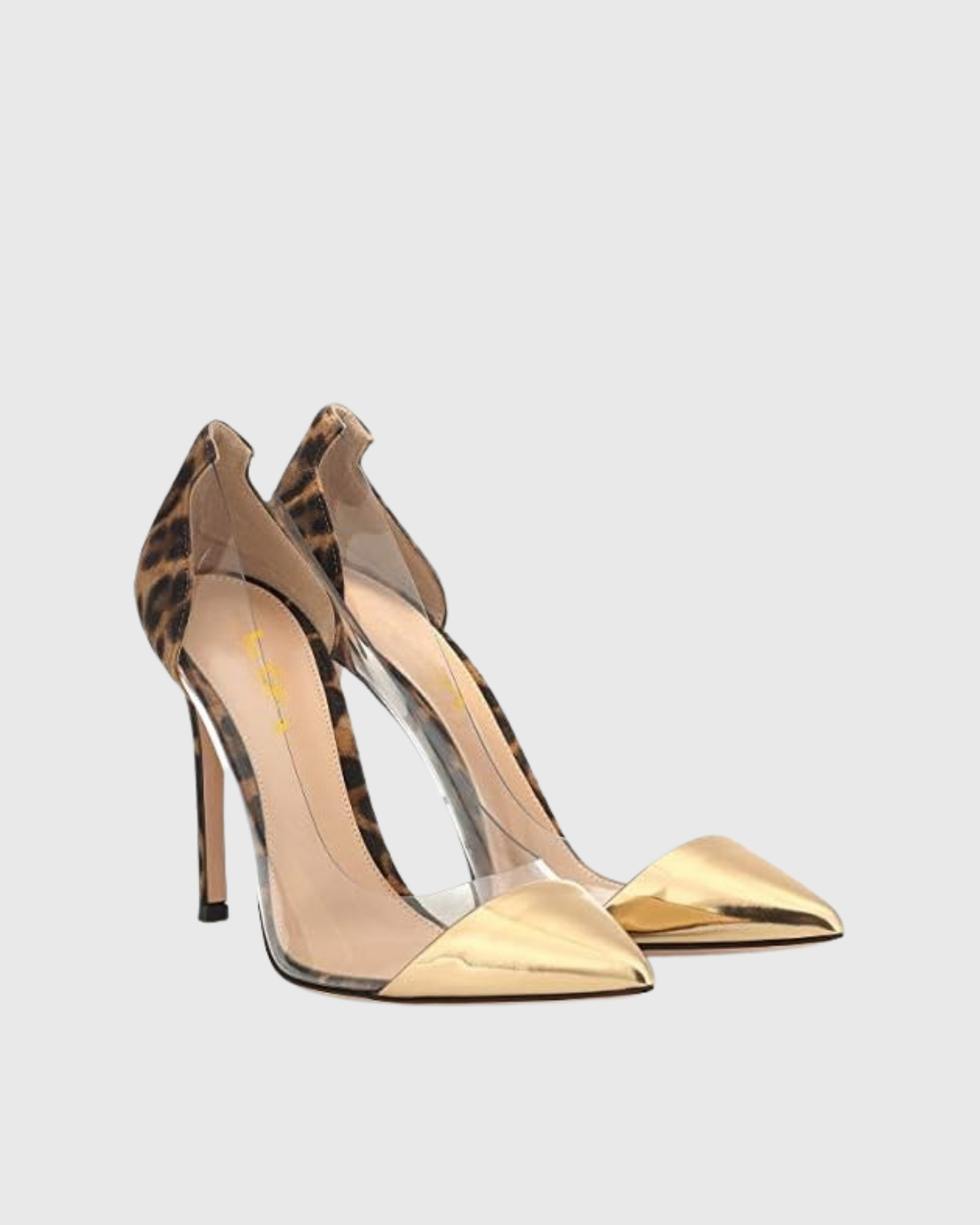 Elevate your style with the Mila Pvc Leopard Print Splicing Pumps! These eye-catching pumps feature a daring leopard print panel and sleek PVC material. Step out confidently and make a statement with these pumps that are sure to add a touch of wild elegance to any outfit.