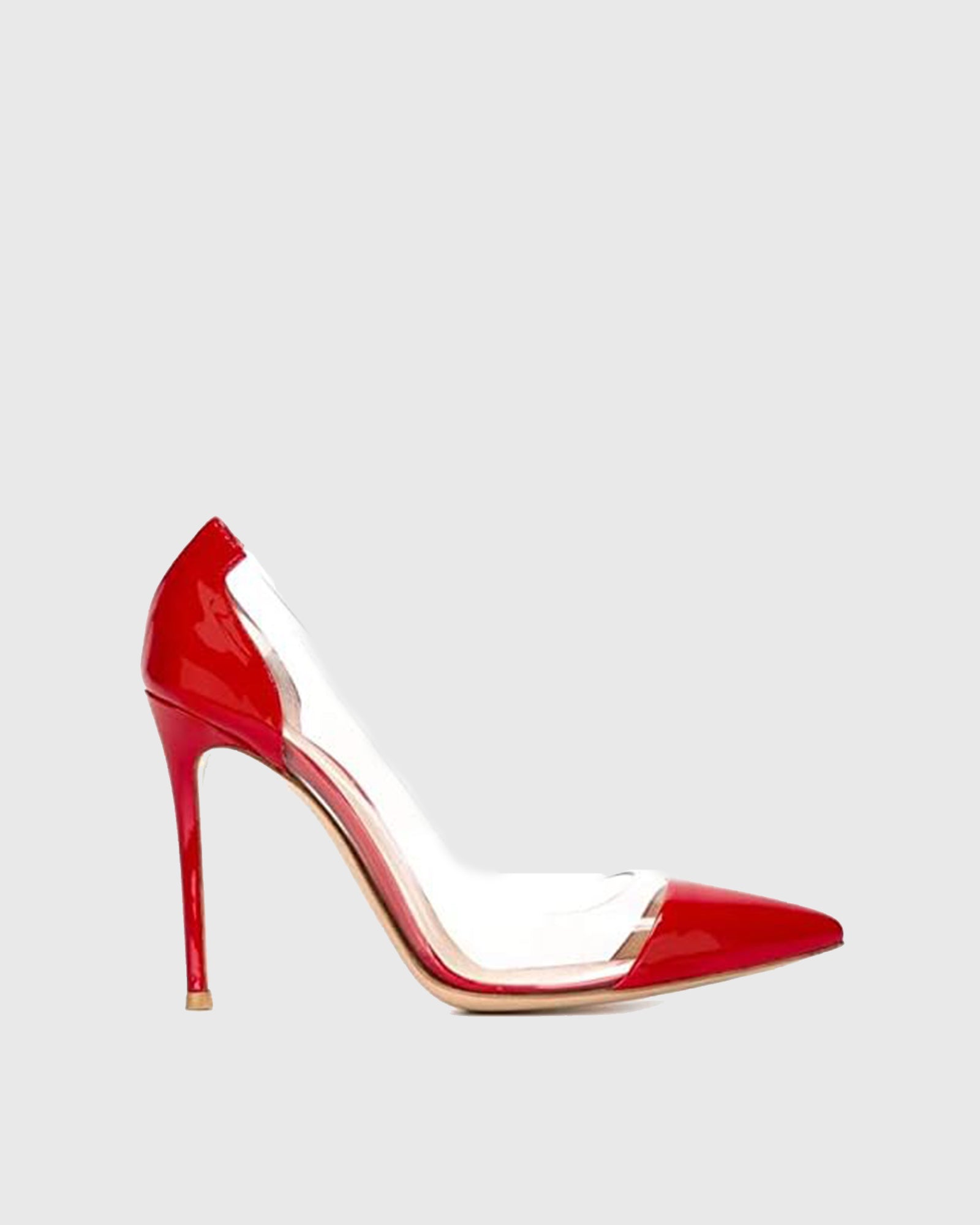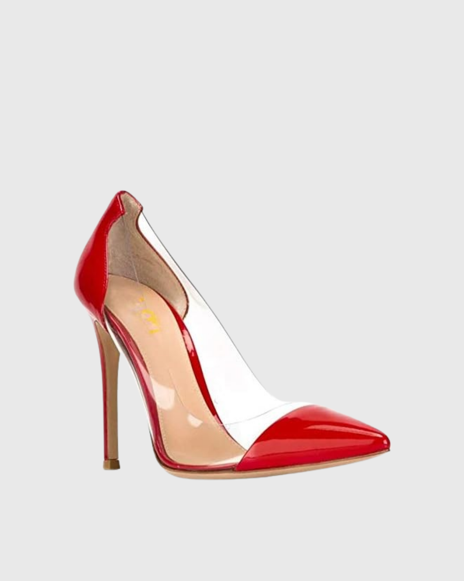 Step into confidence and style with Mila Pvc Splicing Pumps In Red. These pumps combine sleek PVC panels with a vibrant red color, making them a statement piece for any outfit. The pointed toe and stiletto heel add a touch of sophistication, while the durable material ensures long-lasting wear. Elevate your shoe collection with these eye-catching pumps.